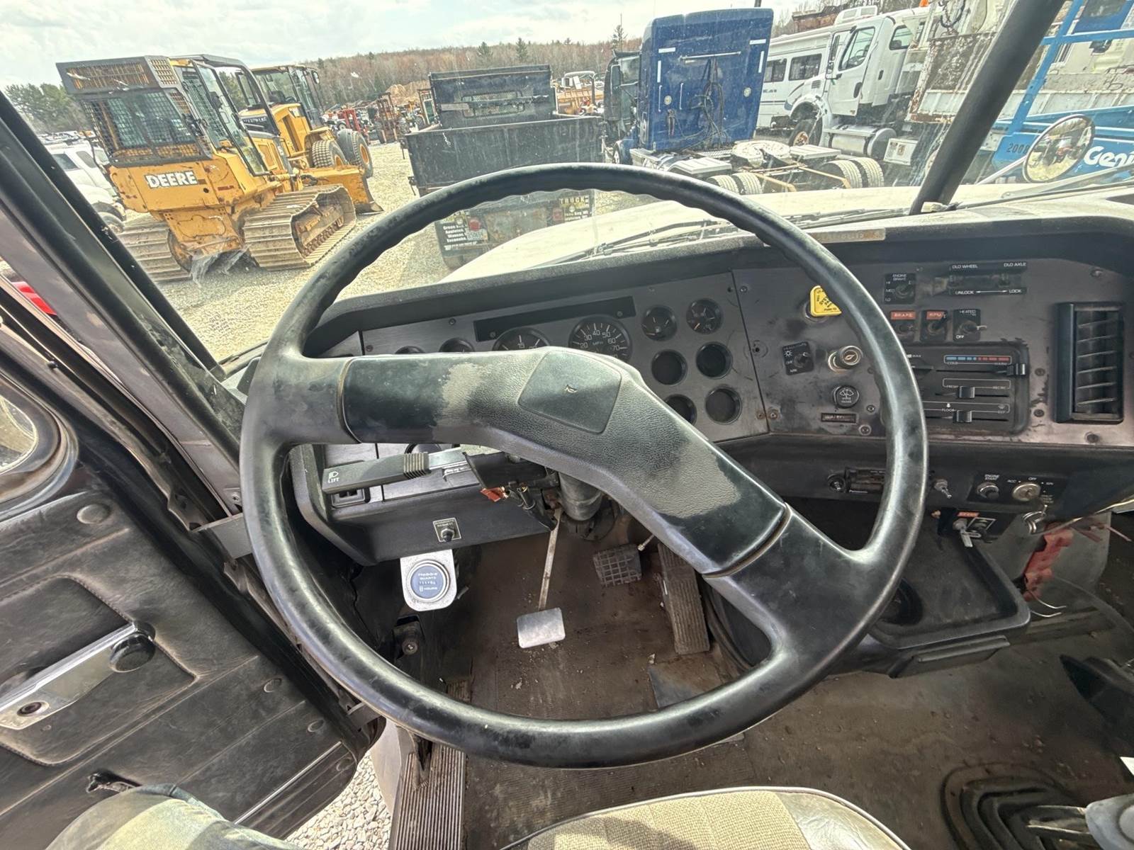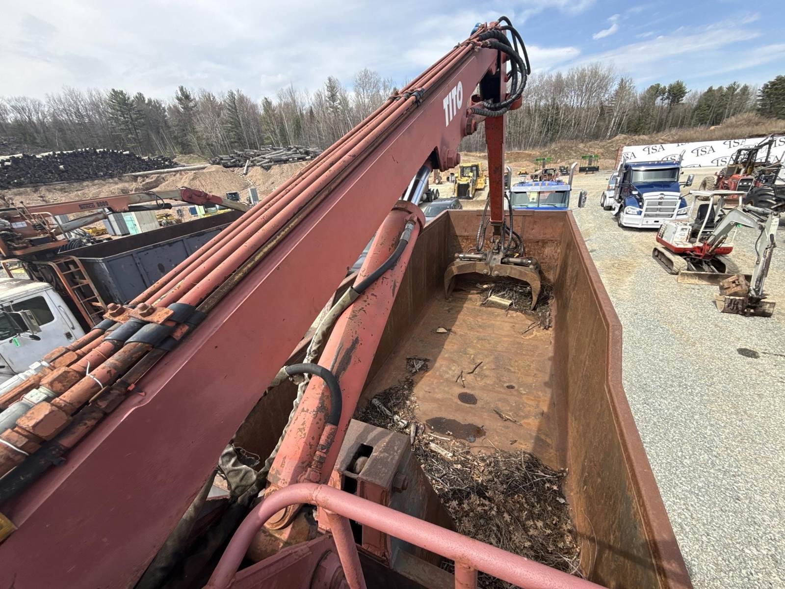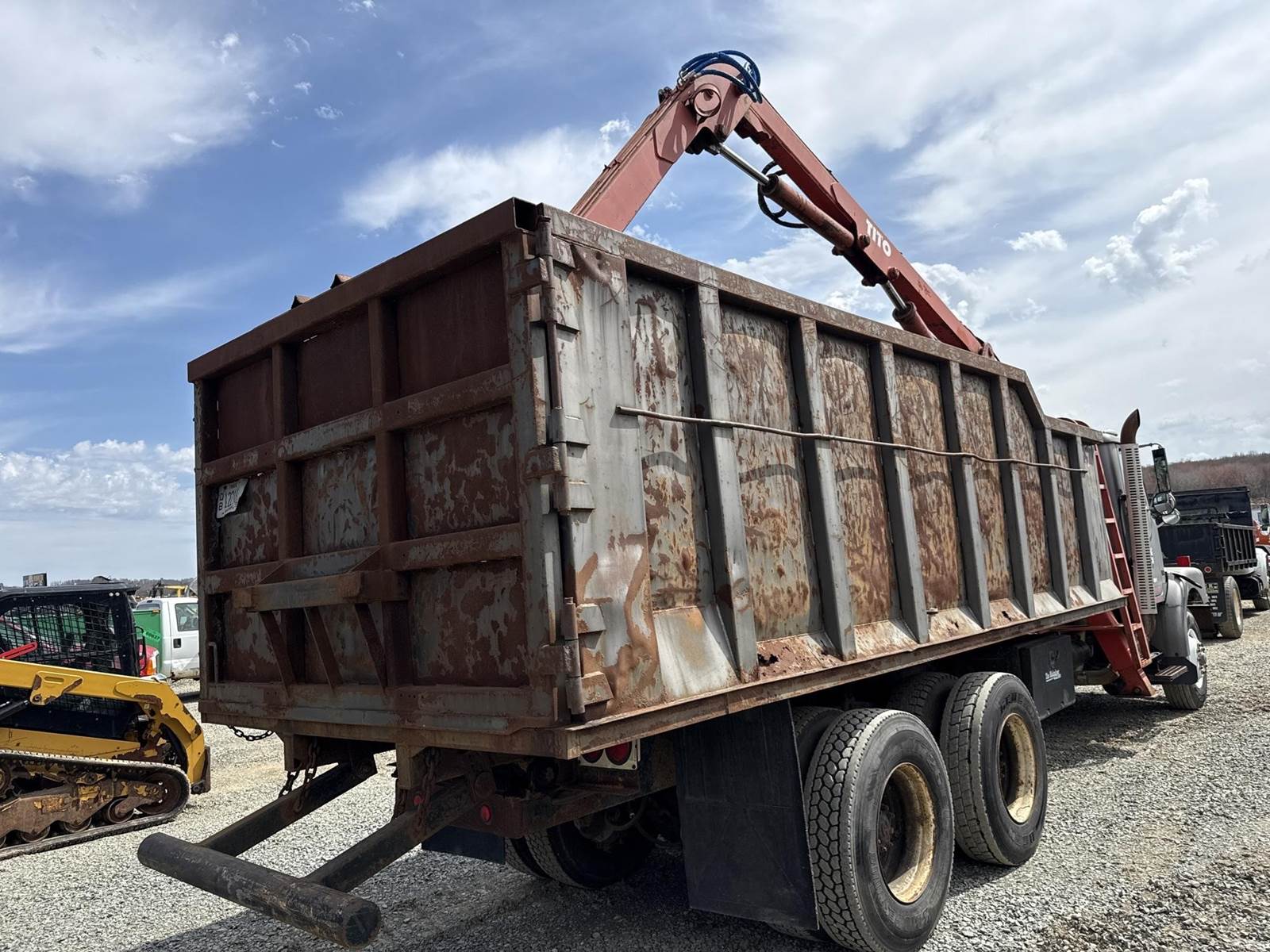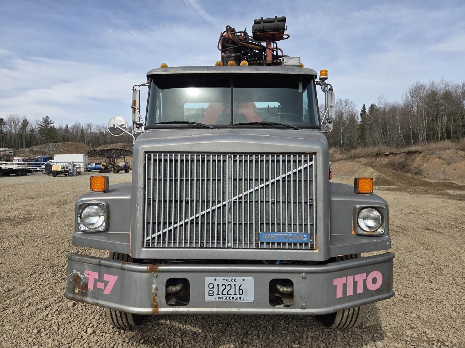 Detroit Diesel Series 60 Turbo Diesel Engine, Eaton Fuller 13 Speed Manual Transmission, Full Lockers, PTO, Engine Braking, Spring Ride Suspension, Double Frame, Outriggers, Approx. 20' Box, Tito Crane, Butt Grapple, Day Cab, Air Ride Driver Seat, Heat, AC, Radio, 11R22.5 Tires