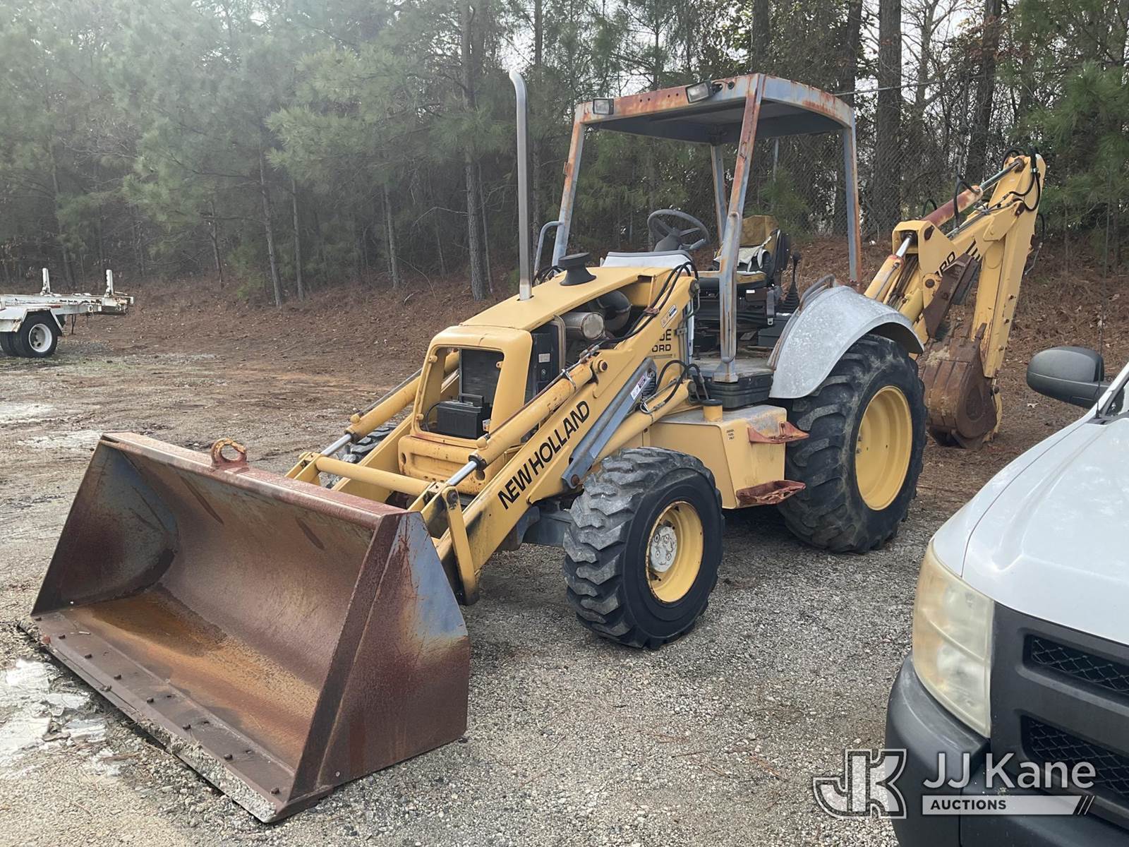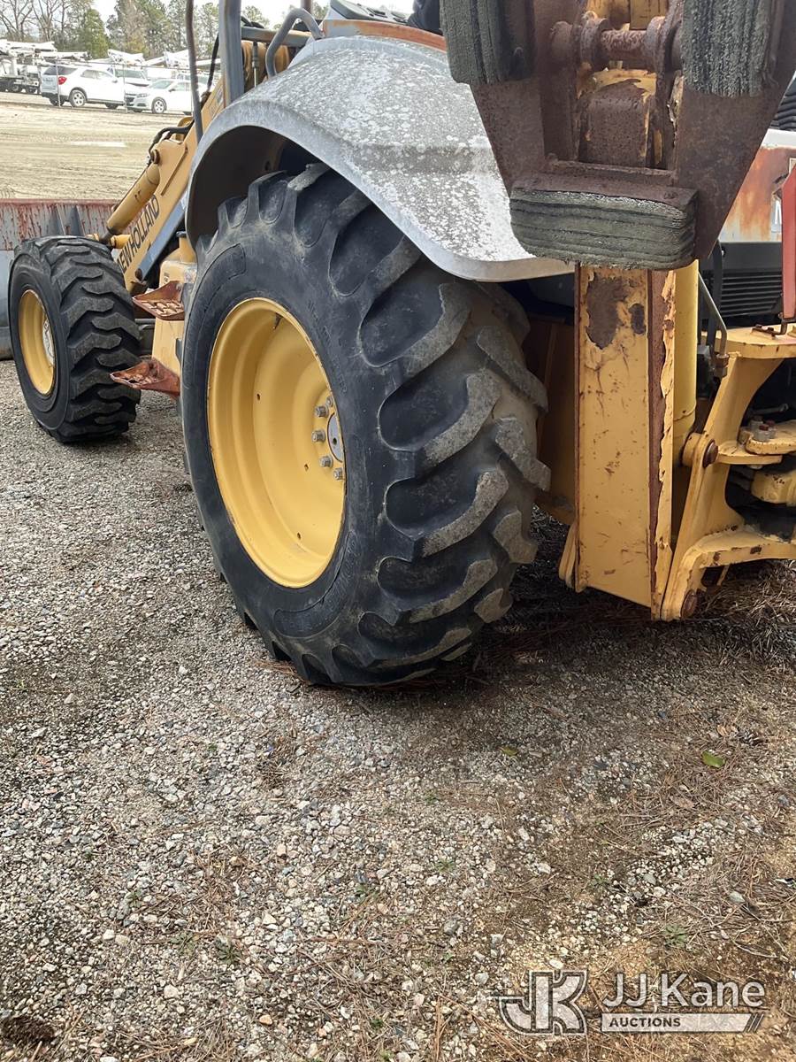 1990 New Holland 555E 4x4 Tractor Loader Backhoe, s/n 31014012, N.H. diesel, powershift, with GP loader bucket, 17 in. digging bucket & ROPS, (Not Running, Condition Unknown, Will Not Start With New Battery) (Flat Tire, Missing Parts Of Engine Enclosure) (Buyer Must Load) NOTE: This unit is being sold AS IS/WHERE IS via Timed Auction and is located in Chester, VA. Inspection & preview days for this unit are the 2 business days prior to the first day of items closing for this auction, item is located at 13301 Great Coastal Dr Chester, VA 23836 and hours of operations are 8a-3p. For pre-sale questions, please contact Doug Caton @ 804-807-4574. (Buyer is responsible for removal. Assistance by consignor or JJ Kane Auctions is not assured.)