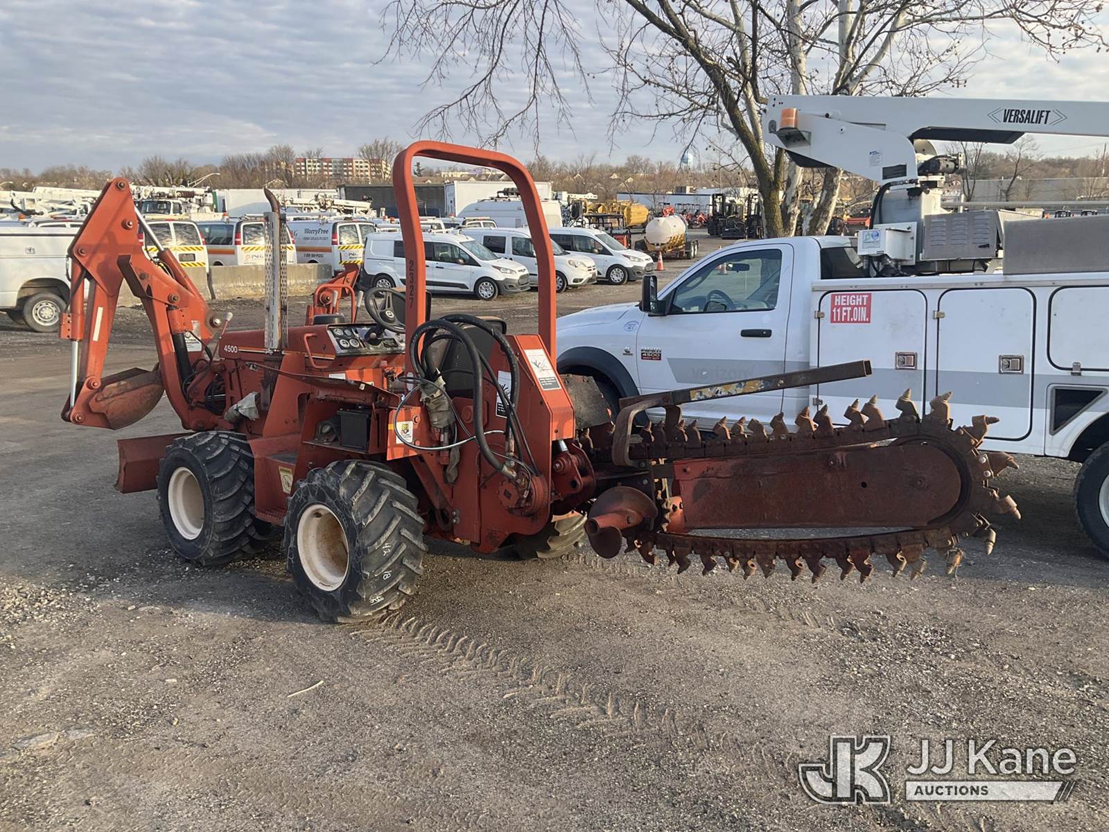 1991 Ditch Witch 4500DD Rubber Tired Combo Trencher/Backhoe, s/n 3H0476, Deutz diesel, Hydraulic Drive, with 12in Digging Bucket, Backfill Blade, ROPS Post, (Runs Rough, Jump To Start) (Reads 511 hours) NOTE: This unit is being sold AS IS/WHERE IS via Timed Auction and is located in Plymouth Meeting, PA. Inspection & preview days for this unit are the 2 business days prior to the first day of items closing for this auction, item is located at 1402 Conshohocken Rd Plymouth Meeting, PA 19462 and hours of operations are 8a-4p. For pre-sale questions, please contact Bruce Thomas @ (267) 887-0392 or bruce.thomas.jr@jjkane.com. (Buyer is responsible for removal. Assistance by consignor or JJ Kane Auctions is not assured.)