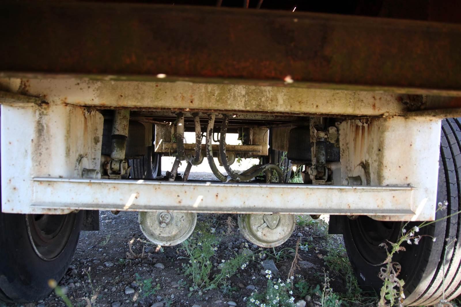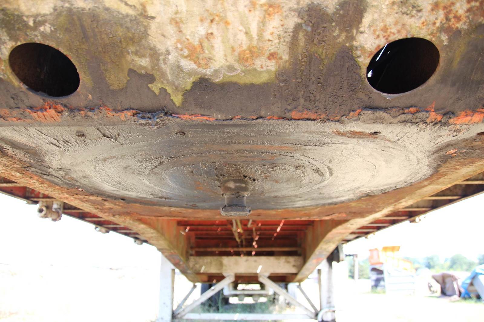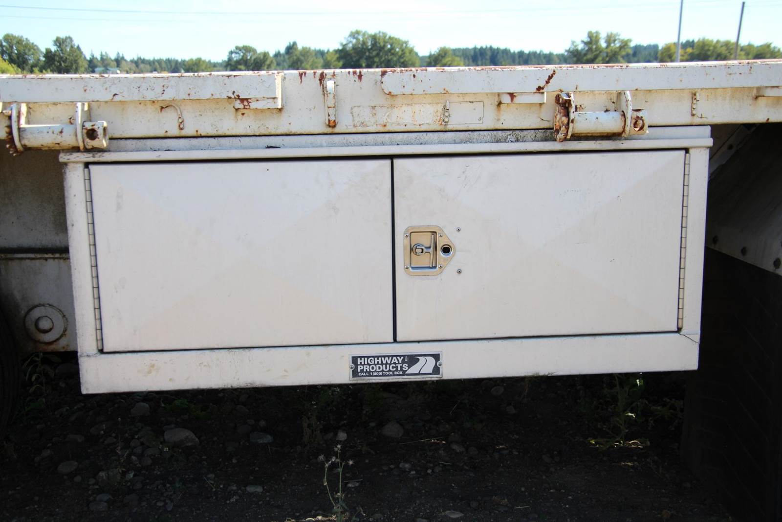 1991 Fontaine 48' X 96" Flat Bed Trailer, fixed spread axle, 8 new tires, with 500 miles on them, combo steel/wood deck,, air brakes, underbody mounted toolboxes, split axle, scale weight 11,460, length 48', width 96"