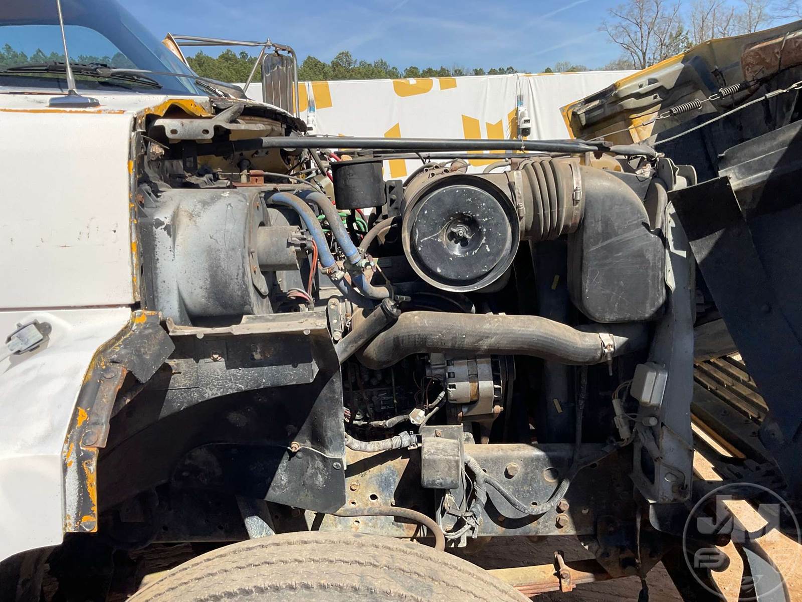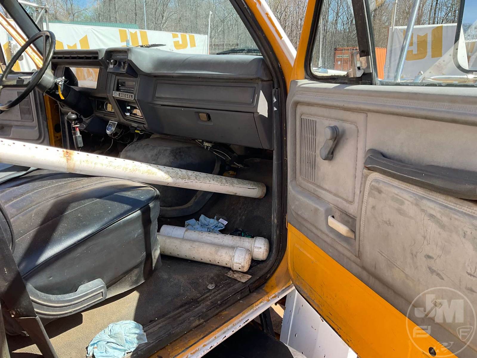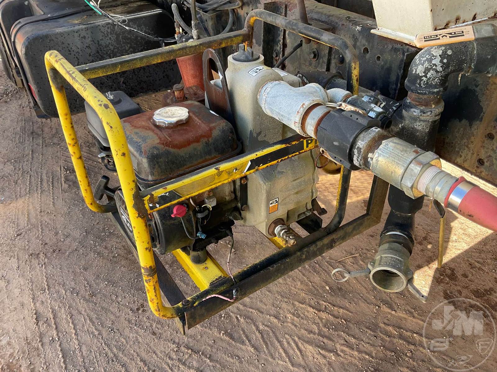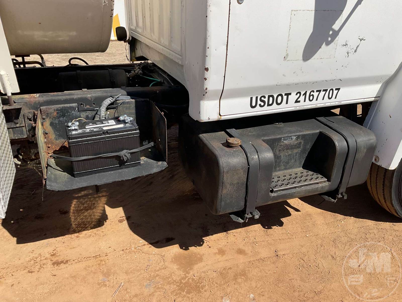 SINGLE AXLE WATER TRUCK, 5 SPEED, SPRING SUSPENSION, 189 " WB, 2000 GALLON CAPACITY (APPROX), REAR DISCHARGE, STEEL DISC WHEELS, 11R22.5 TIRES, FORD 6CYL DIESEL ENGINE, HOUR METER READS: 3507, ODOMETER READS: 126726