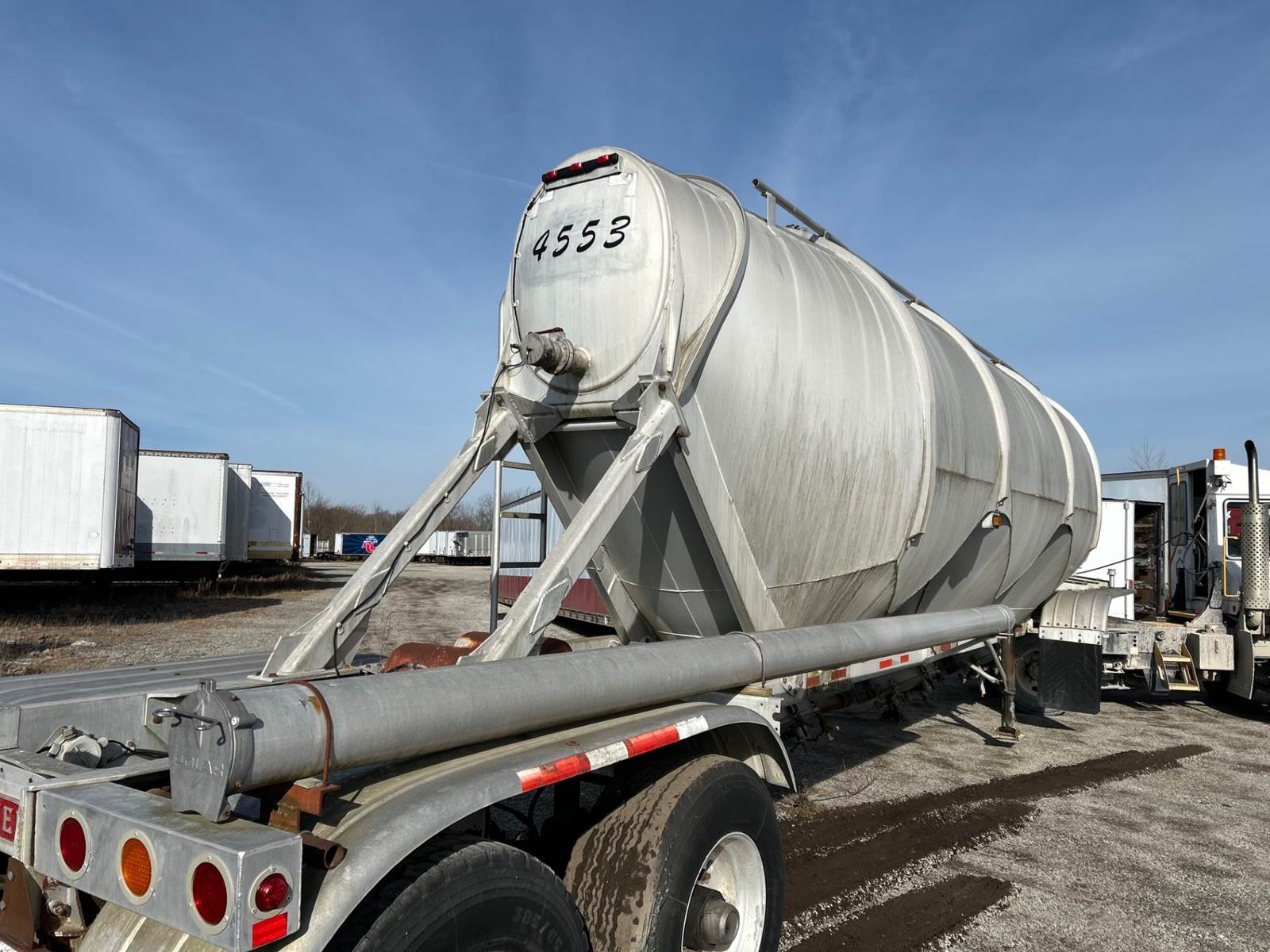 Unit# 4553, 1991 Heil Jet, 1200 cu.ft., spring ride on Super singles, 6" product valves , cement, lime, fly ash