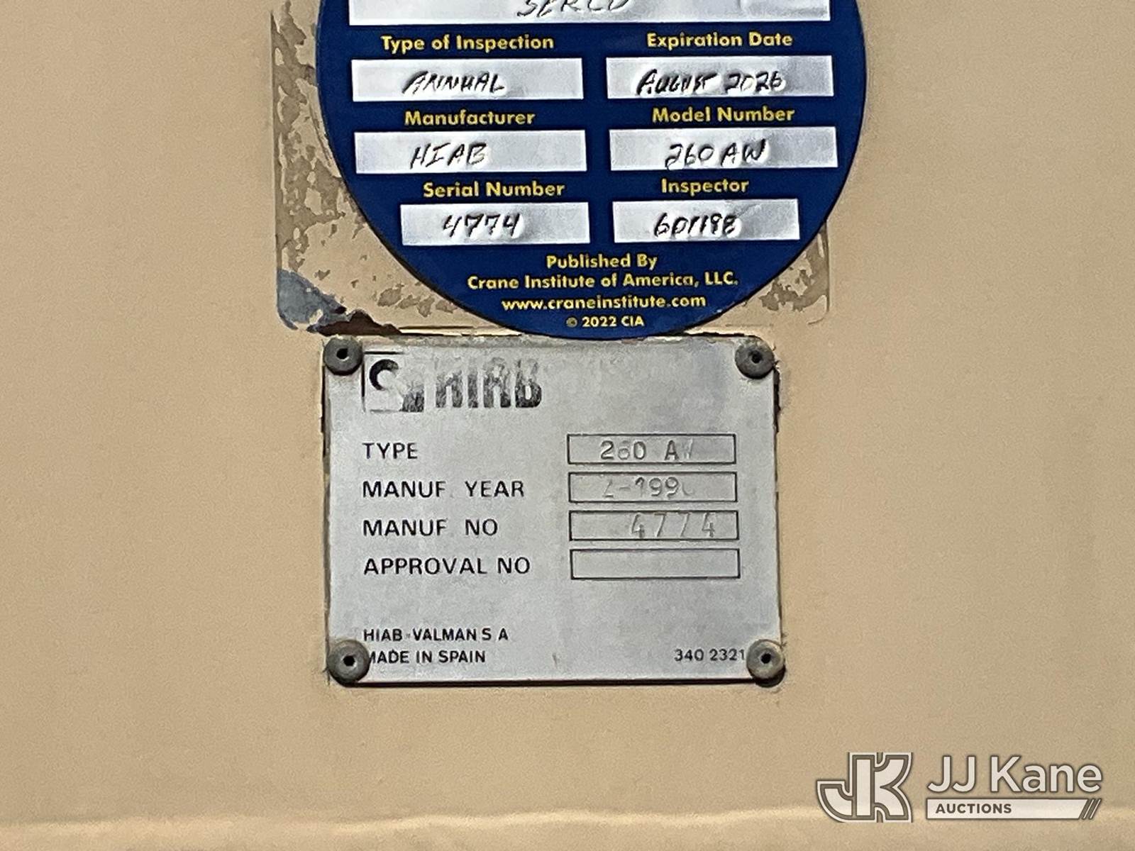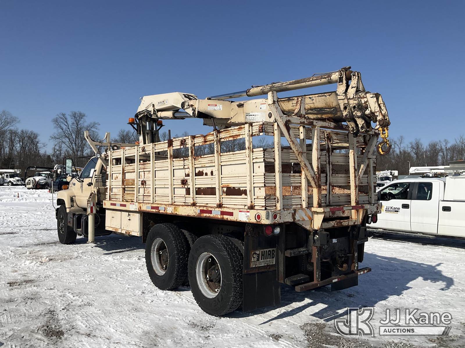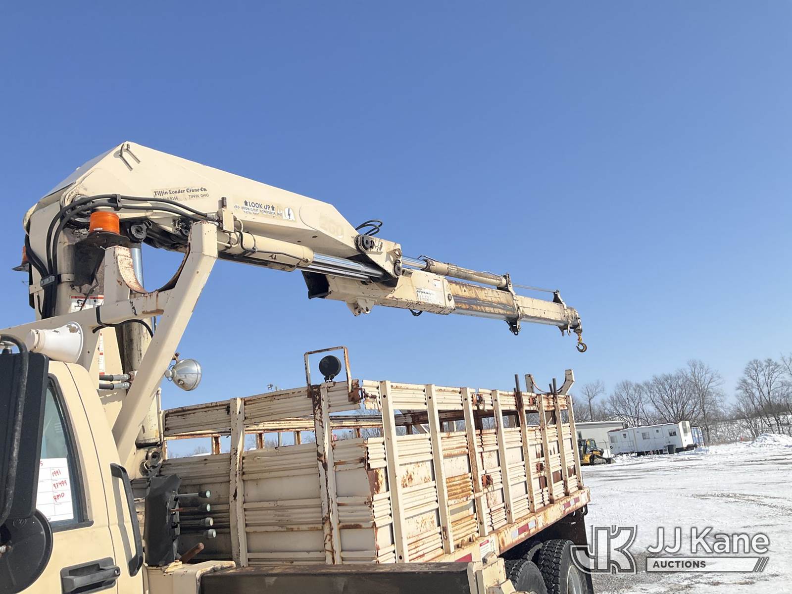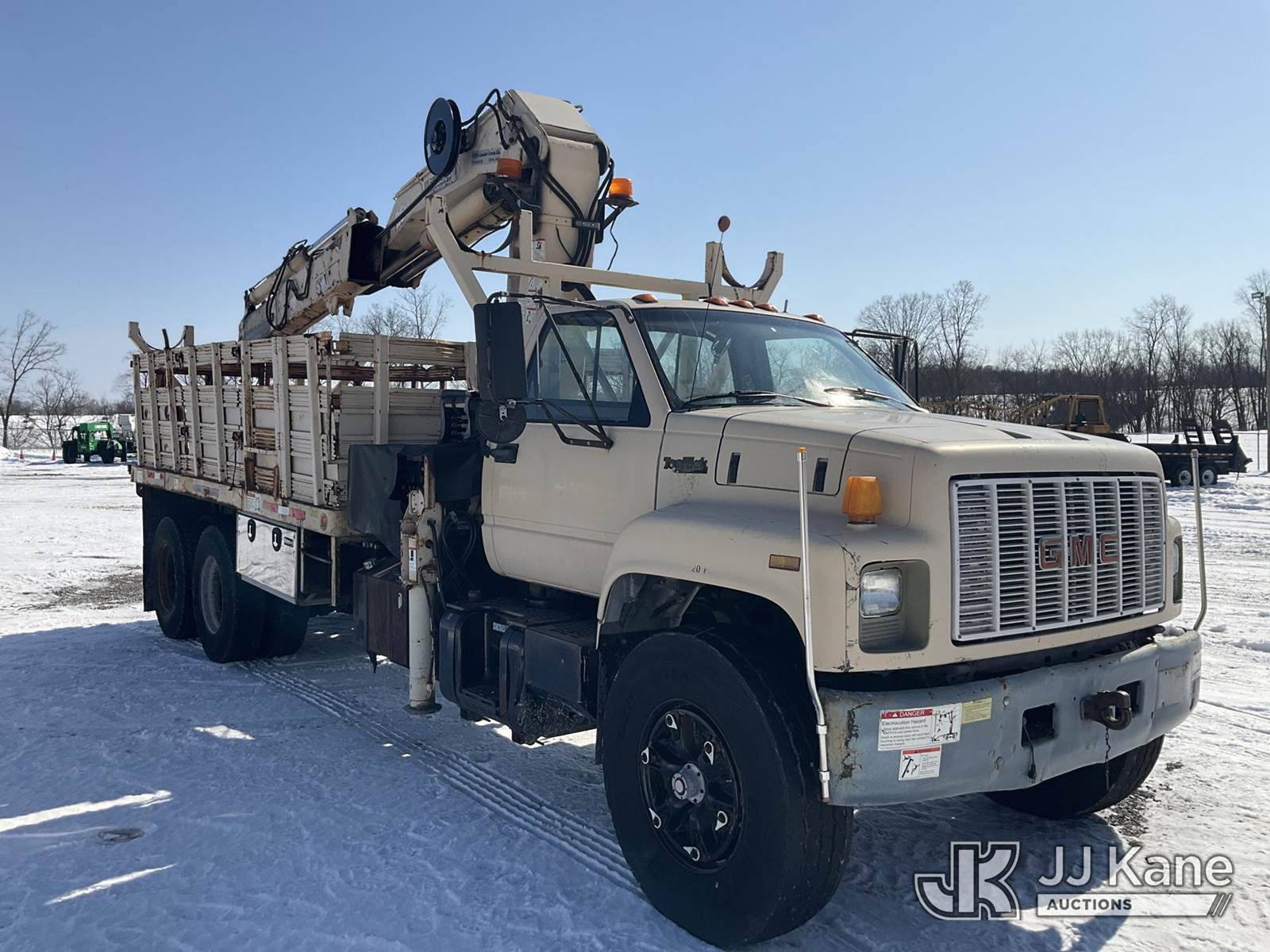 Hiab 260AWV, Hydraulic Knuckle Boom Crane s/n 4774, with 2 section hyd boom, dual controls & 2 hyd outriggers, mounted behind cab on 1991 GMC Topkick Flatbed Truck, Cat 3116 diesel, 4X2, Auto, with stake sides, (Exempt from Odometer Disclosure - Reads 96,499 miles) (Runs, Moves & Upper Operates) This is a Titled Item NOTE: This unit is being sold AS IS/WHERE IS via Timed Auction and is located in Verona, KY. Inspection & preview days for this unit are the 2 business days prior to the first day of items closing for this auction, item is located at 2841 Verona-Mudlick Rd Ste B Verona, KY 41092 and hours of operations are 8a-4p. For pre-sale questions, please contact Office Staff @ (502) 612-5080. Auctioneer Michael Whitebread / License # 256617. (Missing manuals, See Auction Company for Manufacturers Information to obtain manuals) (Buyer is responsible for removal. Assistance by consignor or JJ Kane Auctions is not assured.)