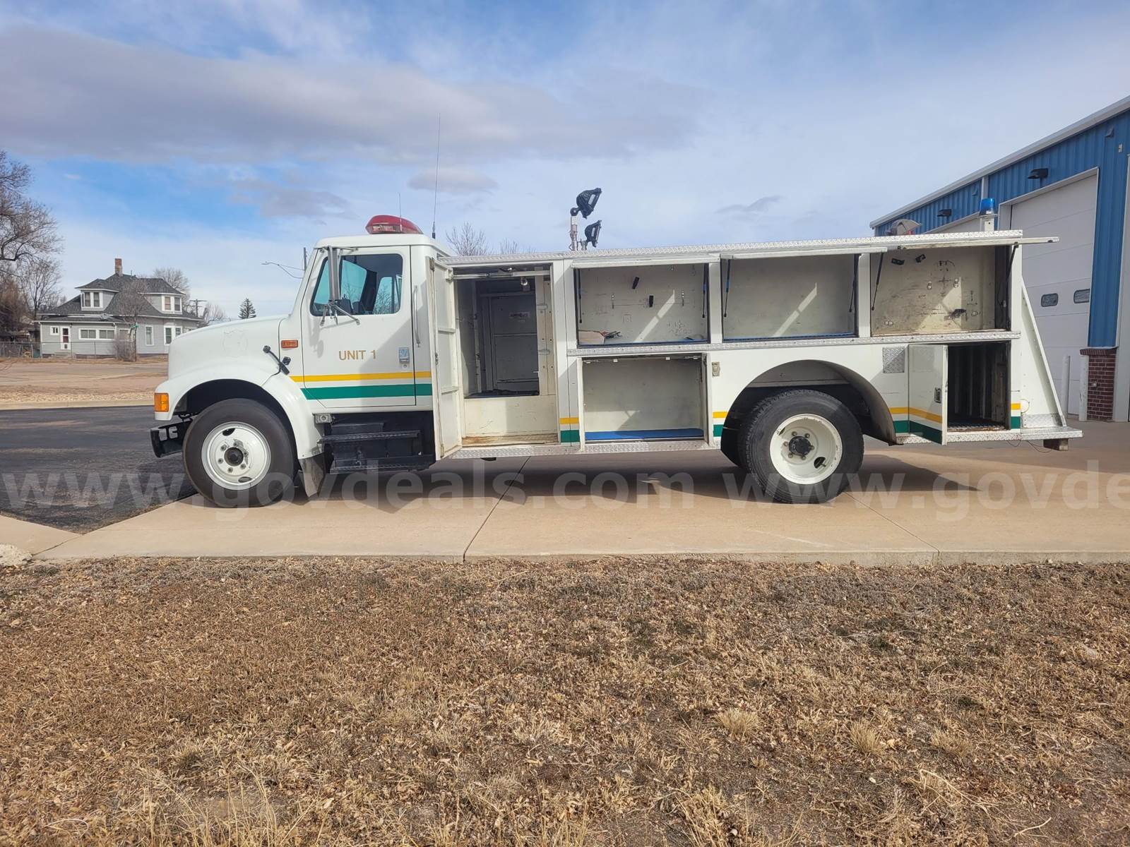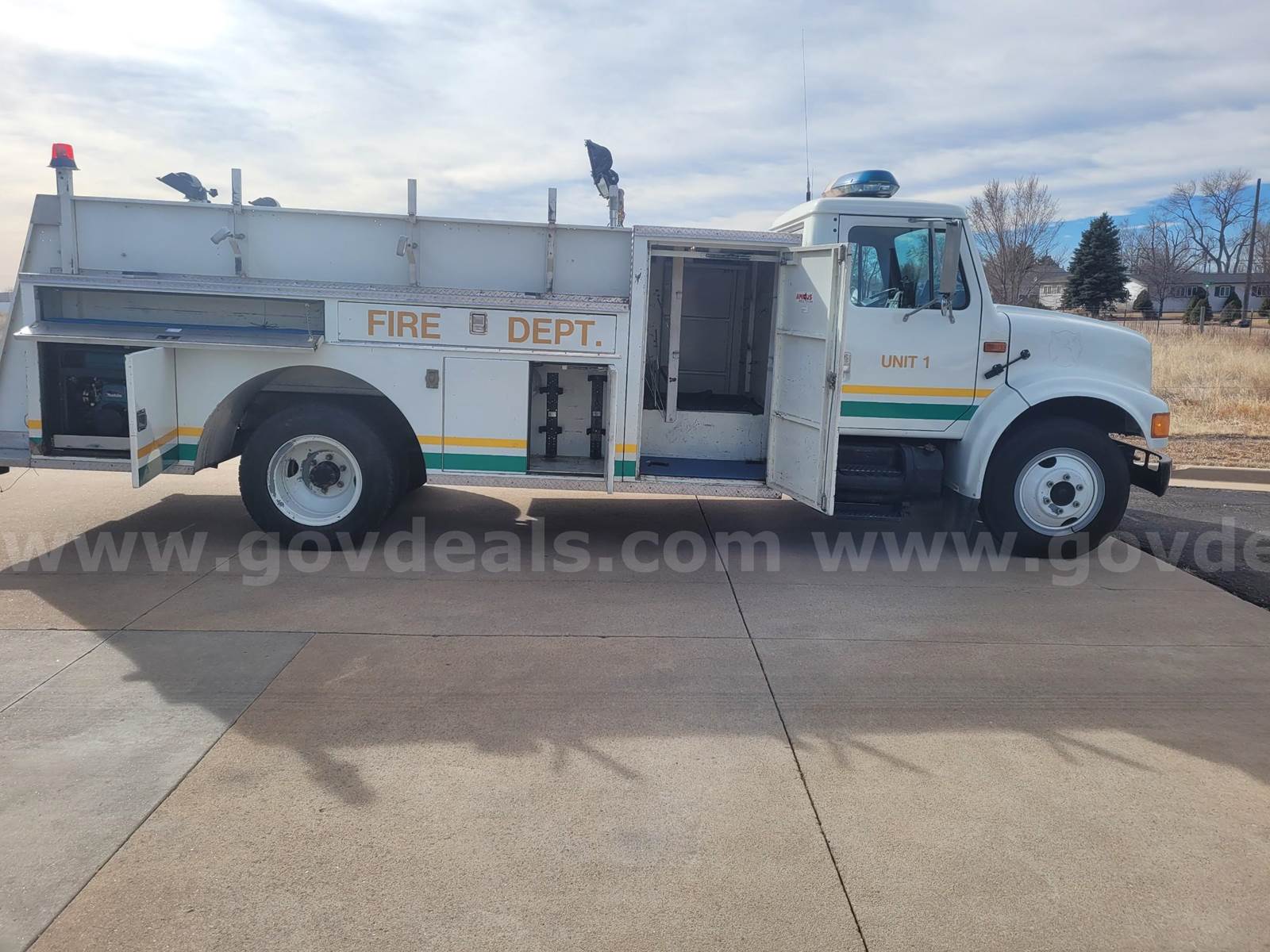 This auction is for a 1991 International 4700 Conventional Cab Fire Department Utility Truck equipped with a 5.9L L6 Cummins diesel engine and automatic transmission. This vehicle was previously owned and maintained by the Ault Fire Protection District, Colorado, and starts, runs, and operates with no known mechanical issues reported by the seller. This unit shows 14,708 original miles, which is consistent with fire department reserve usage and limited deployment. The truck features a fully enclosed utility body with multiple storage compartments, emergency lighting, siren controls, communication equipment, and auxiliary control panel. The vehicle is also equipped with a Makita diesel auxiliary generator system, interior command/control console, and heavy-duty service body. The Cummins diesel engine is well known for its durability, reliability, and long service life. Interior is in good condition with normal wear consistent with age and municipal use. Exterior shows typical cosmetic wear from fire department service. Tires are in good usable condition. This truck would be ideal for: • Fire department support • Ranch or farm use • Utility or service truck conversion • Mobile service unit • Construction support vehicle • Emergency or brush truck conversion VIN: 1HTSCNKM3MH372732 Engine: 5.9L L6 Cummins Diesel Mileage: 14,708 Transmission: Automatic Drive: 4x2 Owned and maintained by Ault Fire Protection District, CO Sold as is, where is.
