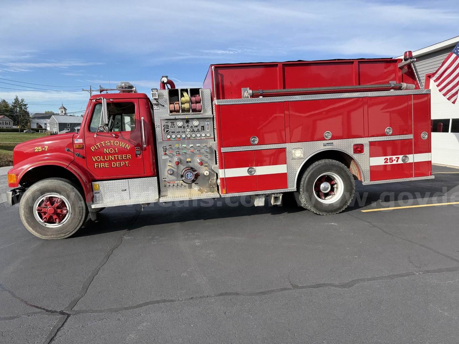 1991 International 4900, 7.6L L6 DIESEL. 1250 hale pump, Marrian body aluminum. **GovDeals.com is the online auction platform where you can bid on and buy government surplus**