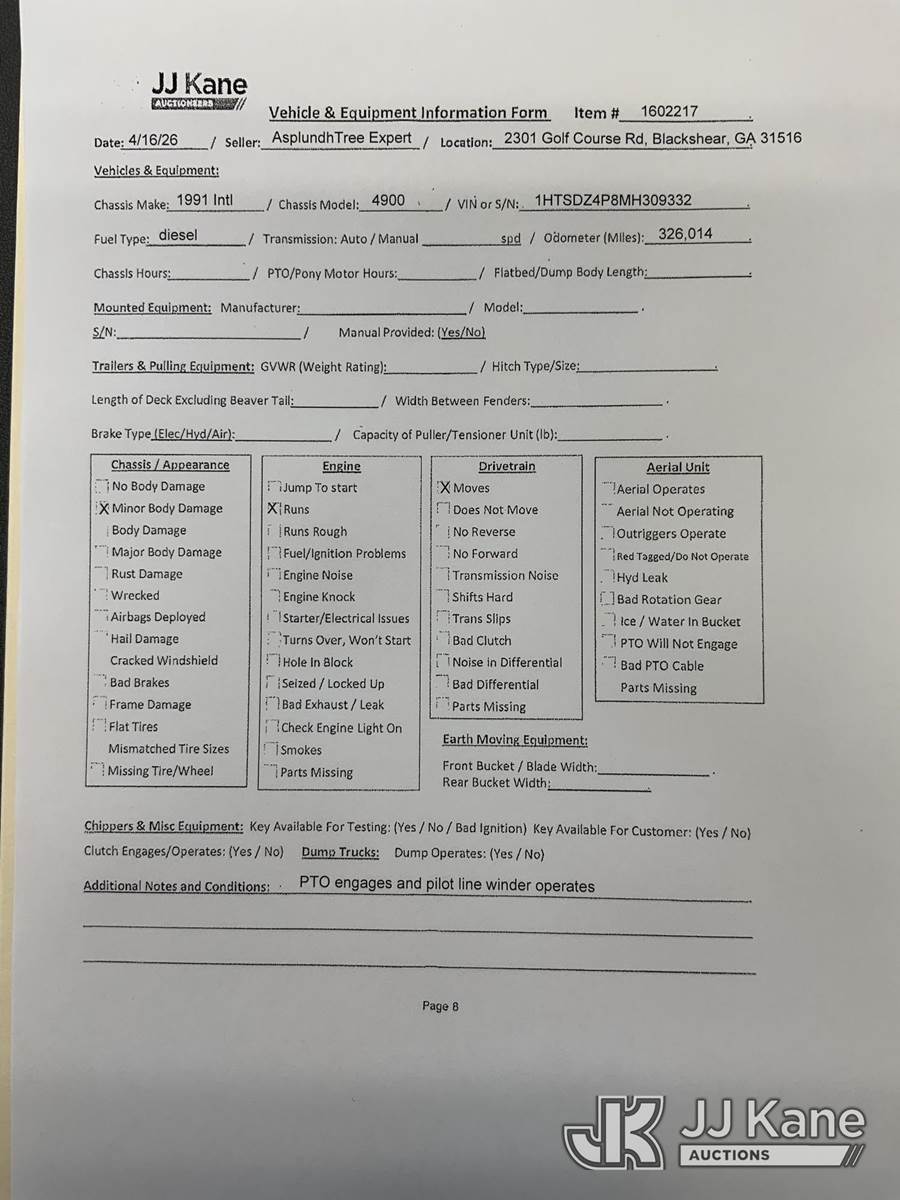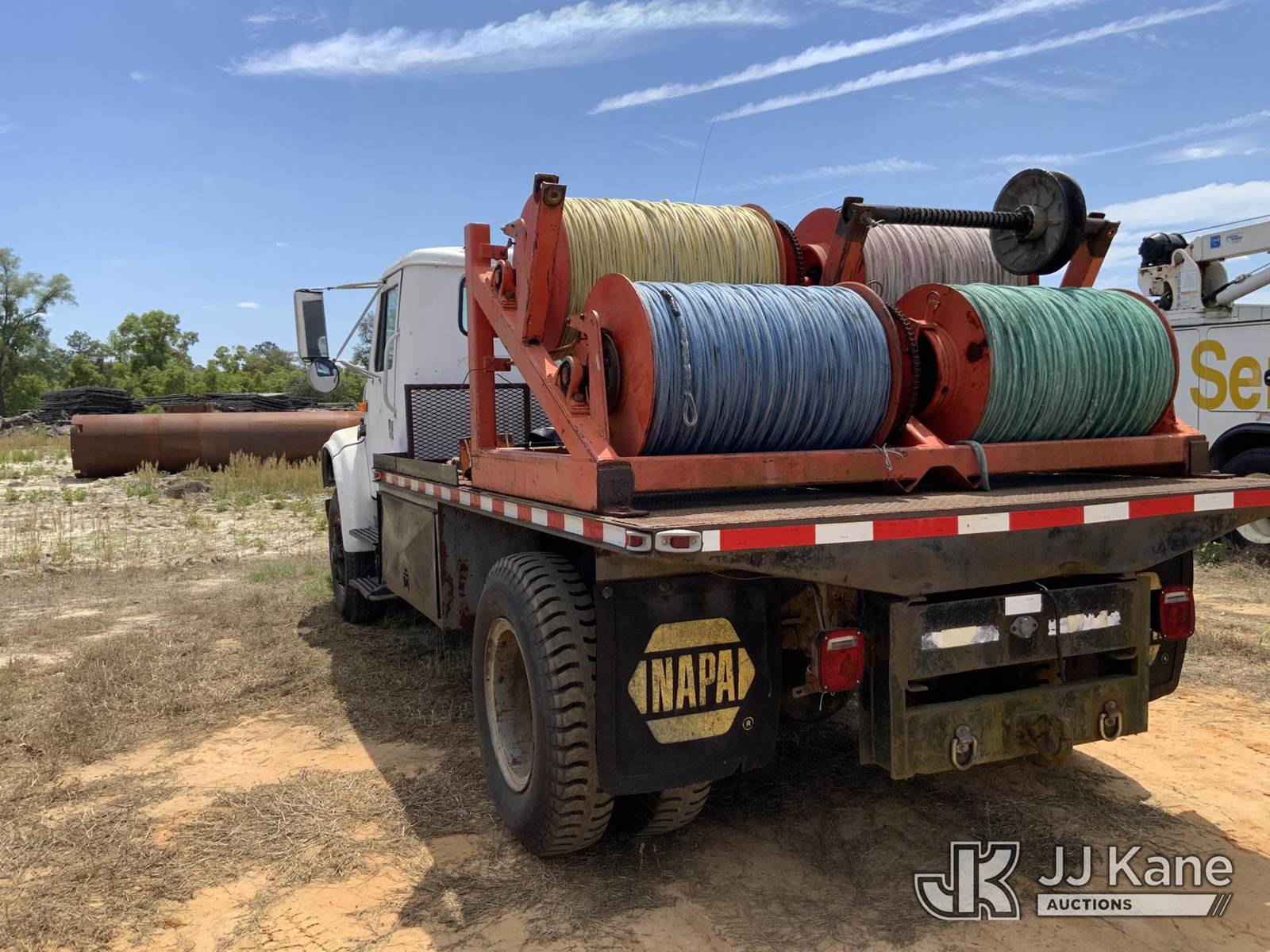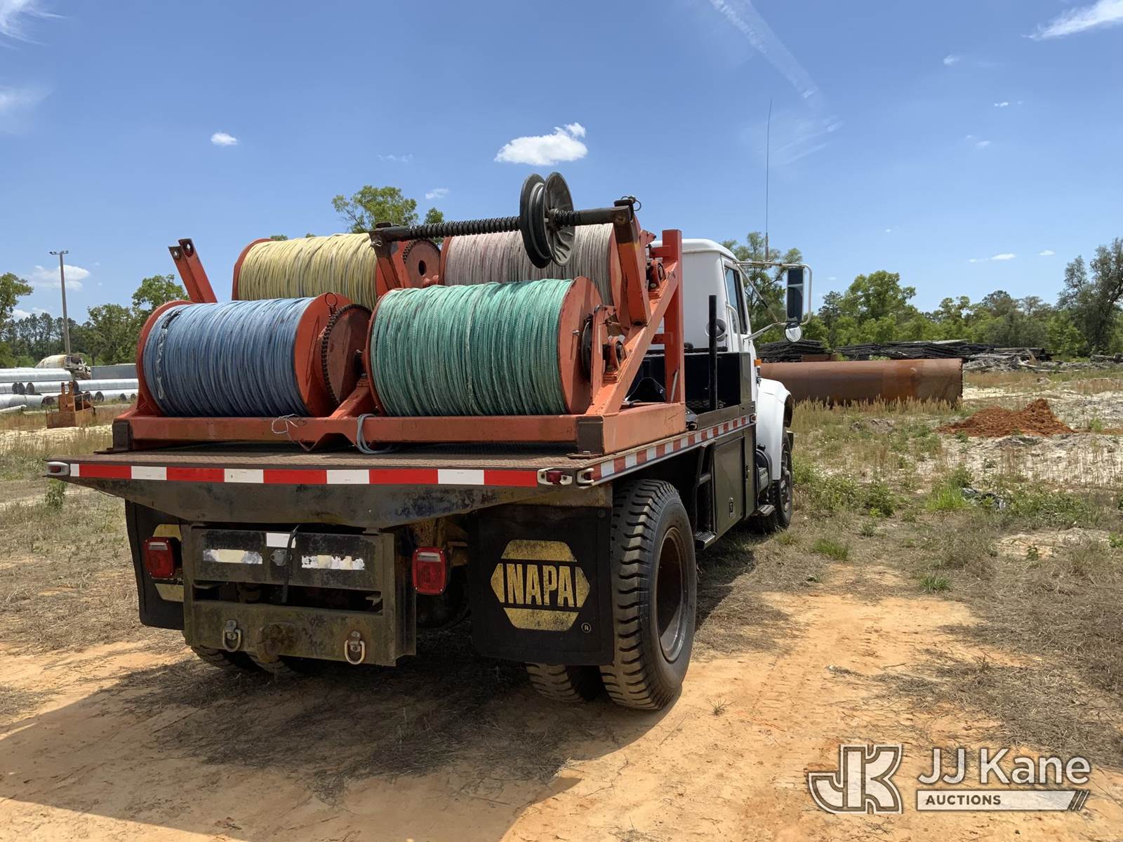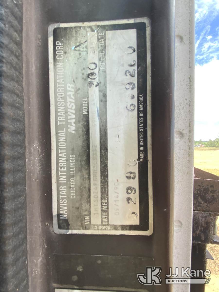 1991 International 4900 Flatbed/Service Truck, 7.6L 4X2, DIESEL, manual, with 4 drum puller/tensioner, (Exempt from Odometer Disclosure - Reads 326,014 miles) (Runs & Moves, PTO Engages & PLW Operates) This is a Titled Item NOTE: This unit is being sold AS IS/WHERE IS via Timed Auction and is located in Blackshear, GA. Inspection & preview days for this unit are by appointment only; please contact us at contact@jjkane.com or 84-Go-JJKane for more details. (Buyer is responsible for removal. Assistance by consignor or JJ Kane Auctions is not assured.)