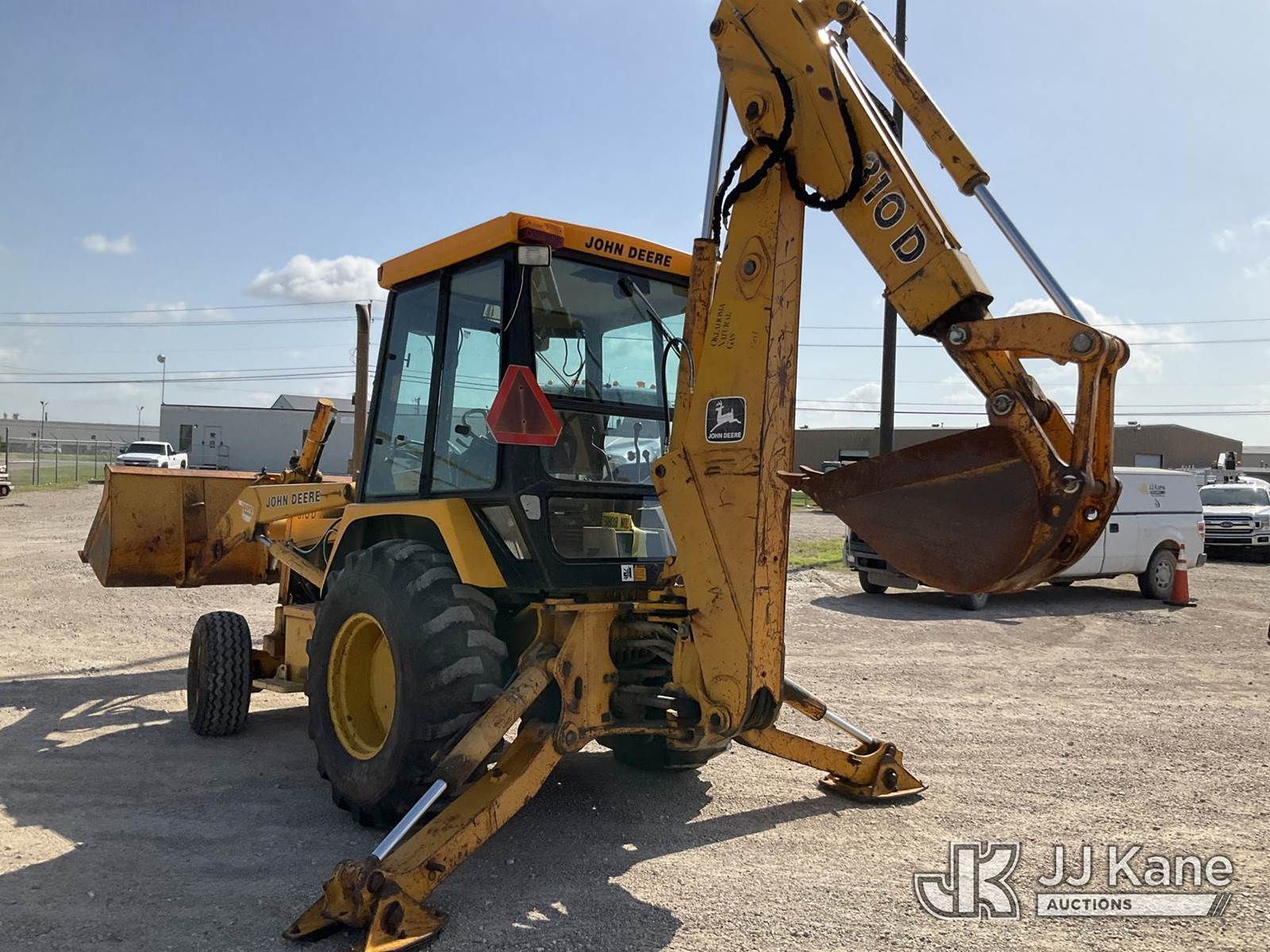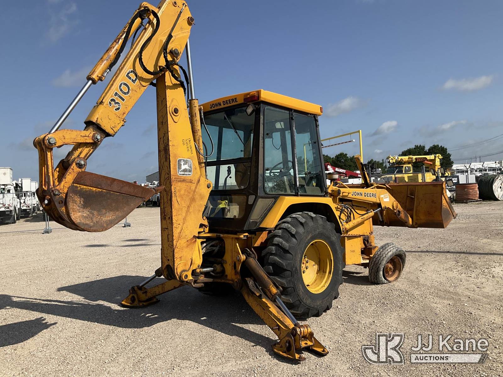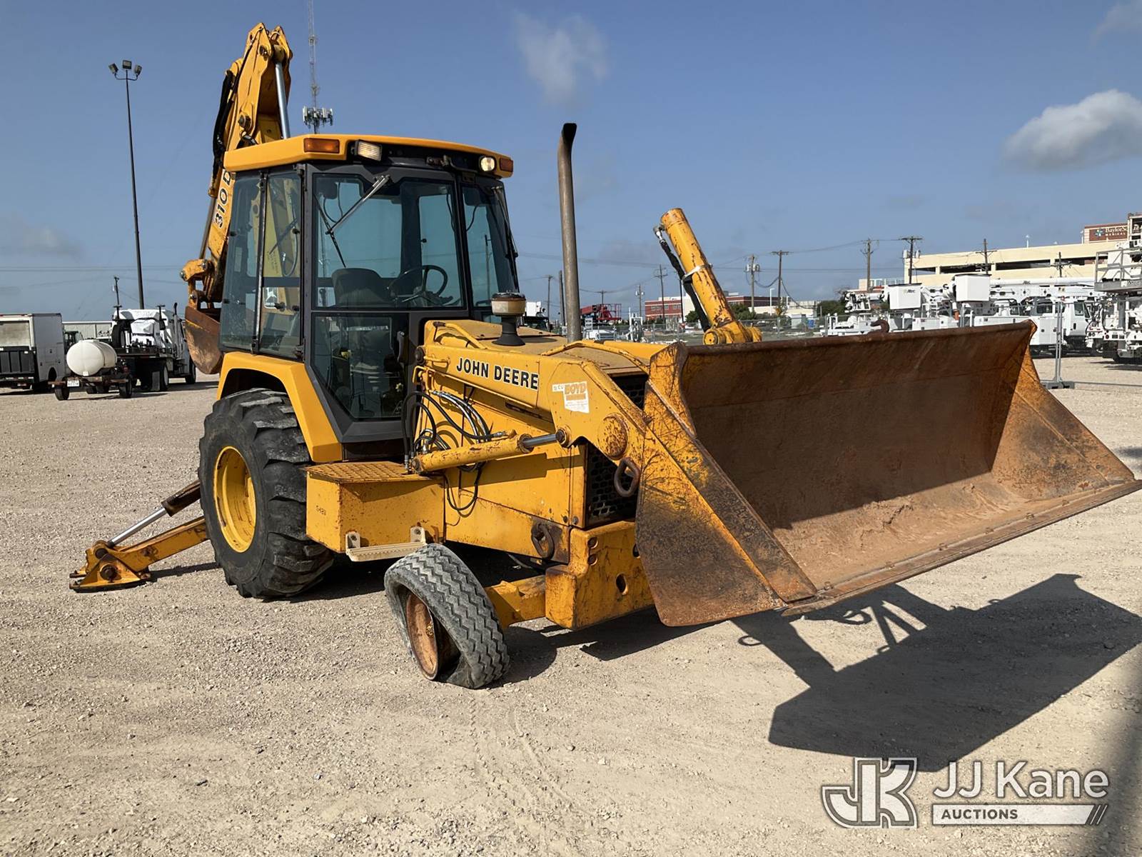 1991 John Deere 310D Tractor Loader Backhoe, s/n T0310DA781018, diesel, Shuttle, with GP loader bucket, EROPS, (Runs, Moves, & Operates) (Jump To Start, Front Right Tire Off Rim) (Reads 600 hours) NOTE: This unit is being sold AS IS/WHERE IS via Timed Auction and is located in Waxahachie, TX. Inspection & preview days for this unit are the 2 business days prior to the first day of items closing for this auction, item is located at 999 Solon Rd Waxahachie, TX 75165 and hours of operations are 8a-4p. For pre-sale questions, please contact Alex Bayless @ (469) 550-4938. (Buyer is responsible for removal. Assistance by consignor or JJ Kane Auctions is not assured.)