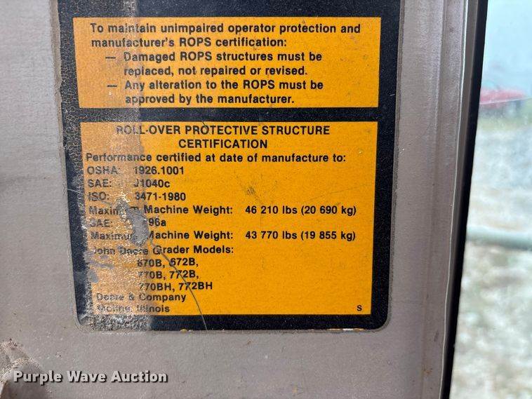 1991 John Deere 670B motor grader