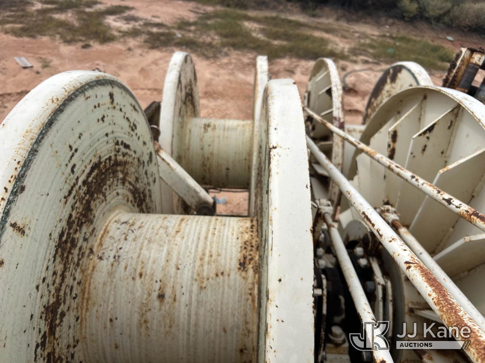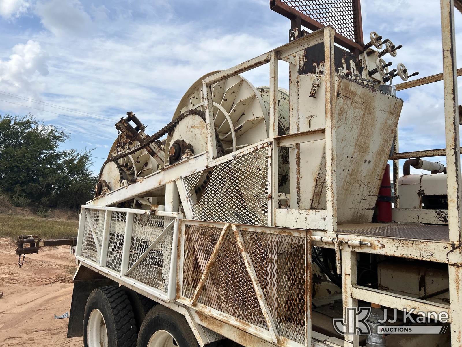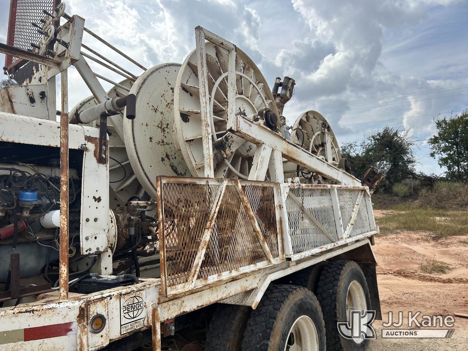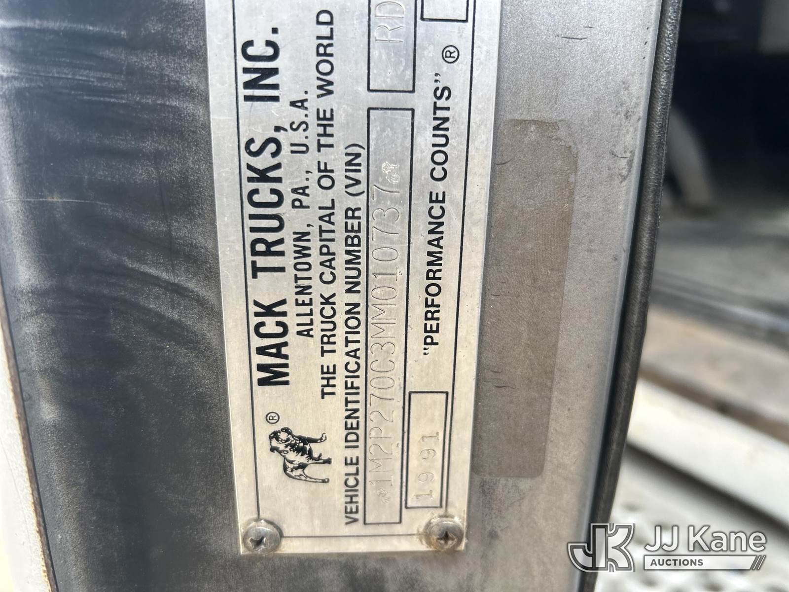 1991 Mack RD600 Flatbed Reel Truck, 12.0L 8-spd, diesel, A/C, with 4 drum puller on back, (Exempt from Odometer Disclosure - Reads 324,867 miles) (Runs & Moves) (Reel System Condition Unknown, Jump To Start) This is a Titled Item NOTE: This unit is being sold AS IS/WHERE IS via Timed Auction and is located in Stephenville, TX. For pre-sale questions or to schedule an inspection, please contact Matt Kaman @ 919-800-7863. (Buyer is responsible for removal. Assistance by consignor or JJ Kane Auctioneers is not assured.)