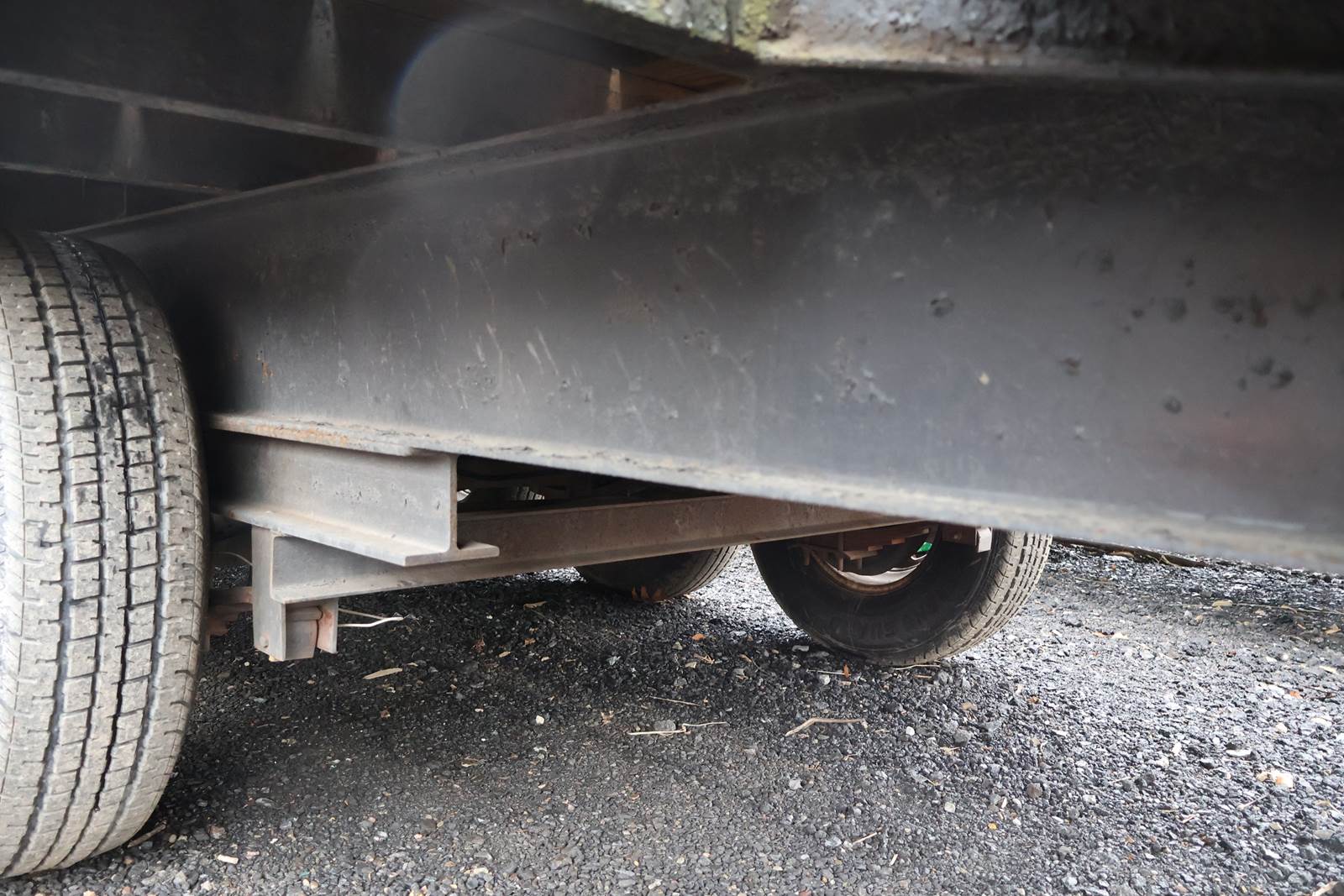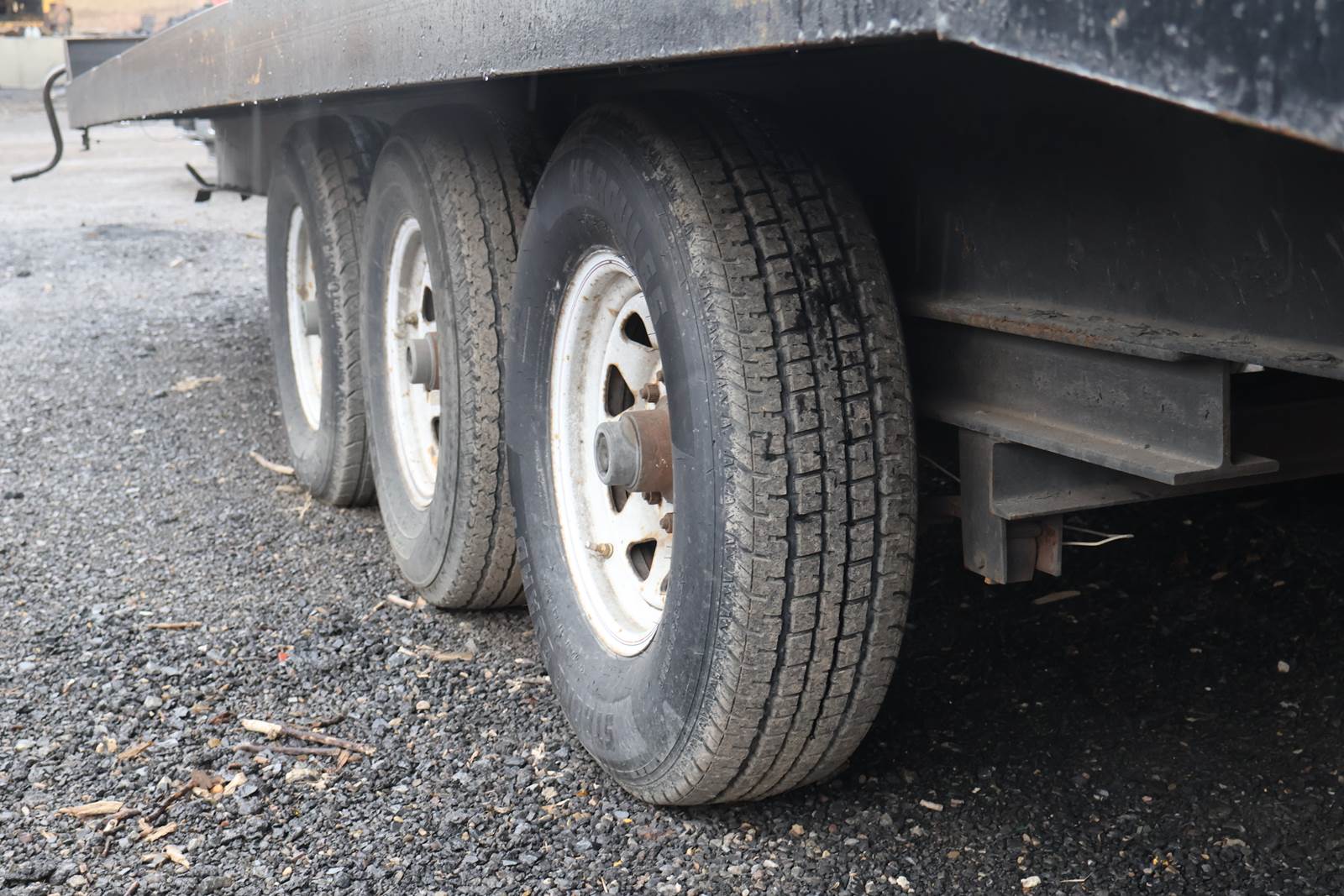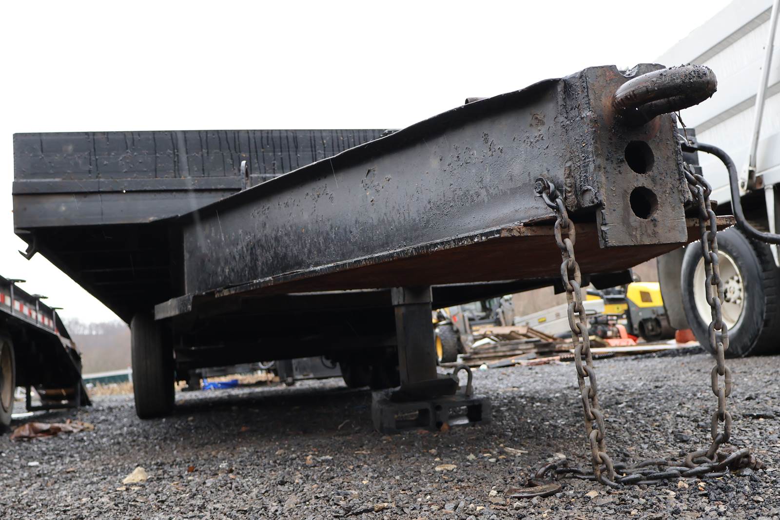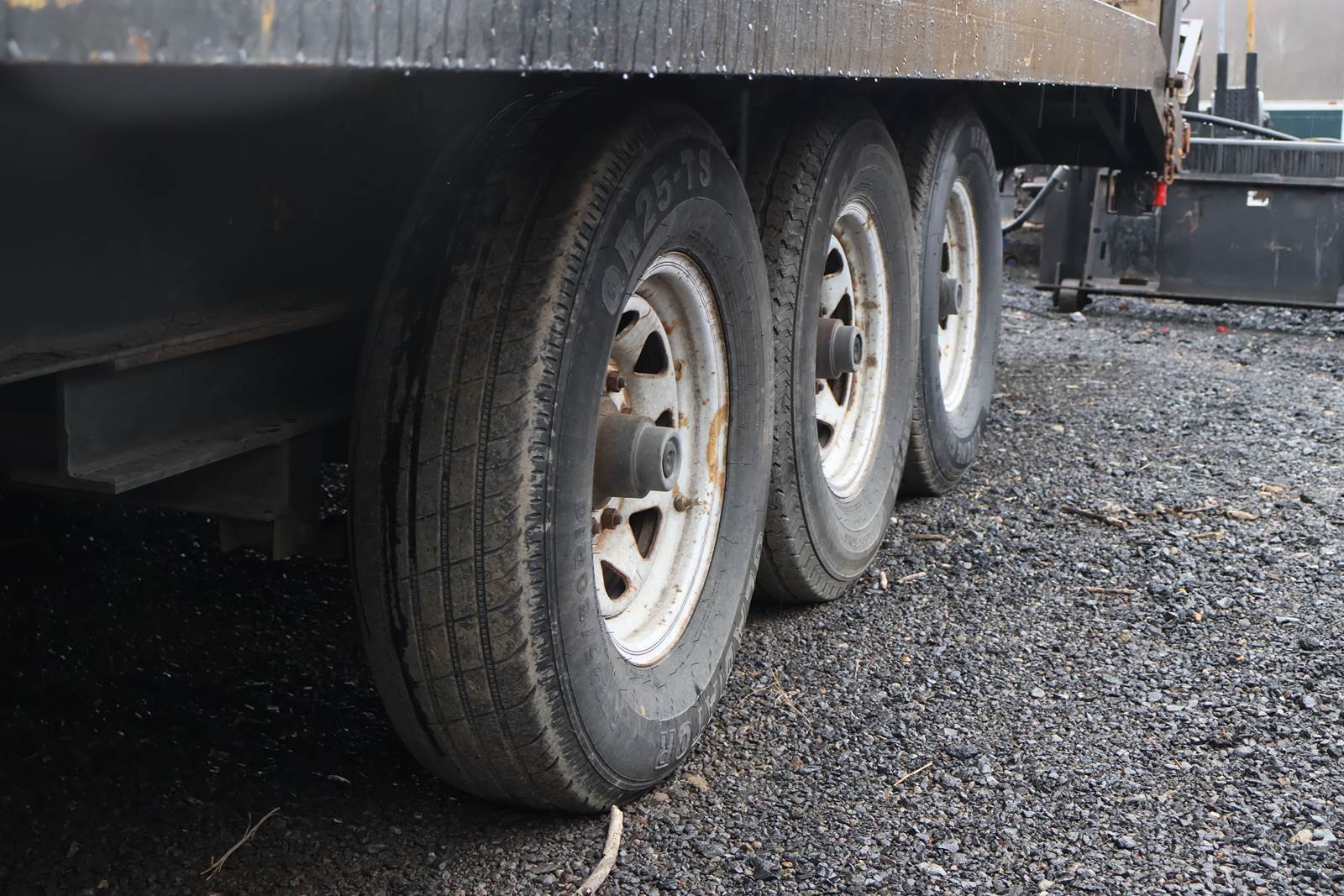 20' X 96" dual axle, steel bed tag trailer,. Good ST235/85/R56 tires. Pintel hitch. Lock down straps, new bearings
