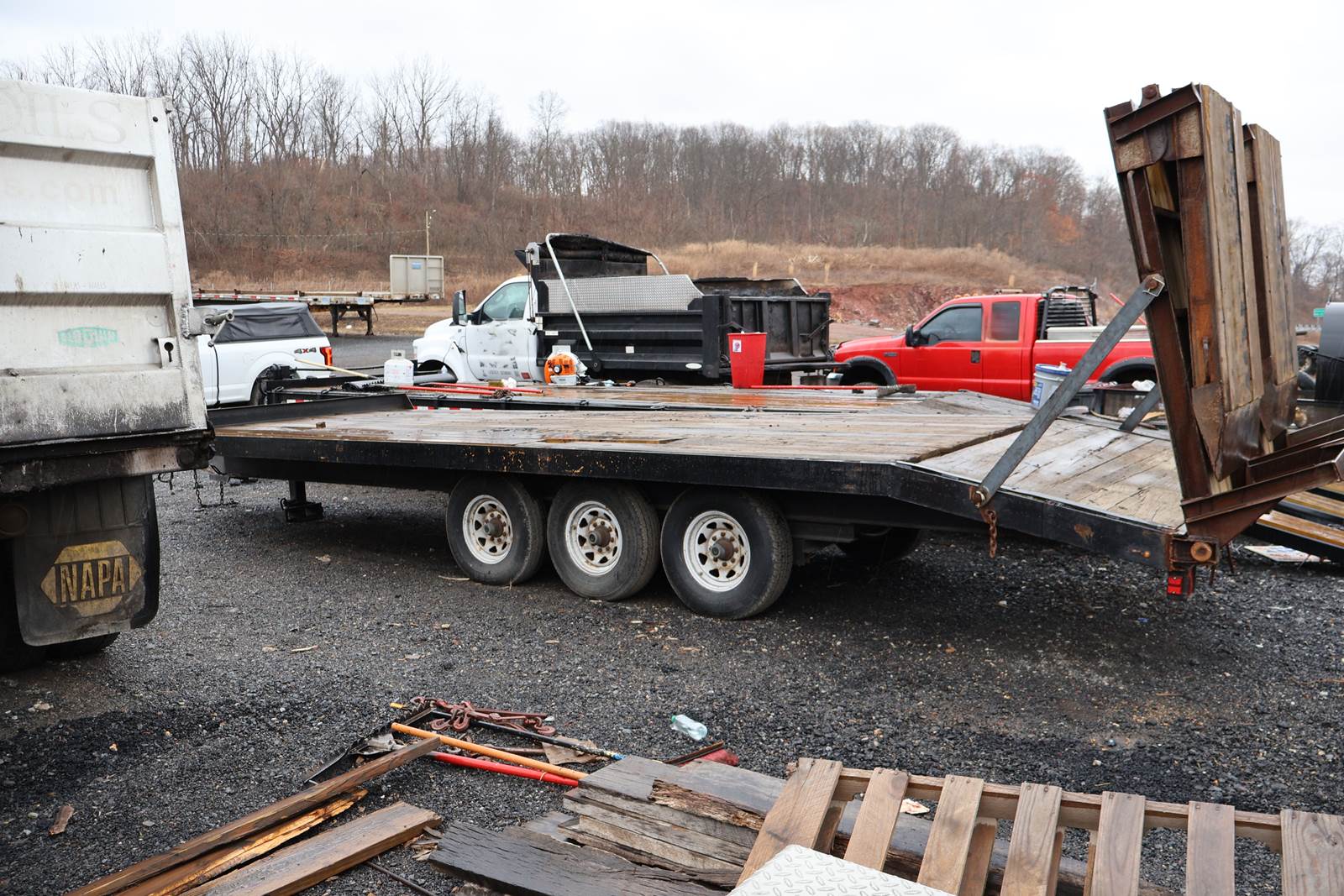 2004 Felling Tag Trailer, Tandem axle/Dually tires (LT245/75R16), 24' Deck, 5' Tail, Steel ramps, GVWR 29,500. Ready to haul.