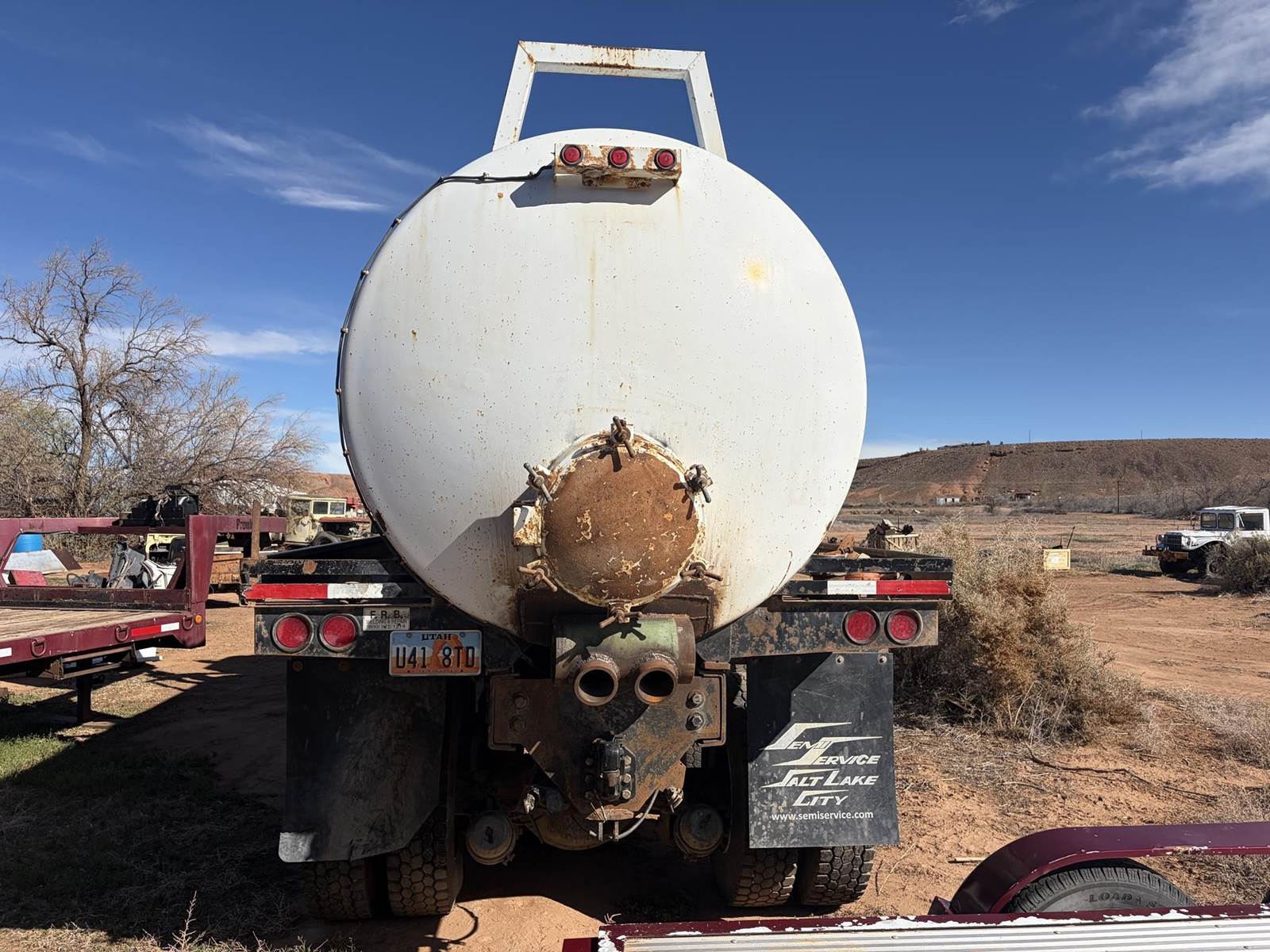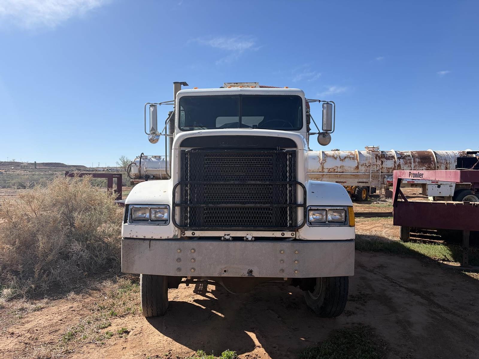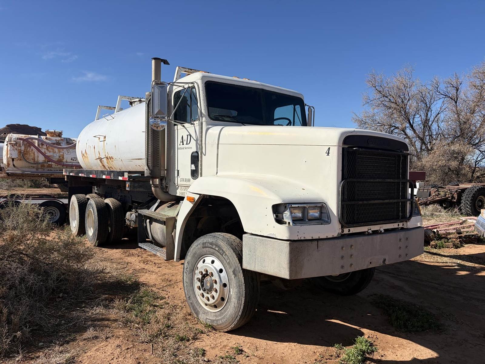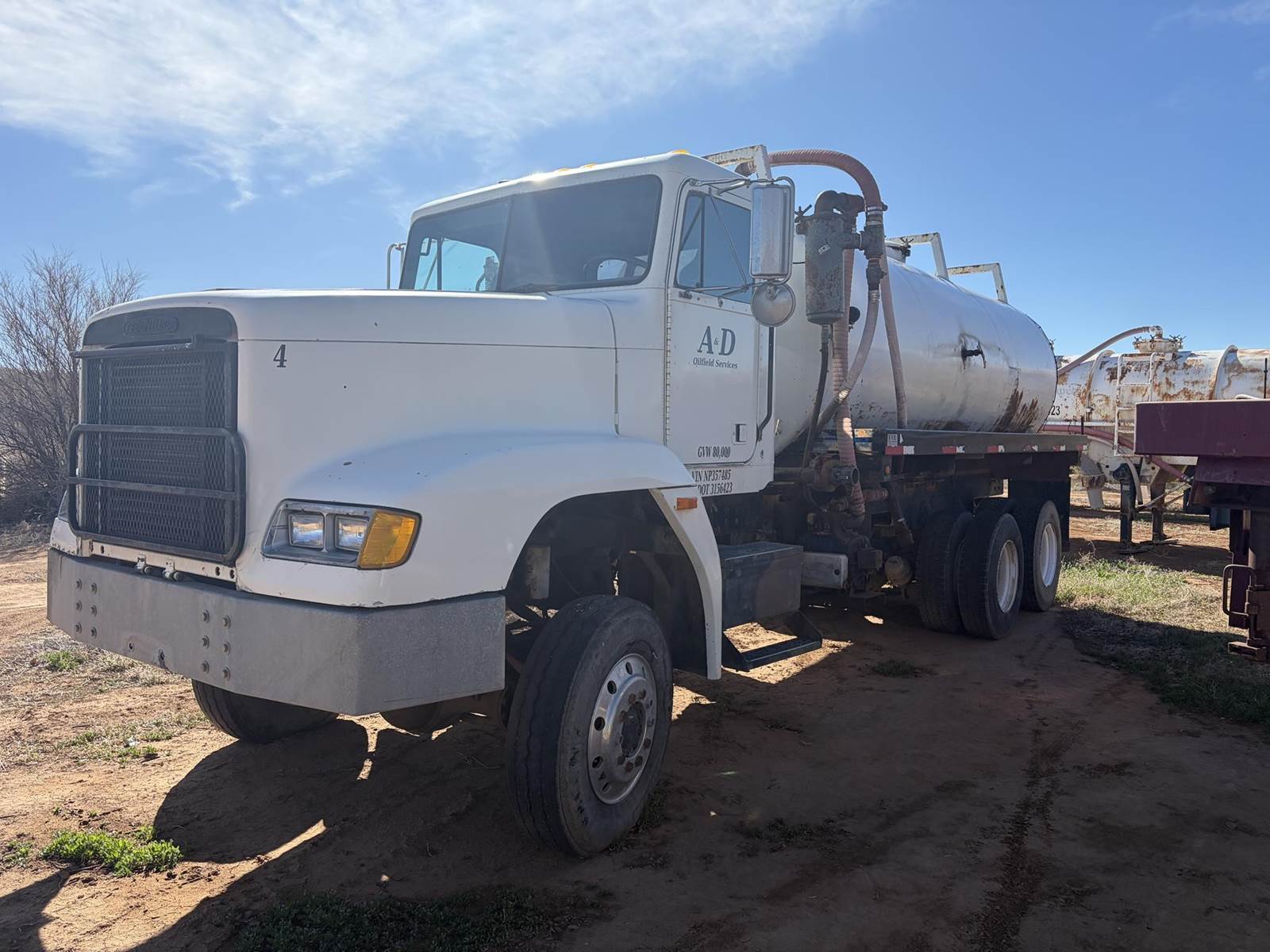 1992 Freightliner FLD120 - M916A1 - 6X6 Truck with F.R.B. Welding Custom Bilt 90 BBL Vacuum Water Tank and Custom Bilt 90 BBL 2 Axle Vacuum Tank Pup Trailer. Truck has 84,291 miles, 400 HP Series 60 Detroit Engine, Allison Automatic HT-740 Transmission, Oshkosh 55000 Series T Transfer Case, Oshkosh 18000 lb Front Axle, Rockwell RT-52-160P 25,000 lb 4.89 to 1 Ratio Tandem Rear Axles, 68,000 lb GVWR, 175" Wheelbase. Vacuum pump is wetkit operated 320 cfm Jurop Model LC300. Pup has new turntable and one new axle and is as described above. Both truck and pup tanks are vacuum tight. Asking $52,500 for both. Located in Roosevelt, Utah