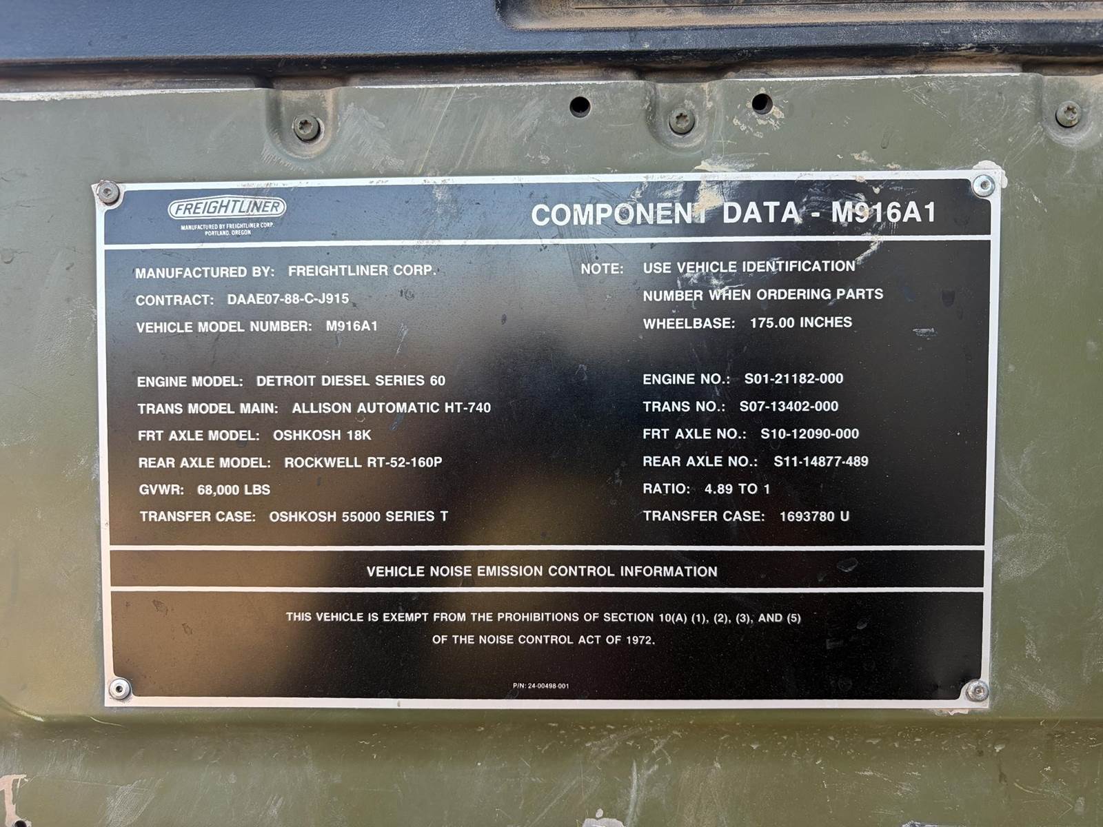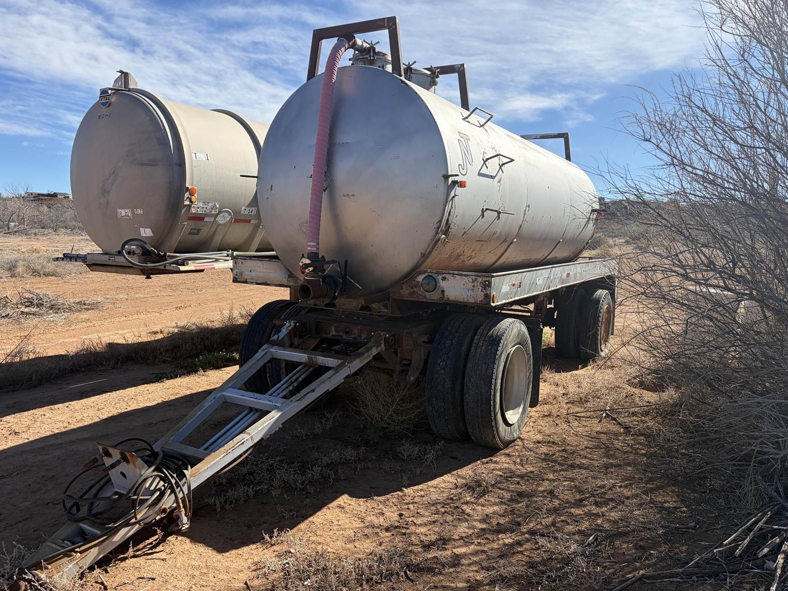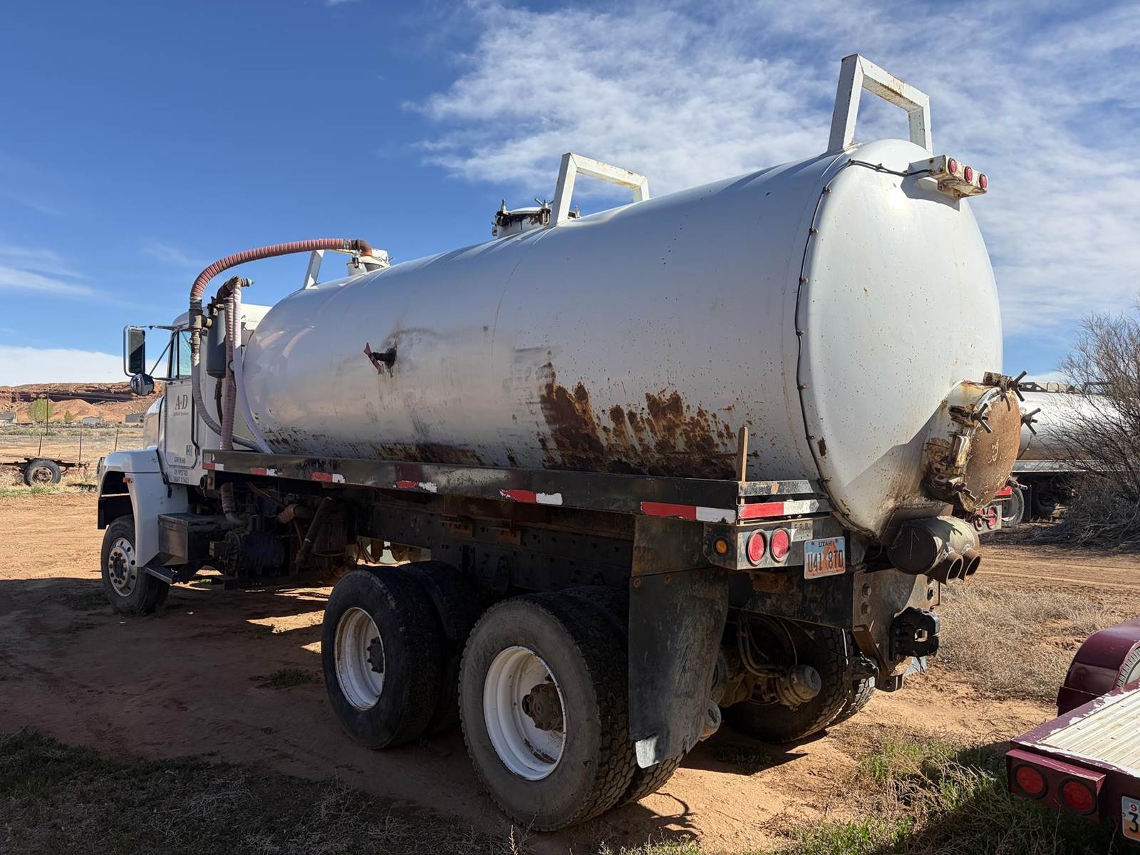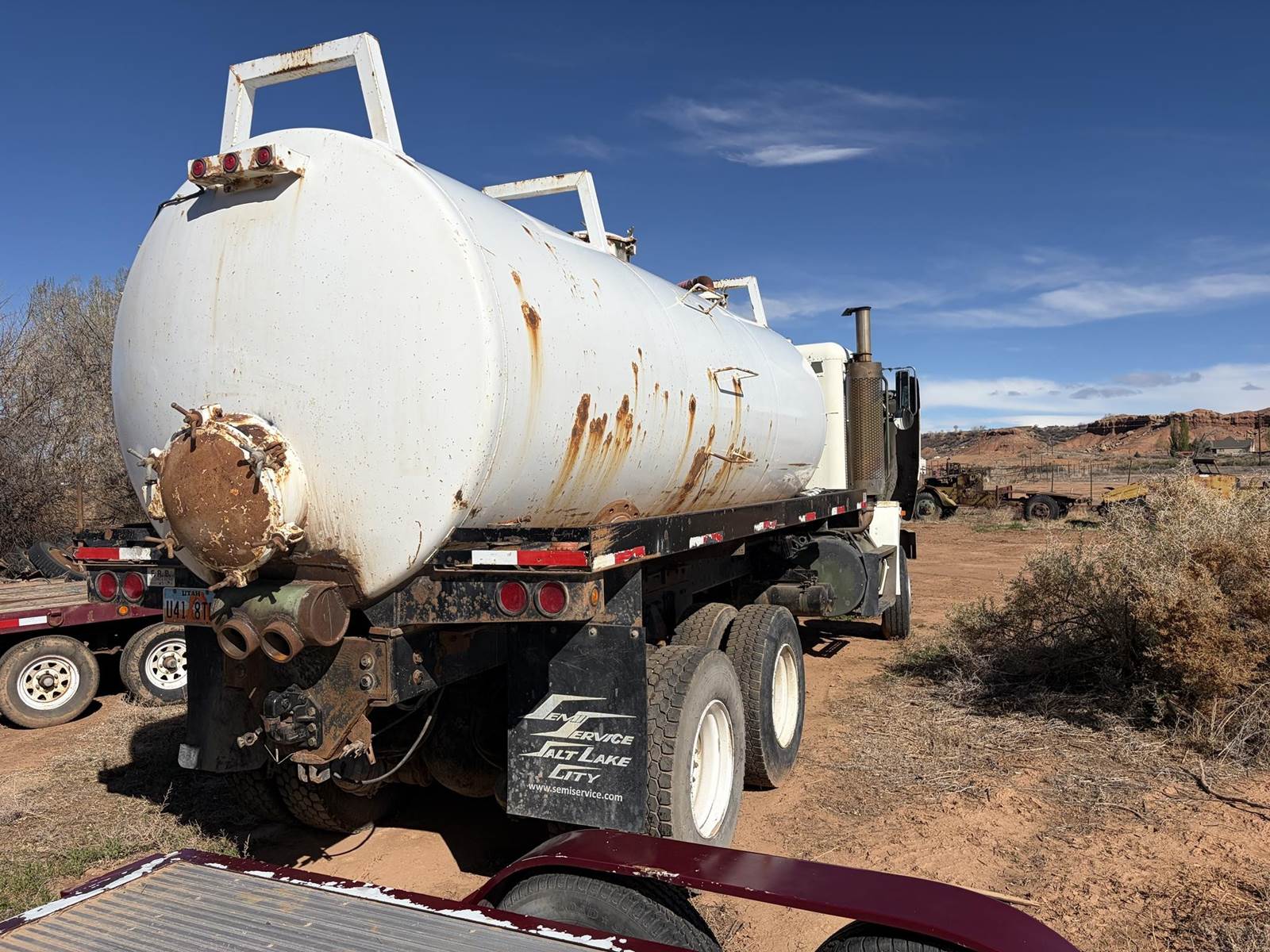 1992 Freightliner FLD120 - M916A1 - 6X6 Truck with F.R.B. Welding Custom Bilt 90 BBL Vacuum Water Tank and Custom Bilt 90 BBL 2 Axle Vacuum Tank Pup Trailer. Truck has 84,291 miles, 400 HP Series 60 Detroit Engine, Allison Automatic HT-740 Transmission, Oshkosh 55000 Series T Transfer Case, Oshkosh 18000 lb Front Axle, Rockwell RT-52-160P 25,000 lb 4.89 to 1 Ratio Tandem Rear Axles, 68,000 lb GVWR, 175" Wheelbase. Vacuum pump is wetkit operated 320 cfm Jurop Model LC300. Pup has new turntable and one new axle and is as described above. Both truck and pup tanks are vacuum tight. Asking $52,500 for both. Located in Roosevelt, Utah
