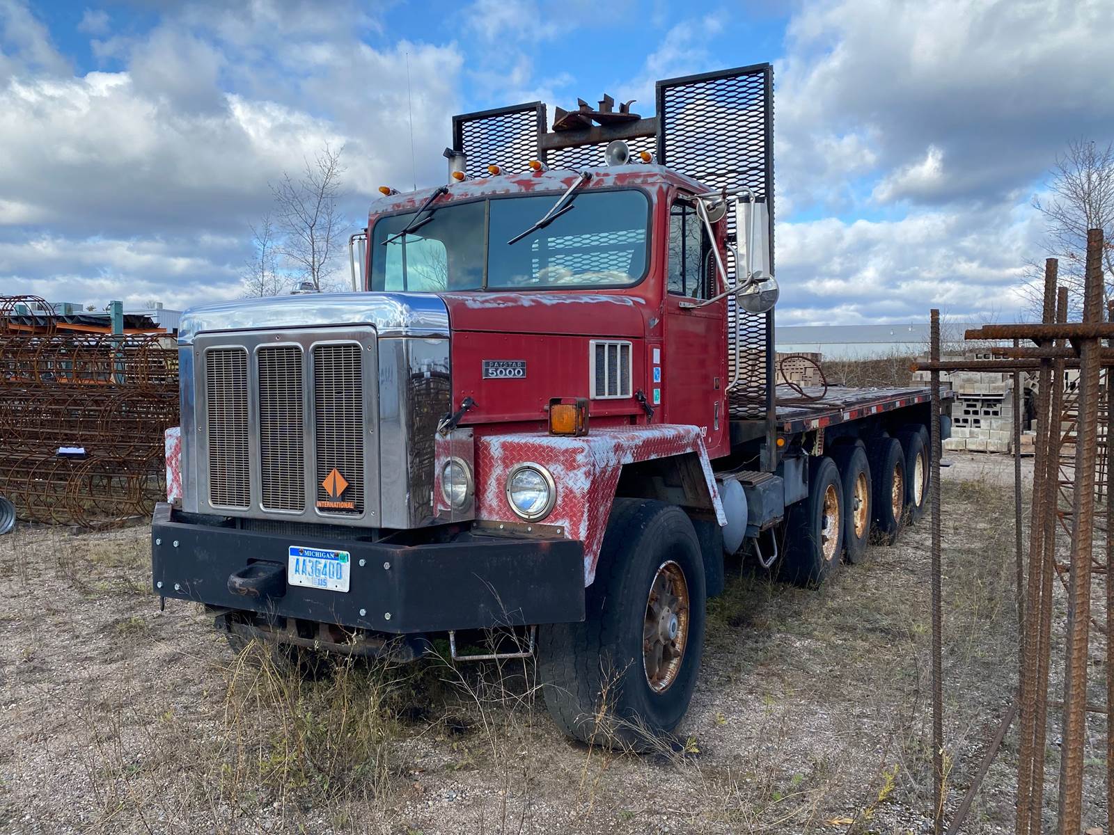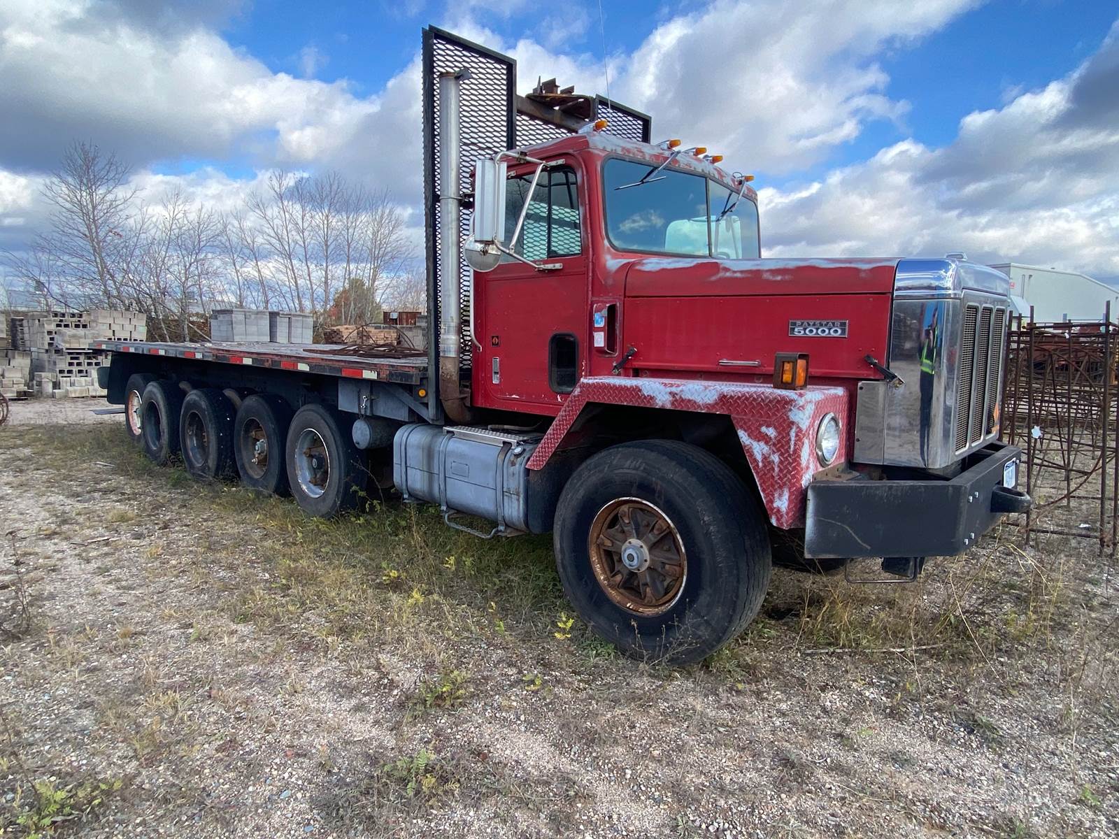 1992 International Quad Flatbed, GVWR #105,000, Twin-Axle, 2-pushers, 1-tag, Glider truck, 269,679 miles, 400 HP Cumins diesel engine, 25' 6" bed, Fuller Roadranger 10-speed manual transmission, Diff lock, Forklift mount on back. Well maintained, good running truck.
