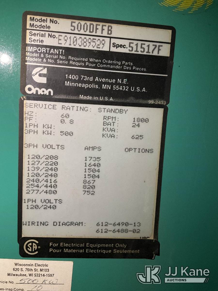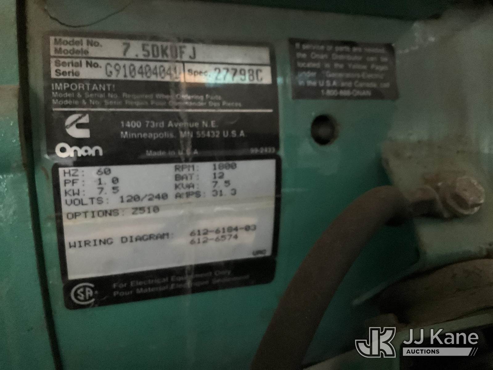 1992 Kentucky T/A Van Body Trailer, (1)Onan Generator, Model 500DFFB, 1166hours (1)Onan 7.5KDFJ GenSet Generator, 1504hours (Both Generators Run) This is a Titled Item NOTE: This unit is being sold AS IS/WHERE IS via Timed Auction and is located in South Beloit, IL. Inspection & preview days for this unit are the 2 business days prior to the first day of items closing for this auction, item is located at 14354 Dearborn Ave South Beloit, IL and hours of operations are 8a-4p. For pre-sale questions, please contact Derek Eklund at (608) 904-0618 or (derek.eklund@jjkane.com). (Buyer is responsible for removal. Assistance by consignor or JJ Kane Auctions is not assured.)