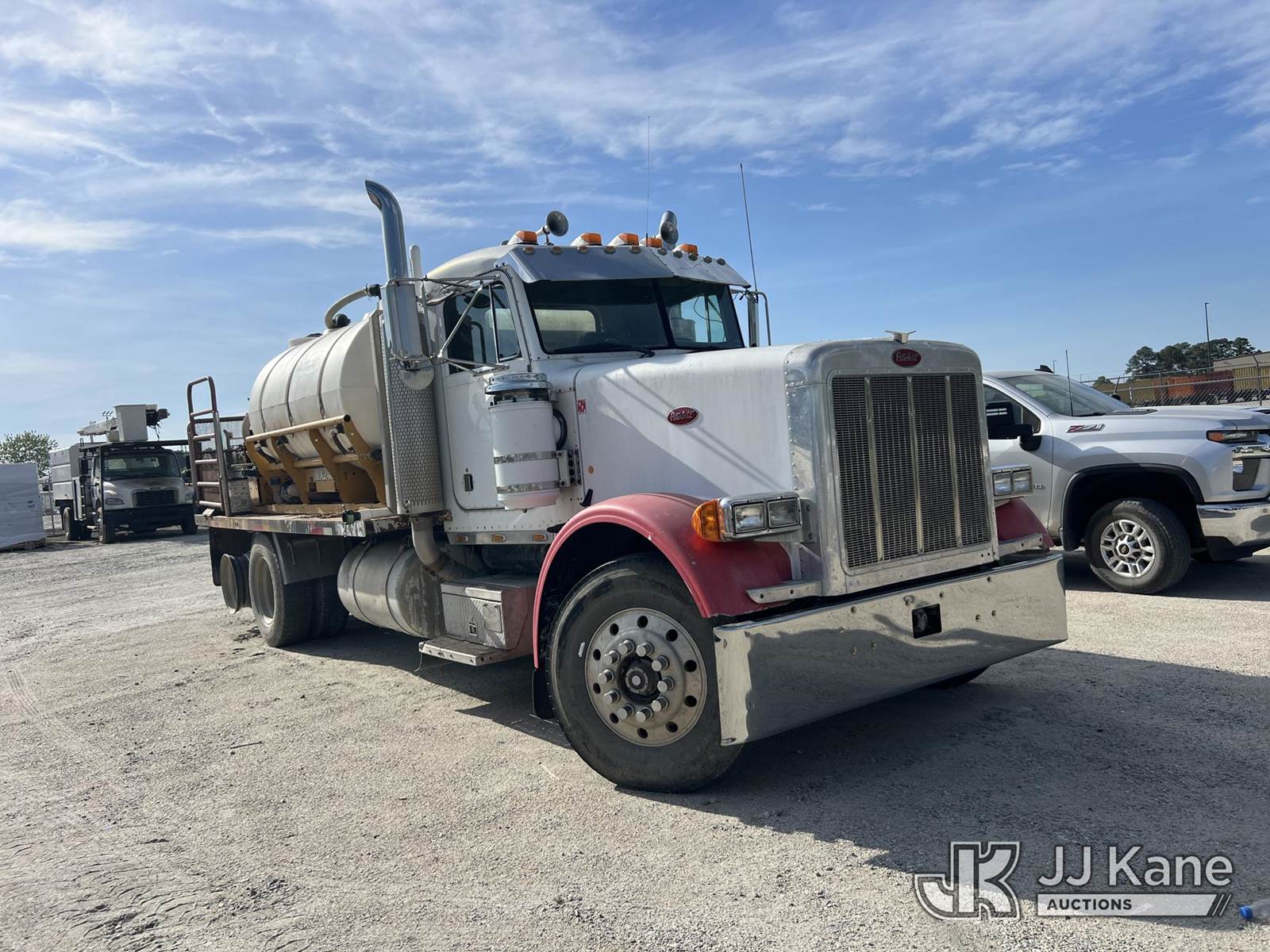 1992 Peterbilt 379 T/A Flatbed Truck, Detroit Series 60 diesel, 18 spd, A/C, with (2) MX240 mud mixing systems & poly tanks, (Exempt from Odometer Disclosure - Reads 711,724 miles) (Runs & Moves) (Jump To Start, Runs With Jump Box, Mud Mixers Missing Parts, Condition Unknown, Right Rear Tire Missing) This is a Titled Item NOTE: This unit is being sold AS IS/WHERE IS via Timed Auction and is located in Chester, VA. Inspection & preview days for this unit are the 2 business days prior to the first day of items closing for this auction, item is located at 13301 Great Coastal Dr Chester, VA 23836 and hours of operations are 7am-3pm. For pre-sale questions, please contact Doug Caton @ 804-807-4574. (Buyer is responsible for removal. Assistance by consignor or JJ Kane Auctions is not assured.)