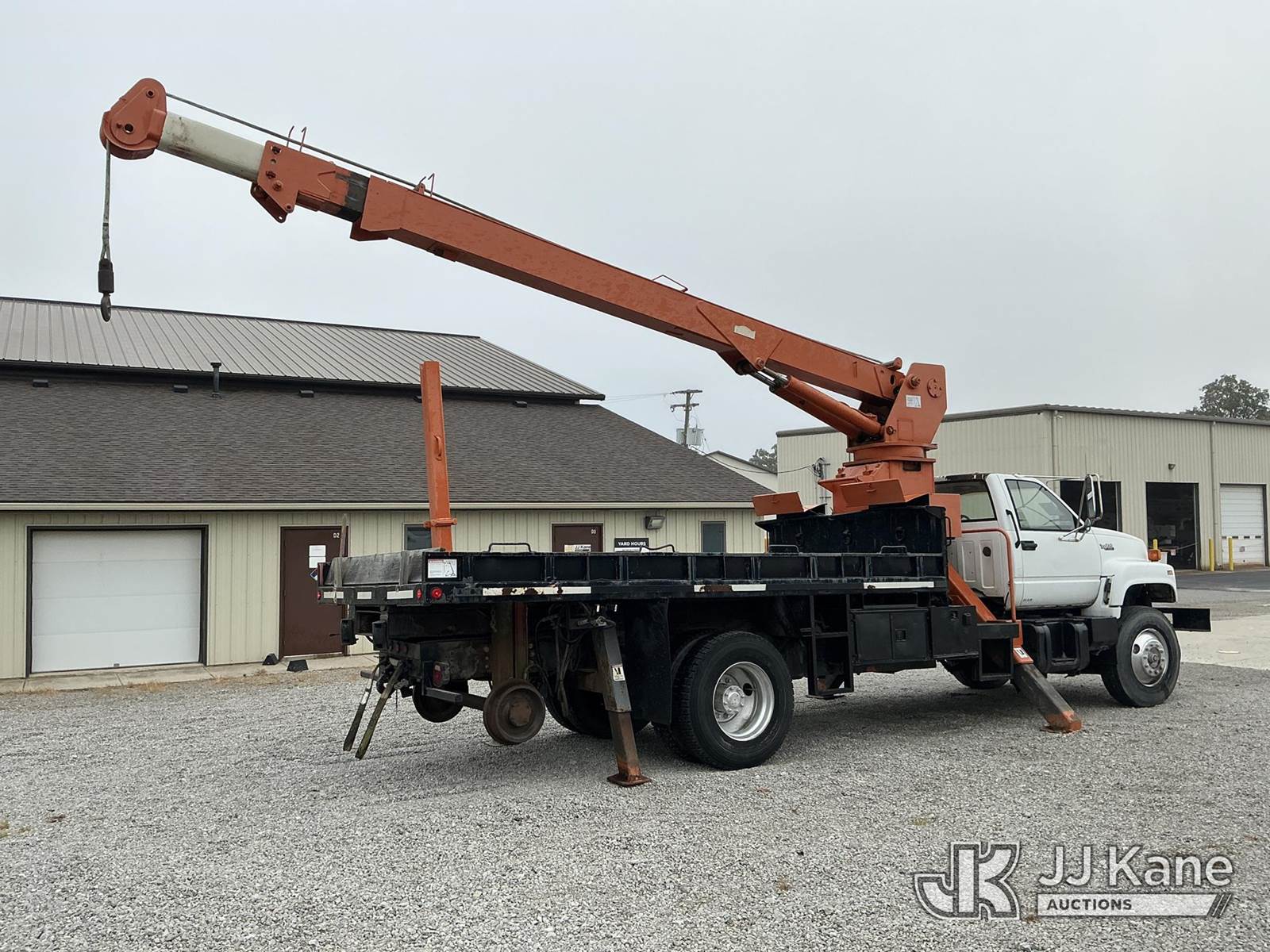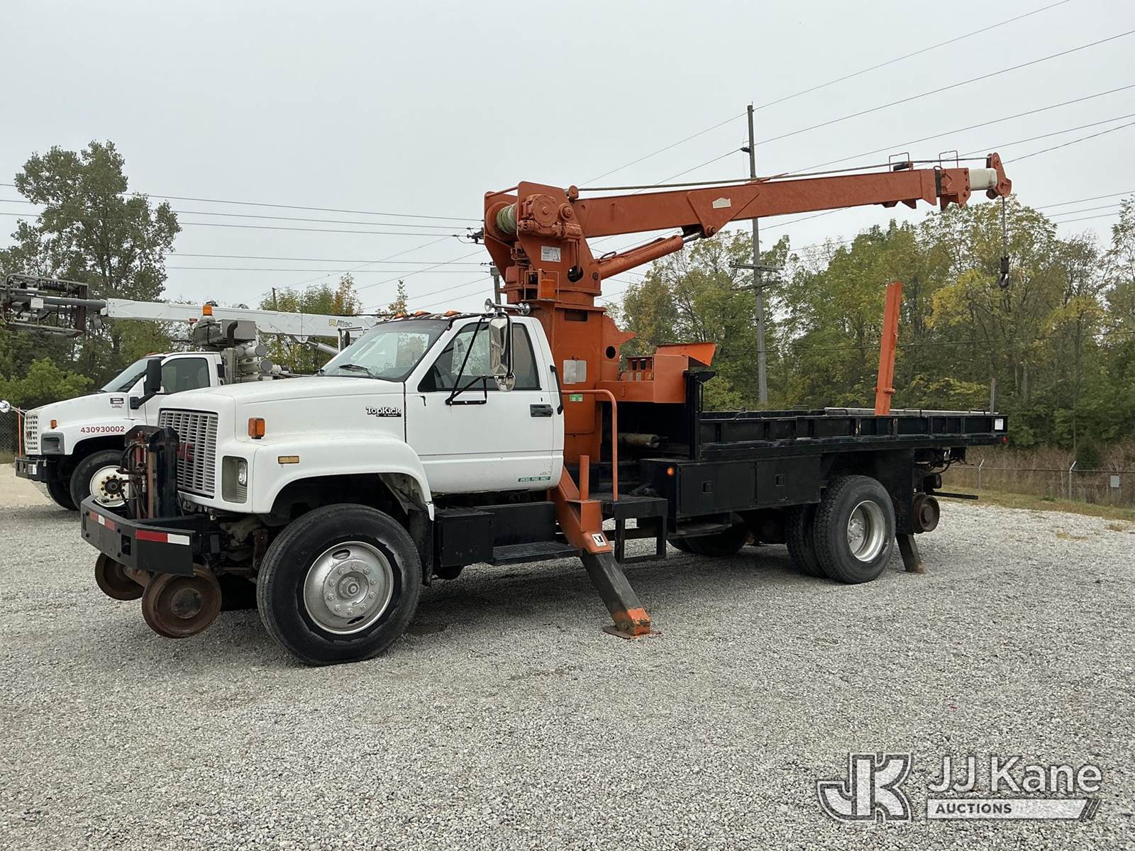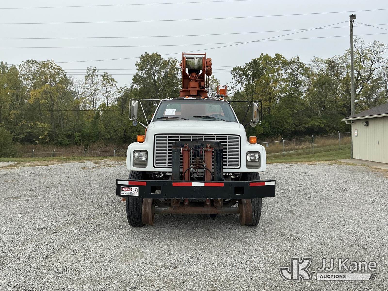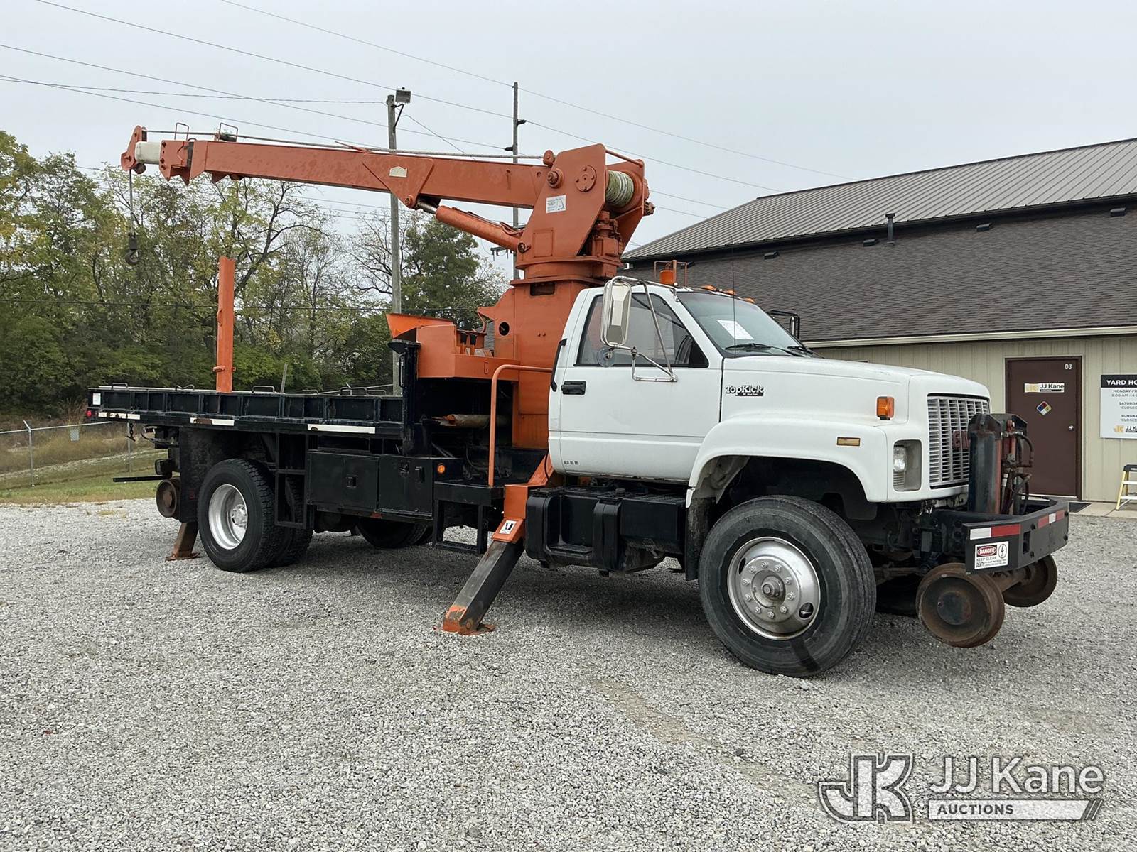 Telelect Commander 5000, 28,650 Lb Hydraulic Crane s/n 573-50, with 50 ft. sheave height, 3 section hyd. boom, heel winch, dual controls & 4 hyd outriggers, mounted behind cab on 1992 GMC C6500 Flatbed Truck, Cat 3116 diesel, manual, 4X2, with rail gear, (Exempt from Odometer Disclosure - Reads 72,285 miles) (Runs, Moves & Upper Operates) (Air Leak Behind Dash, Oil Leak, Rust & Paint Damage) (Reads 2,872 hours) This is a Titled Item NOTE: This unit is being sold AS IS/WHERE IS via Timed Auction and is located in Fort Wayne, IN. For more information & removal arrangements please contact Office Staff @ (260) 450-9822. Load out by appointment only, Buyer/Hauler must present copy of paid invoice upon arrival. Purchaser acknowledges ALL lots must be removed within (10) business days of Auction, or a storage fee may be incurred. For load out and pick up information, please reference the hauler sheet sent out after purchase. (Missing manuals, See Auction Company for Manufacturers Information to obtain manuals) (Buyer is responsible for removal. Assistance by consignor or JJ Kane Auctioneers is not assured.)