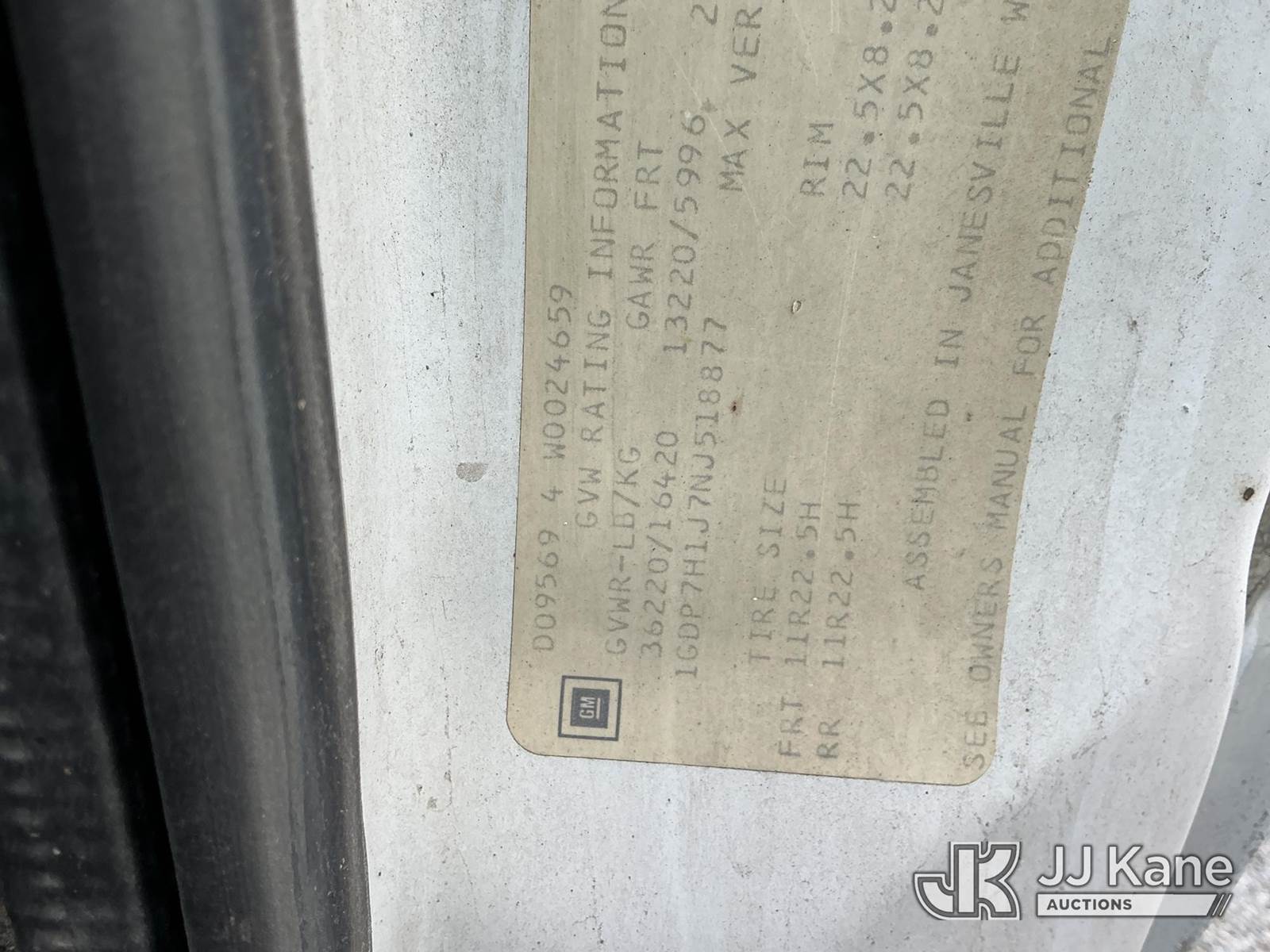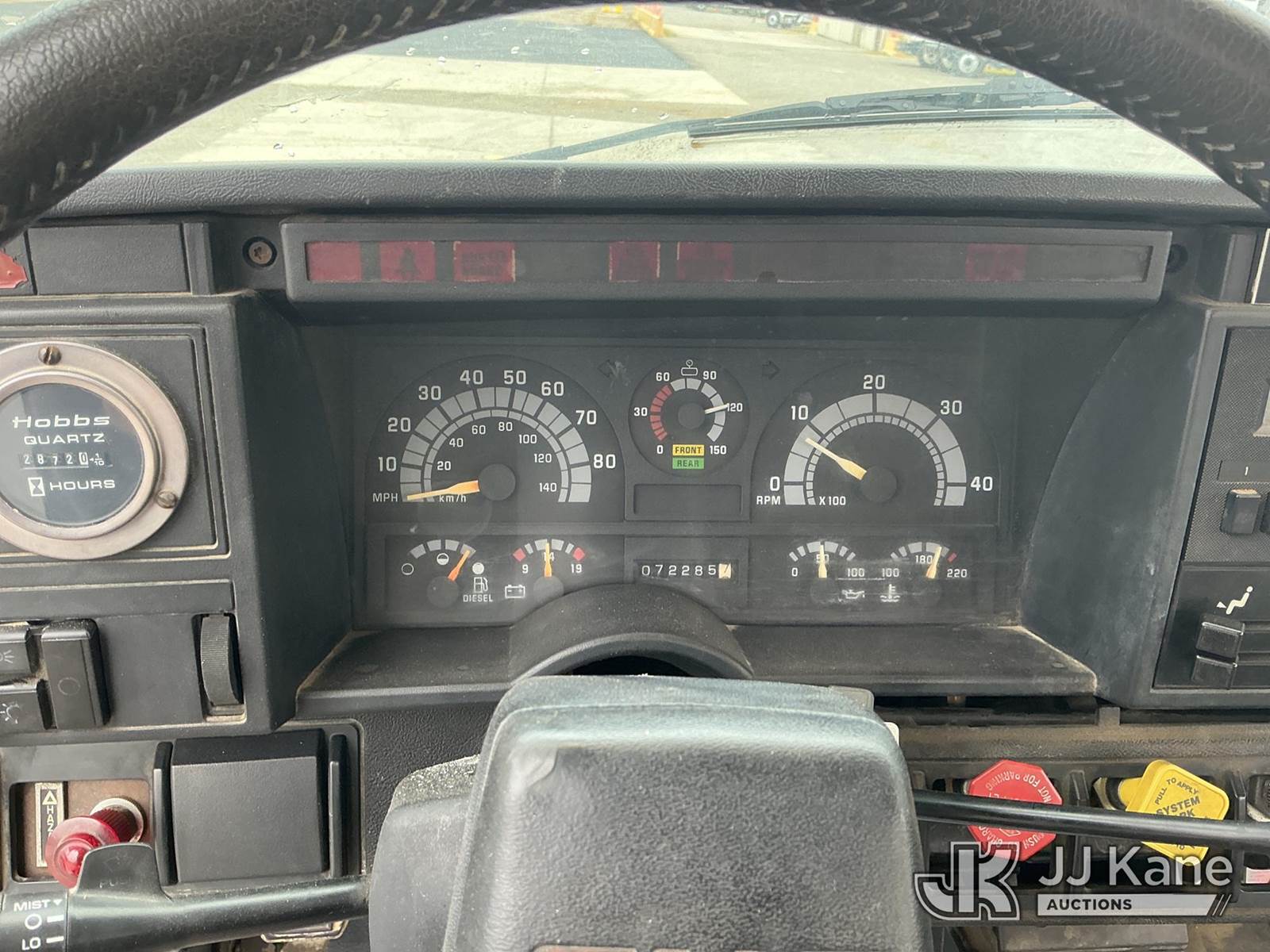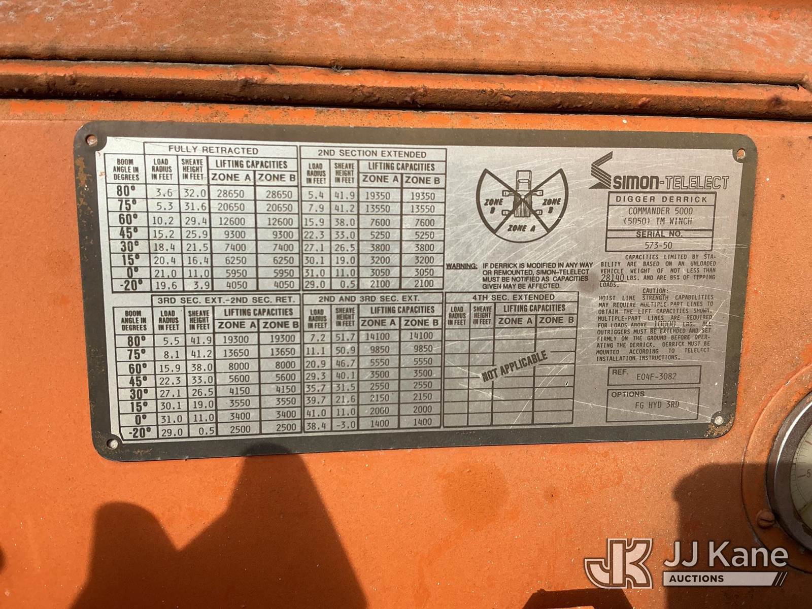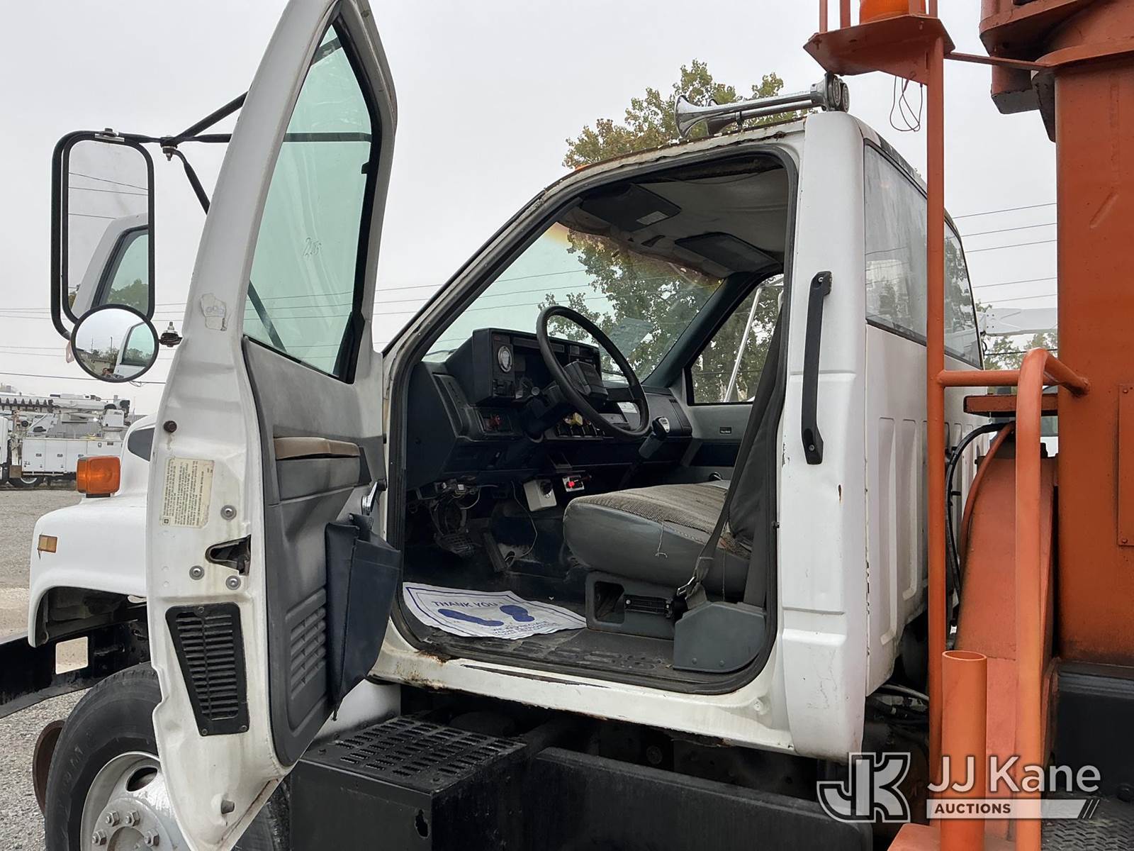 Telelect Commander 5000, 28,650 Lb Hydraulic Crane s/n 573-50, with 50 ft. sheave height, 3 section hyd. boom, heel winch, dual controls & 4 hyd outriggers, mounted behind cab on 1992 GMC C6500 Flatbed Truck, Cat 3116 diesel, manual, 4X2, with rail gear, (Exempt from Odometer Disclosure - Reads 72,285 miles) (Runs, Moves & Upper Operates) (Air Leak Behind Dash, Oil Leak, Rust & Paint Damage) (Reads 2,872 hours) This is a Titled Item NOTE: This unit is being sold AS IS/WHERE IS via Timed Auction and is located in Fort Wayne, IN. For more information & removal arrangements please contact Office Staff @ (260) 450-9822. Load out by appointment only, Buyer/Hauler must present copy of paid invoice upon arrival. Purchaser acknowledges ALL lots must be removed within (10) business days of Auction, or a storage fee may be incurred. For load out and pick up information, please reference the hauler sheet sent out after purchase. (Missing manuals, See Auction Company for Manufacturers Information to obtain manuals) (Buyer is responsible for removal. Assistance by consignor or JJ Kane Auctioneers is not assured.)
