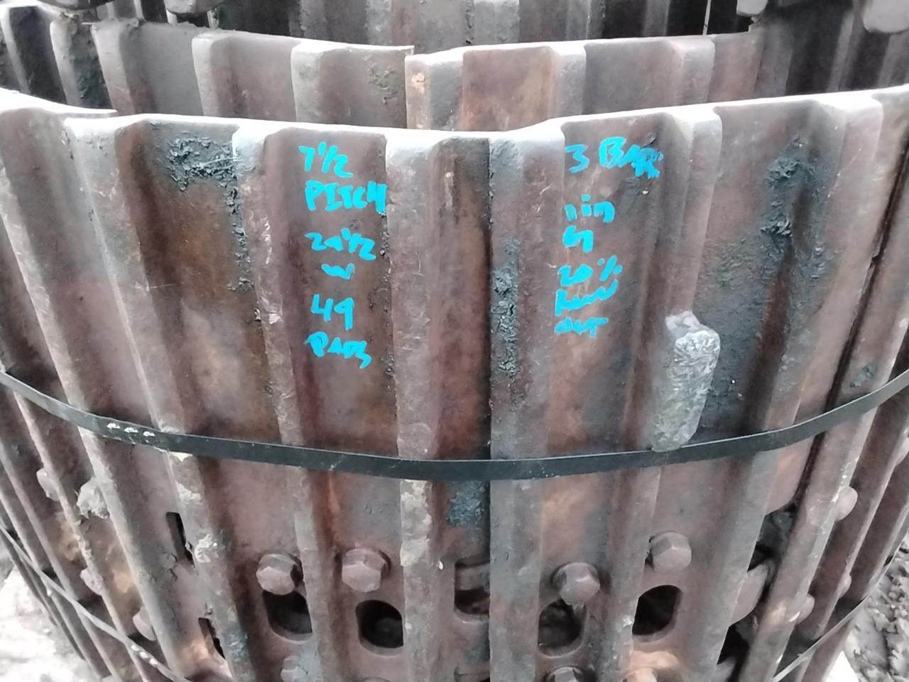 Good used track group from a John Deere 690ELC stroke delimber. Measurements are 7 1/2in PITCH, 49PADS, 29 1/2 in WIDE pads, 3BAR 1in GROUSERS, 20% RUNOUT.