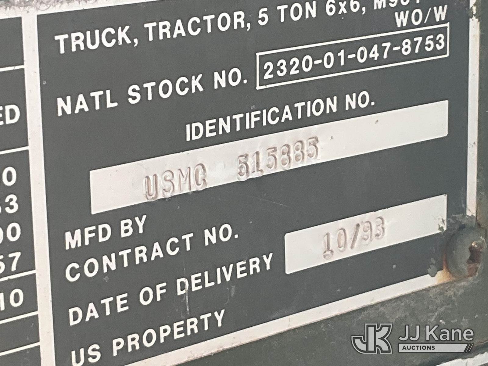 1993 AM General M931 6x6 Truck Tractor, Cummins diesel, Auto, (Bad Motor) (Runs & Moves) This is a Titled Item NOTE: This unit is being sold AS IS/WHERE IS via Timed Auction and is located in Salt Lake City, UT. Inspection & preview days for this unit are the 2 business days prior to the first day of items closing for this auction, item is located at 2353 N Redwood Rd Salt Lake City, UT 84116 and hours of operations are 8a-4p. Titles executed exactly as bidder registered. Ensure your name and/or business name and address in JJ Kane and/or ProxiBid is correct before bidding. For pre-sale questions, please contact Office Staff @ (801) 519-0123. (Buyer is responsible for removal. Assistance by consignor or JJ Kane Auctions is not assured.)