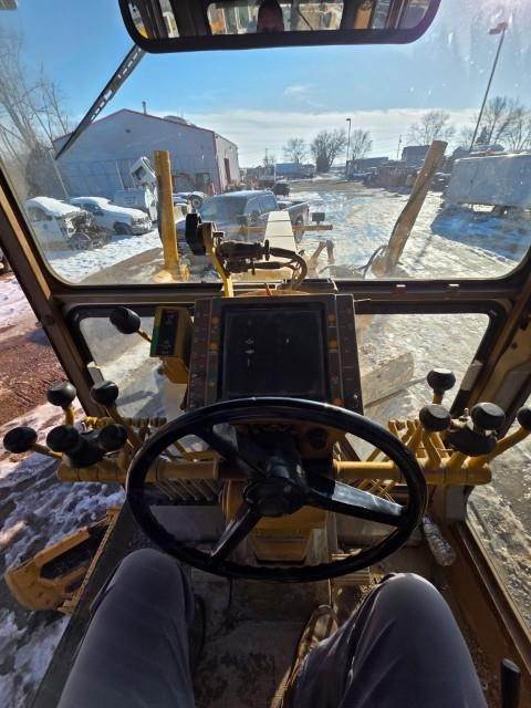 AWD, Cat 3306 diesel @ 150 h.p., 6F/6R trans. with powershift, articulating frame, wheel tilt, EROPS, front ripper, 14' moldboard, 14x24 tires, heat/ac, factory laser leveling system (still in box), 27,822 lbs. operating weight, 7,559 hrs. showing
