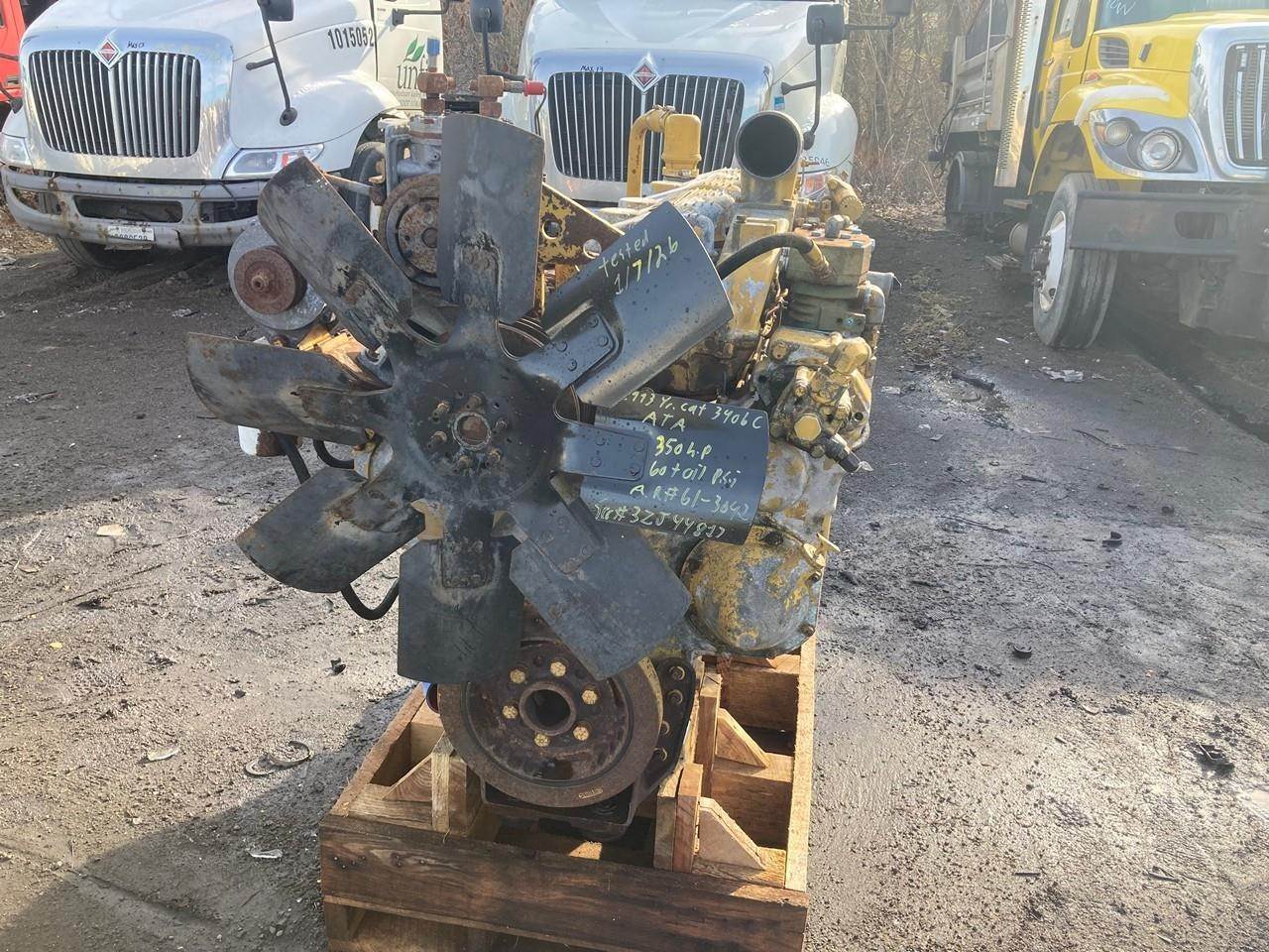 1993 CATERPILLAR 3406C 350HP DIESEL TAKEOUT ENGINE FOR SALE at ADELMAN’S TRUCK PARTS in CANTON, OHIO. GOOD USED, RUN TESTED and COMPLETE with STARTER, TURBOCHARGED and AIR TO AIR, MECHANICAL INJECTION PUMP, 350 HP @ 1950 RPM, 6I-3042 ARRANGEMENT #, with 60+ LBS OIL PRESSURE.