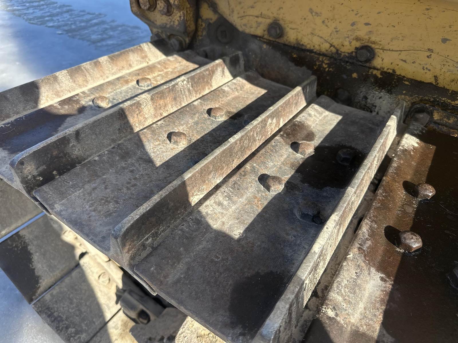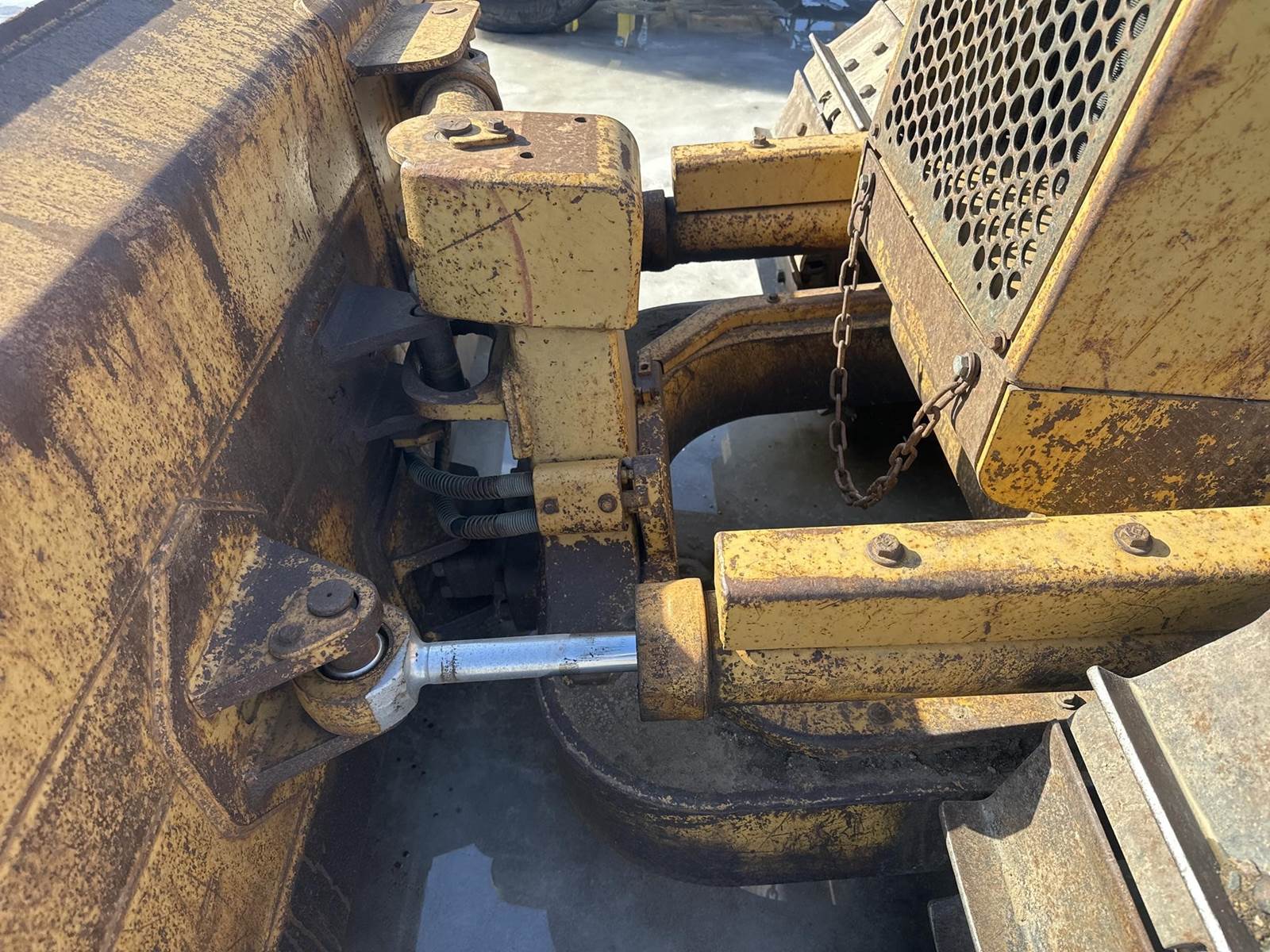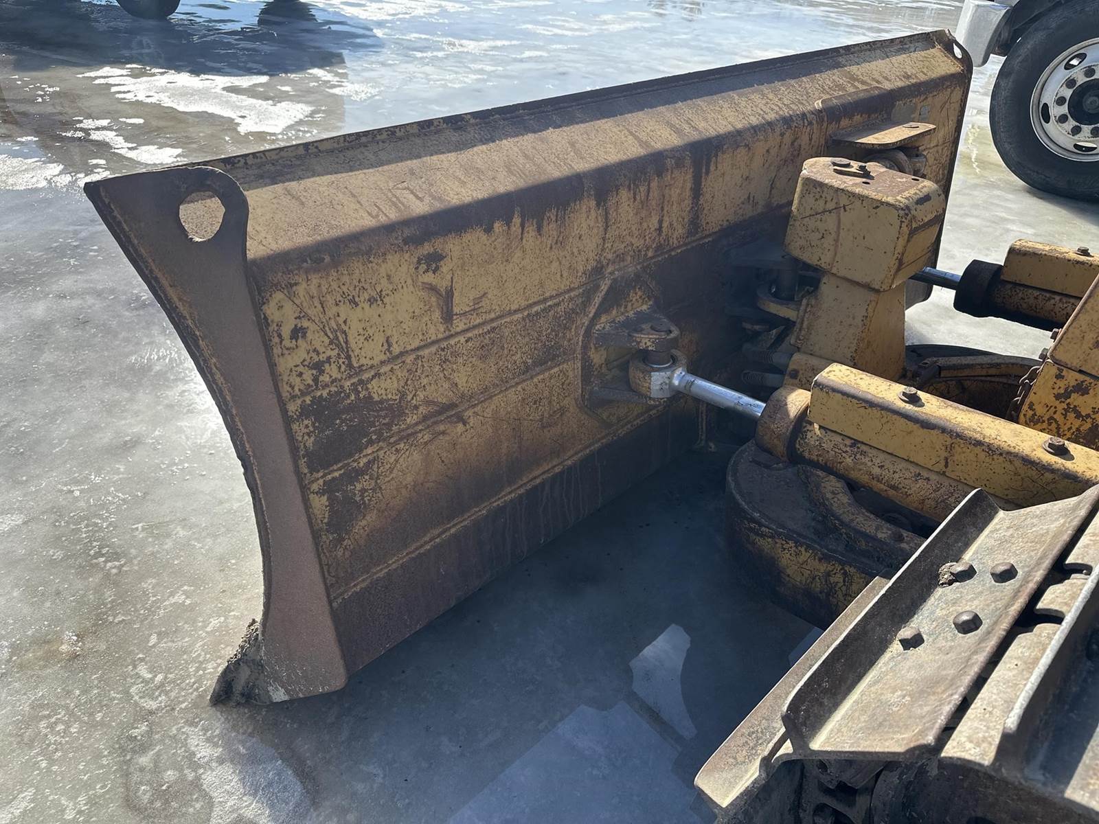 Caterpillar 3204 Turbo Diesel Engine, 3 Speed Forward/Reverse Transmission, Approx 104" Blade Width, 6-Way Blade, EROPS, Joystick Control, Heater, Approx 20" Metal Track Pads