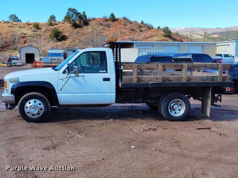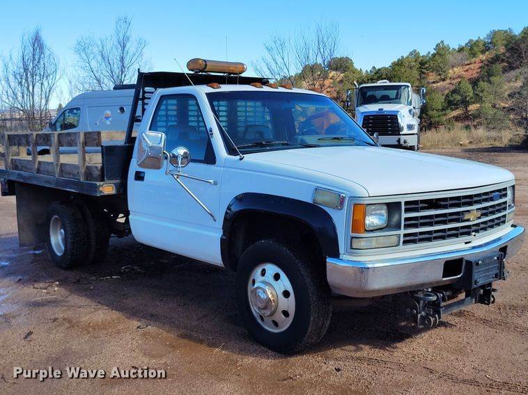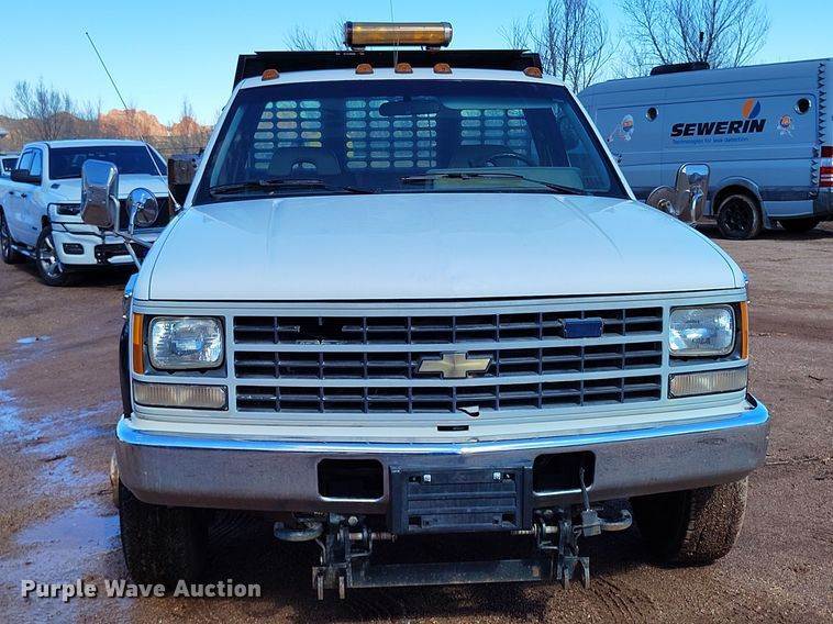 1993 Chevrolet Cheyenne 3500 dump flatbed pickup truck