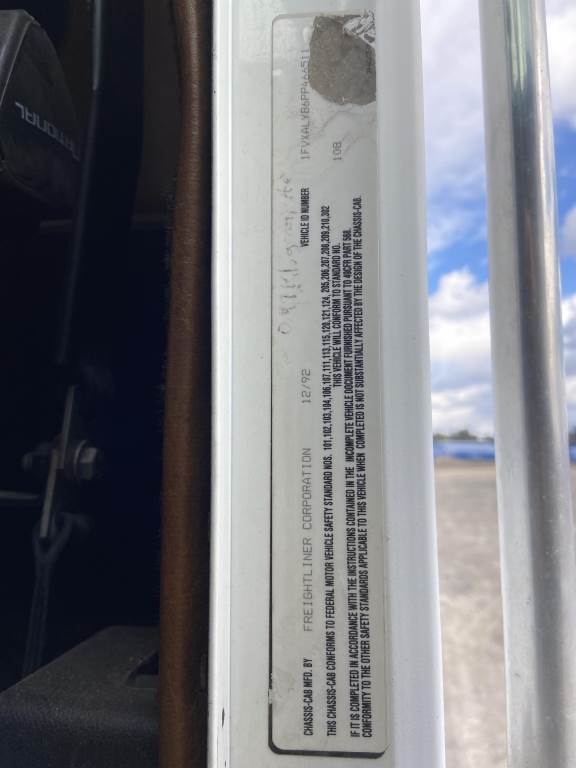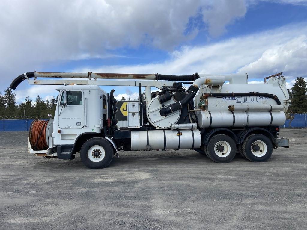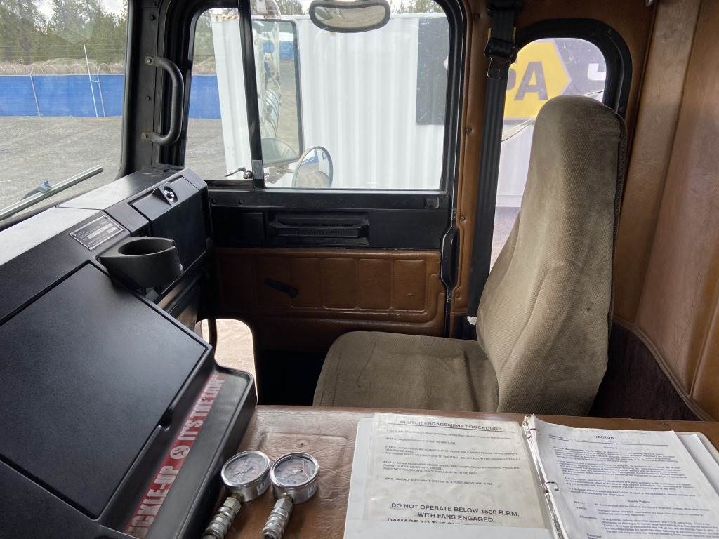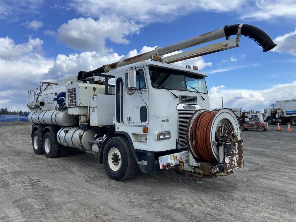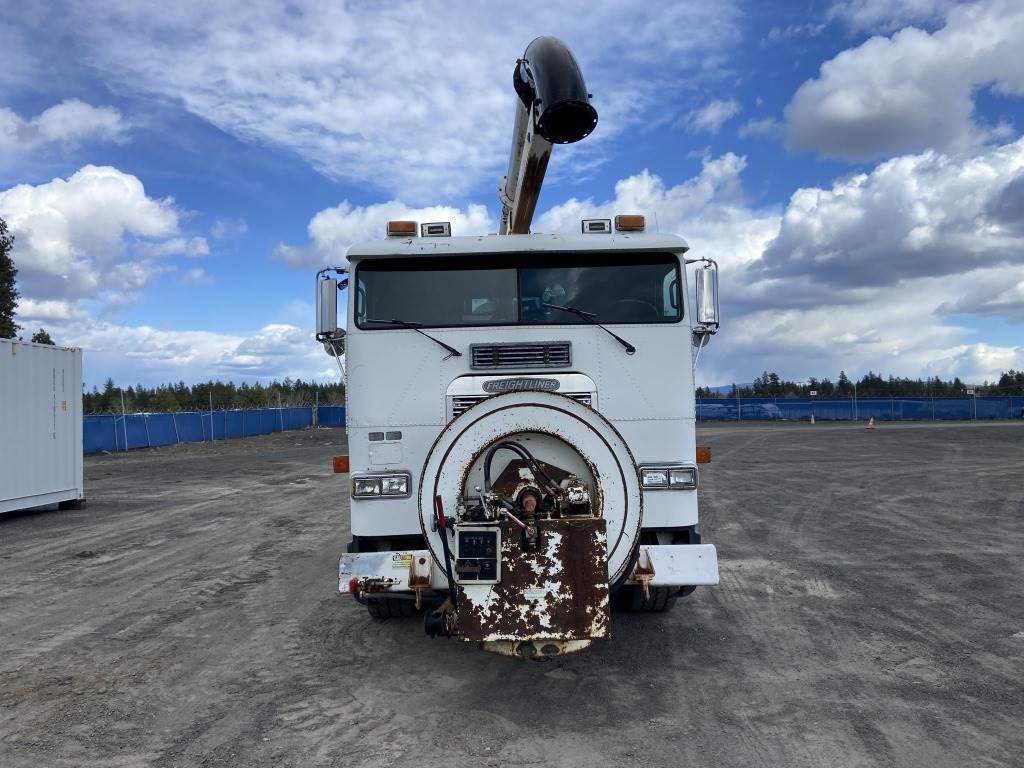 Location: Spokane WA ***End-User Consignment*** VIN: 1FVXALYB6PP466511 Engine: Cummins 10L Diesel Transmission: Fuller Roadranger 8 Speed w/Lo & Lo lo *Vacuum unit is non-operational* Vactor 2100 vacuum body mounted on 1993 Freightliner USF-1E T/A cab & chassis, rodder, front hose reel w/hose, side hose reel w/hose, 4 storage compartments, air brakes, Chelsea PTO, engine brake, A/C, AM/FM, 425/65R22.5 front tires, 11R22.5 rear tires, Miles: 114,194 indicated