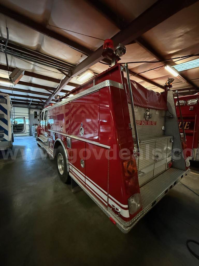 Pumper Manufacturer: International Size: 4900 Diesel Engine is operable Transmission Manufacturer: Allison - Automatic Condition: Operable Transmission Repairs Needed: None Pump Manufacturer: Hale Model: QSG125-2IL Serial: 63450 Operable Hours: 10939 GPM: 1250 Last tested: 10/22/25 Pump Certification: expires 10 22 25 Additional Equipment: 1000 gallons Poly # of intakes - 3 Location / Size: 1 - 2.5 pump panel 2-6" pump in takes # of discharges: 5 -2.5 3- 1.5 Location /Size: 2 - 2.5 pump driver side 2 - 2.5 pass side Tire Condition: Good Additional Features: Hose Bedcover, wrench front bumper, foam system, tinted windows Exterior: Color: R/W Windows: Not Cracked Interior: Brown - vinyl **GovDeals.com is the online auction platform where you can bid on and buy government surplus**