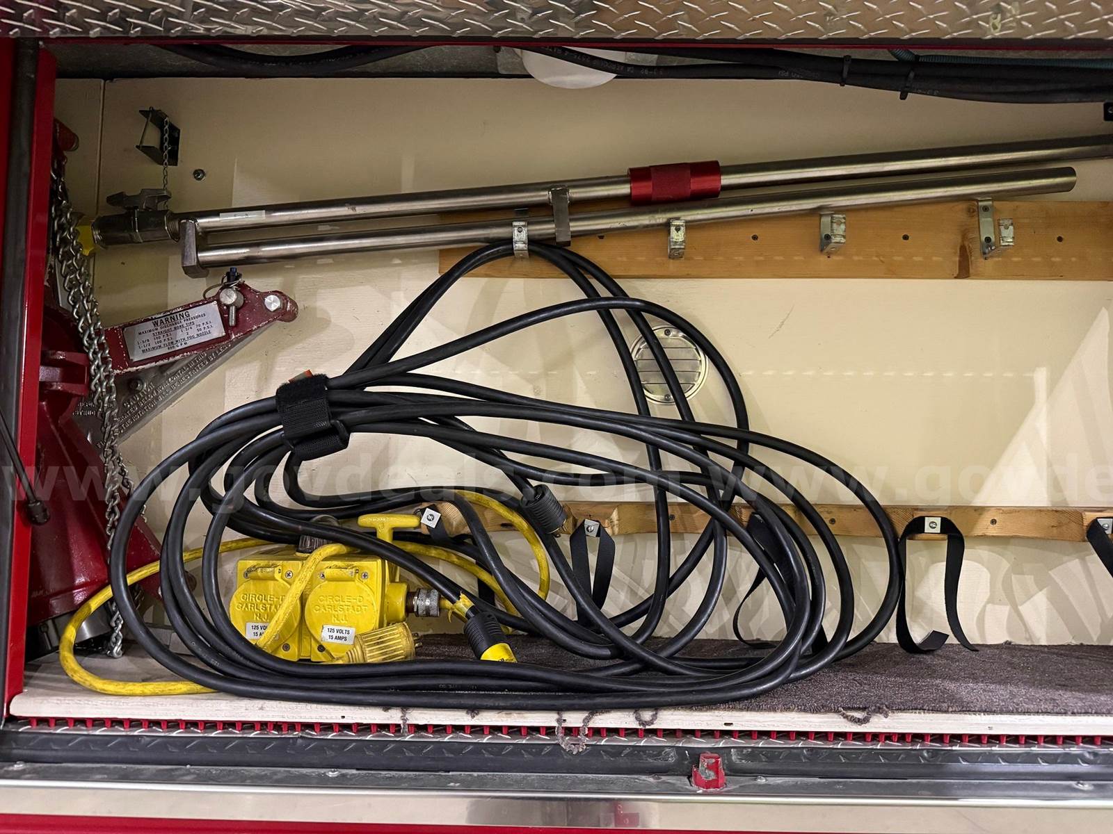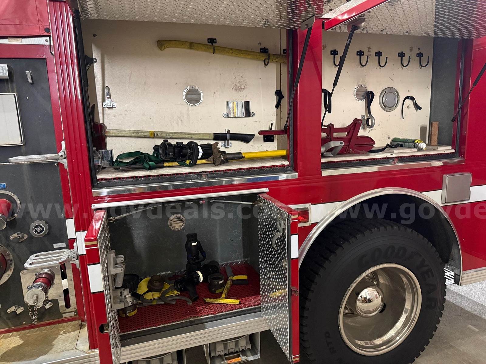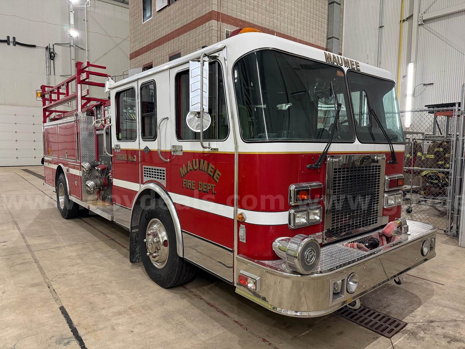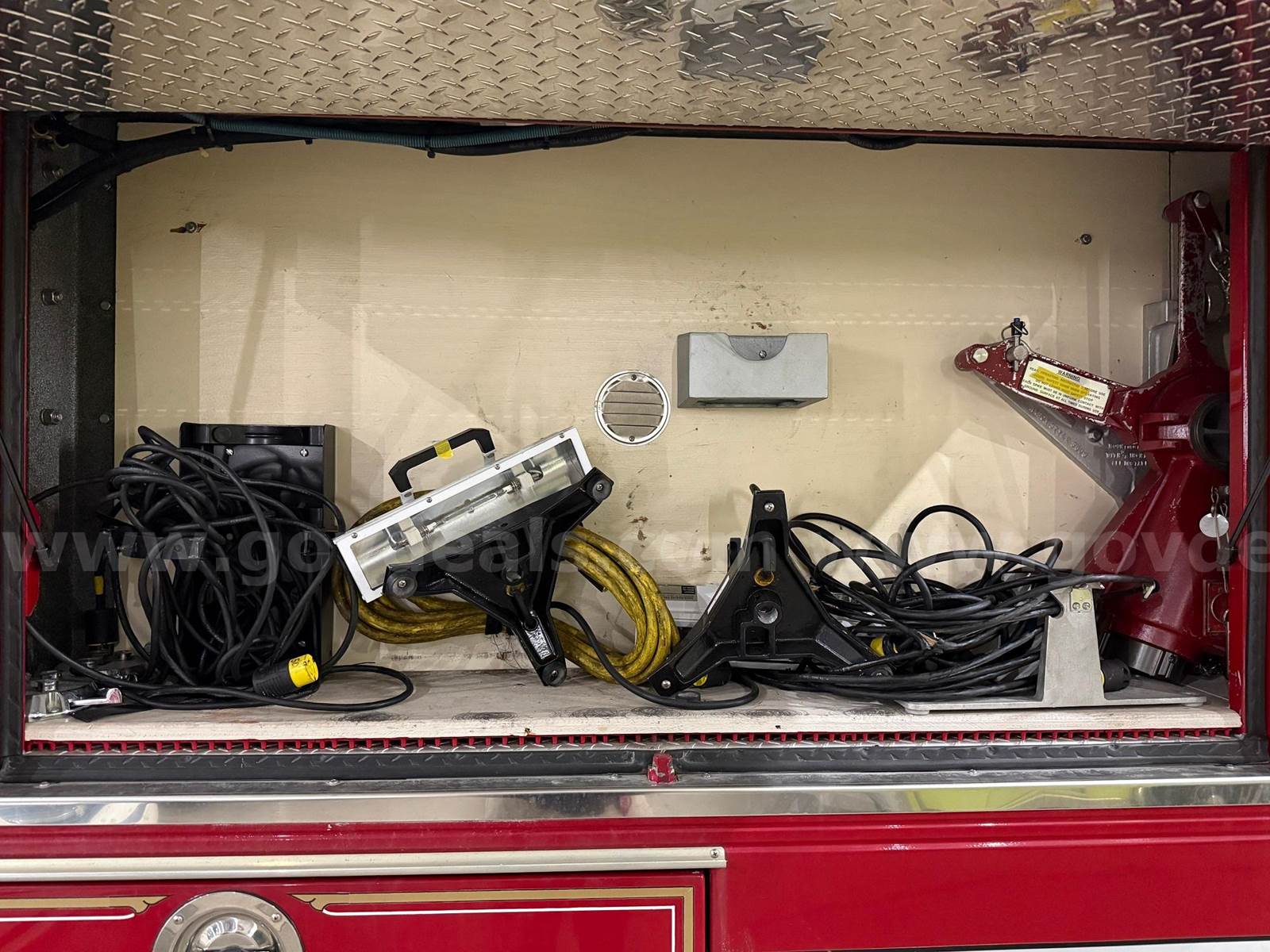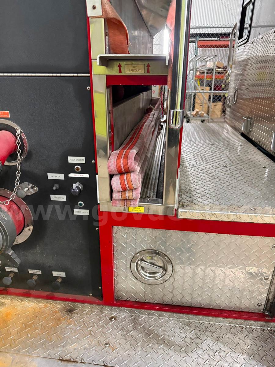 1993 Spartan Fire Engine with a Detroit Diesel Engine with 2304 engine hours, and automatic transmission. Mileage is 12215. Has 6 newer tires. The Pump was last run in the summer of 2025 and still works; and the vehicle is run every week and has been kept inside the building all this time when not in use. The generator at the rear of the vehicle does run and was started just this week. It has been several years since the fire engine was used for fire training class. There is a variety of miscellaneous equipment that comes with the engine, including the hoses; see the pictures showing that equipment.