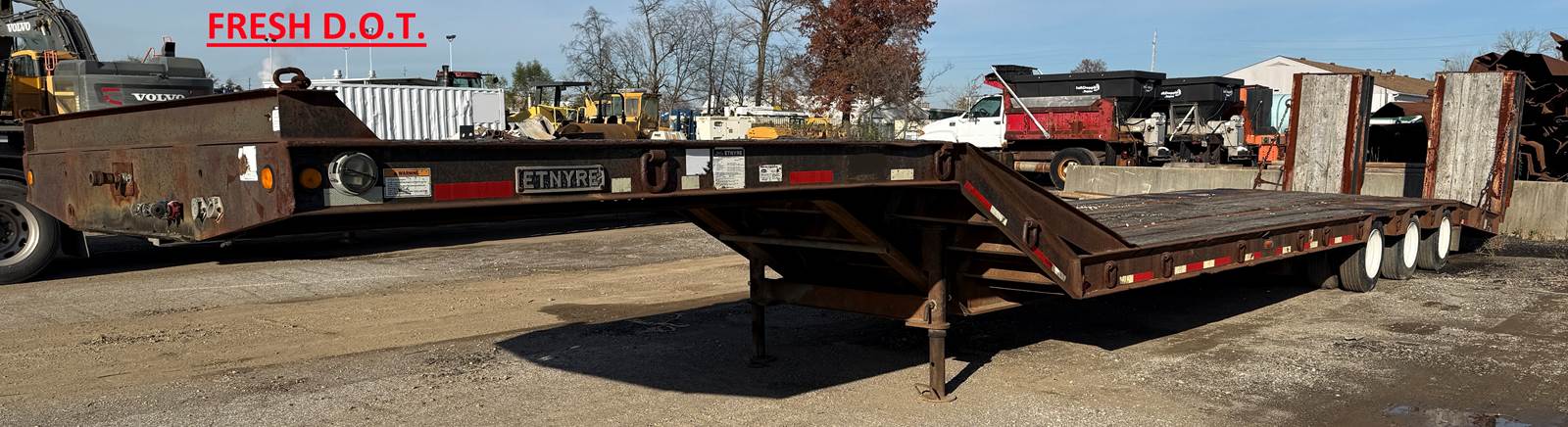 **RECENT DOT** 1994 ETNYRE PAVER SPECIAL LOWBOY, 50'x108", 40 Ton, Tri Axle, Fixed Neck Hitch, Air Ride Suspension, Wood Deck, 26' Well, 10.5' Top Deck, 6.5' Dovetail, 12' Folding Hydraulic Ramps, DOT 10/2024, Ready to Pull