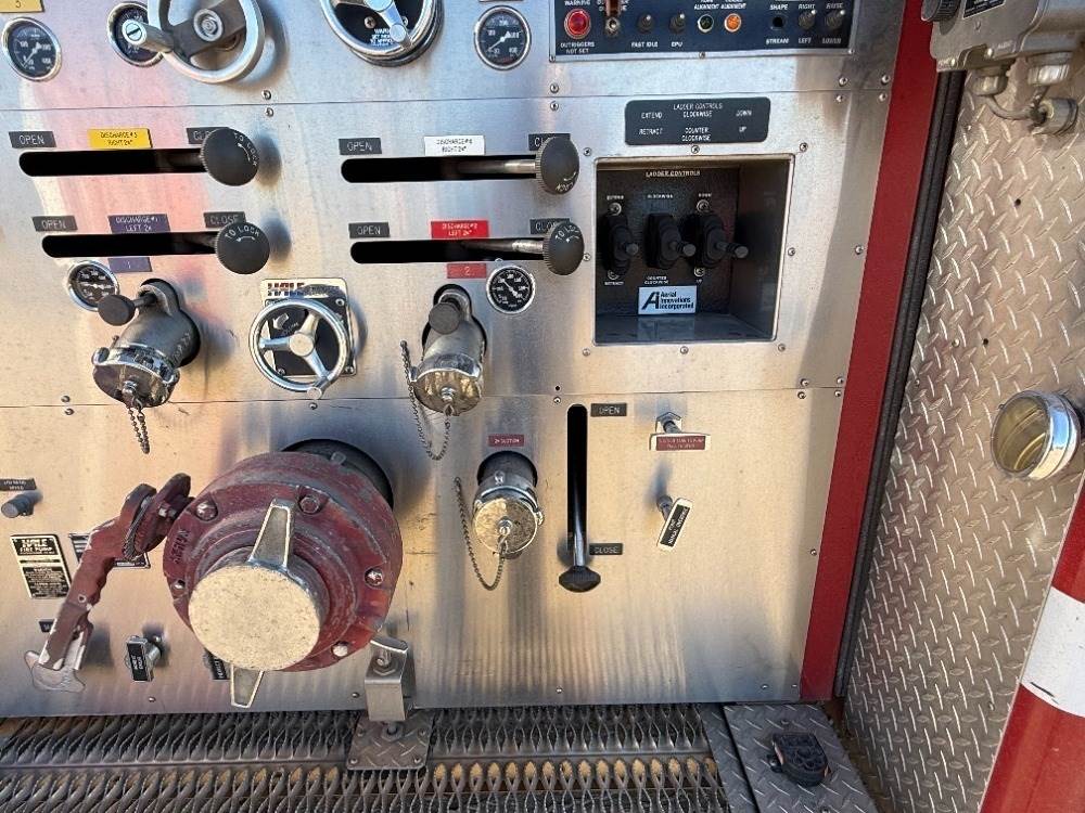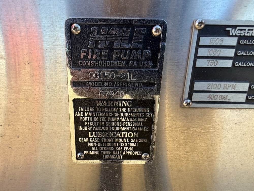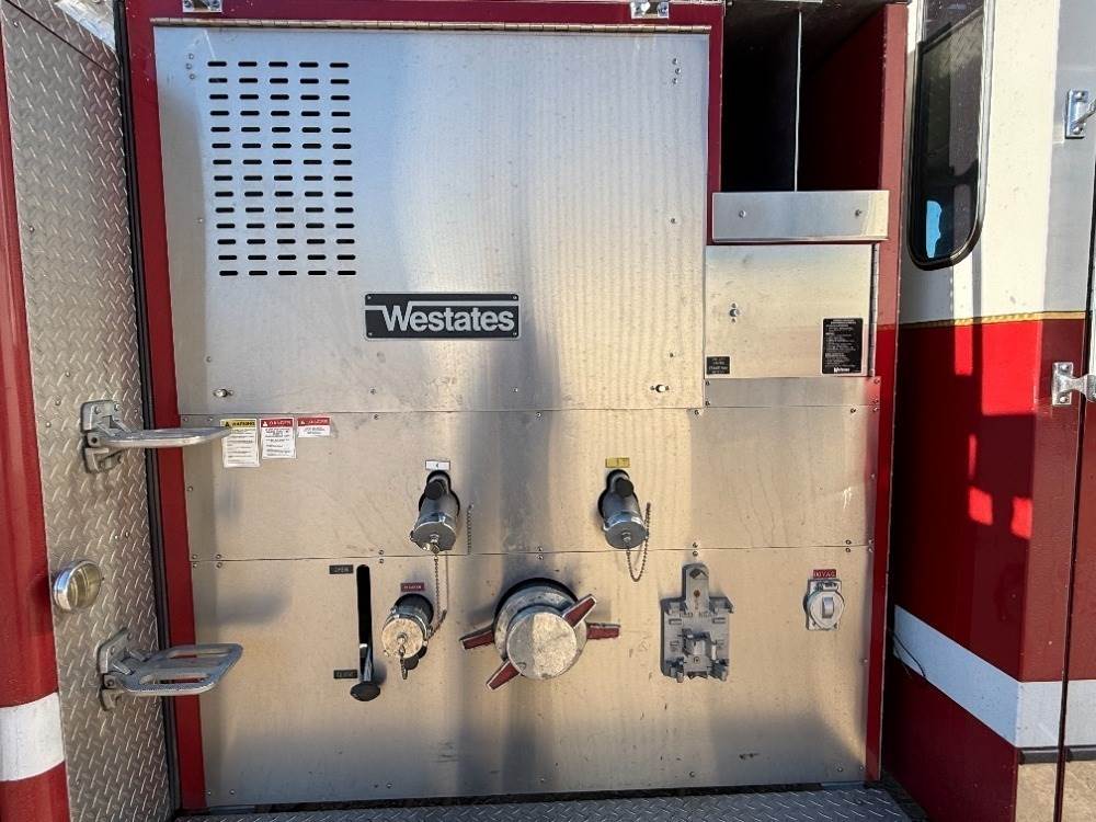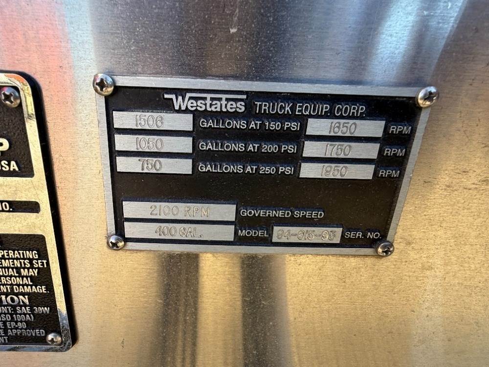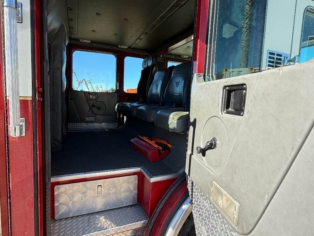 1994 SPARTAN WESTATES GLADIATOR CREW CAB FIRE TRUCK, Detroit 470hp diesel, Allison automatic, pto, Hale QG150-21L 1,500gpm centrifugal pump, 400 gallon water tank, multi-compartment utility body, automatic tire chains, Aerial Innovations 75' extension ladder, outriggers, 19,849 miles indicated. s/n:4S7AT9D00RC014761