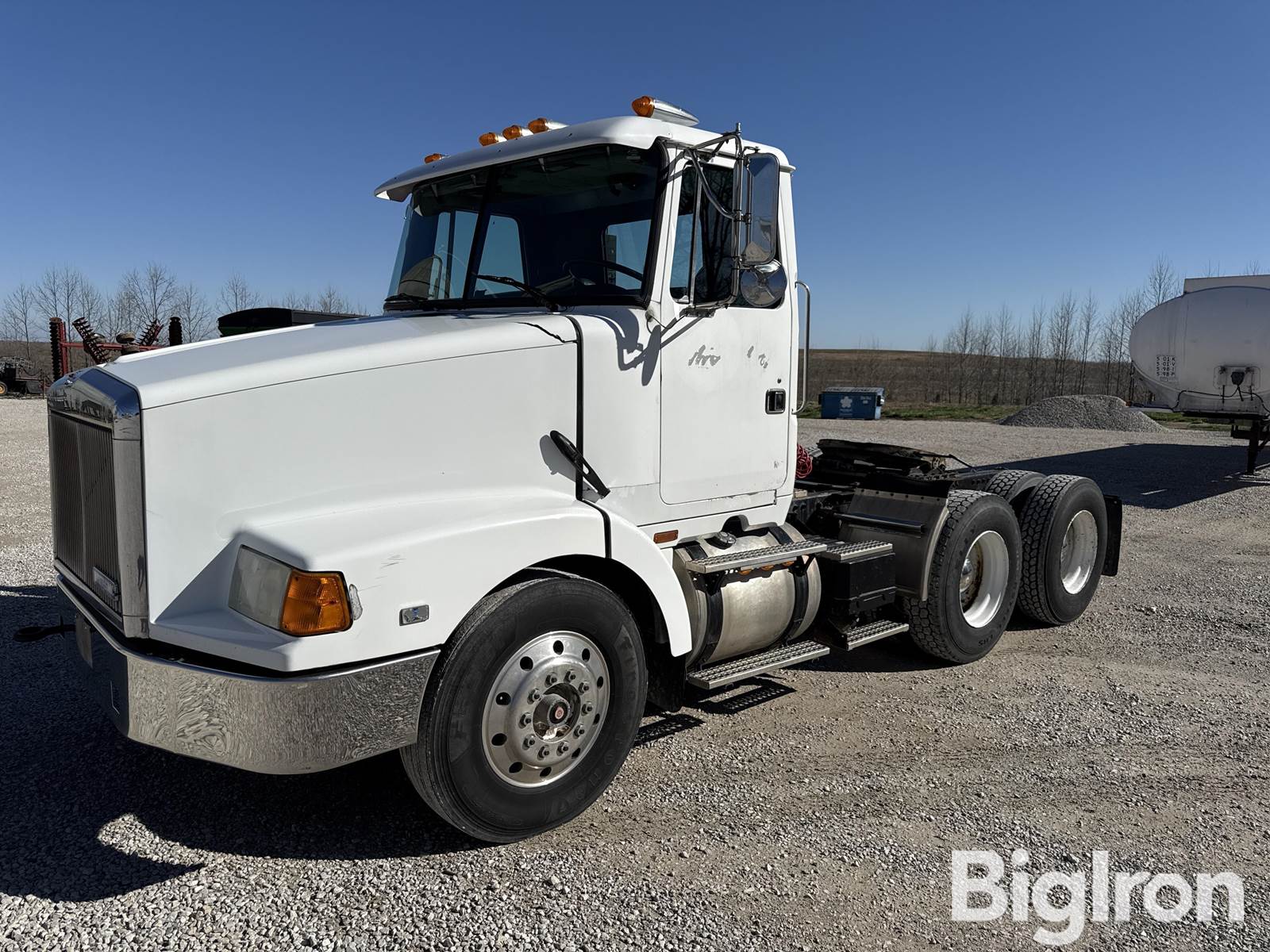 1994 Whitegmc WCA Day Cab Semi, 8117 Hrs Showing, 425 hp, 228765 miles Showing, Title Will Be Marked Miles Exempt, Detroit 12.7L 60 series, Block Heater, Eaton Fuller, 10 Forward Speeds, Dual Fuel Tanks, 150 gal Gal Fuel Capacity, Single Exhaust, 6x4 Drive, 152”" Wheel Base, 12000 lbs Front Axle Lbs., 38000lbs Rear Axle Lbs., 3.21 Rear Axle Ratio, Air Suspension, 4 Air Bag(s), 11R22.5 Front Tires, 11R22.5 Rear Tires, Differential Lock, Steel Rims, Single Line Wet Kit, 25 gal Gal Hydraulic Reservoir Capacity, Air Slide Fifth Wheel, Air Ride Cab, Heater, AC, Radio, Air Ride Driver Seat, ., VIN: 4V1VDBRHXRN677007