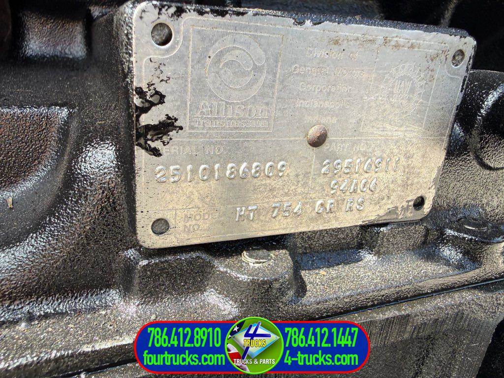USED 1.995 ALLISON HT754CR RS AUTOMATIC TRANSMISSION, 94A06, 29516911, TSN:2310186809, COMPLETE, OIL AND FILTERS INSPECTED IN GOOD CONDITION,ALSO OILPAN REMOVED AND CHECKED THE TRANSMISSION INSIDE, MANY ALLISON AUTOMATIC TRANSMISSIONS IN STOCK