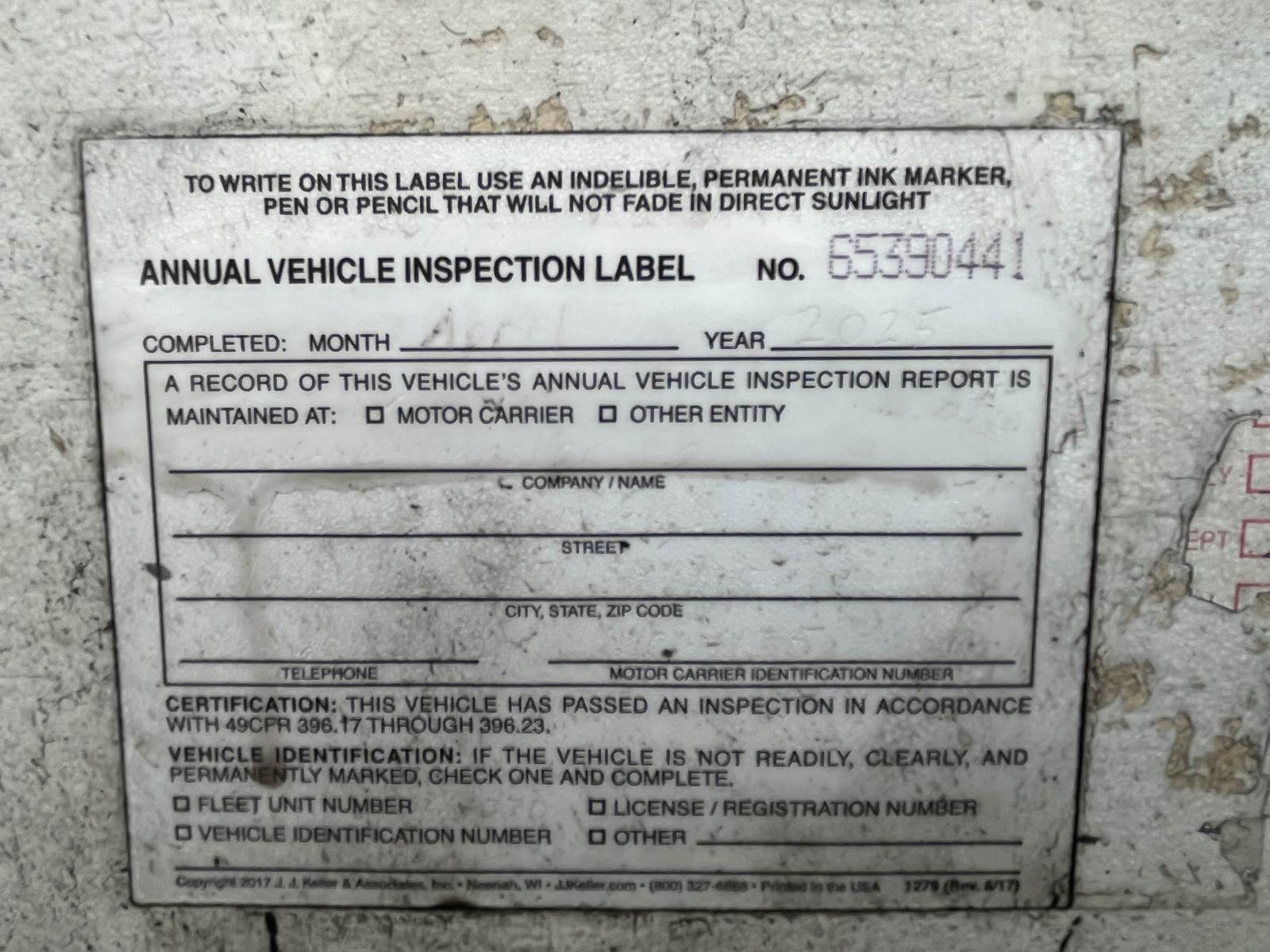 DOT Inspection Done April 2025