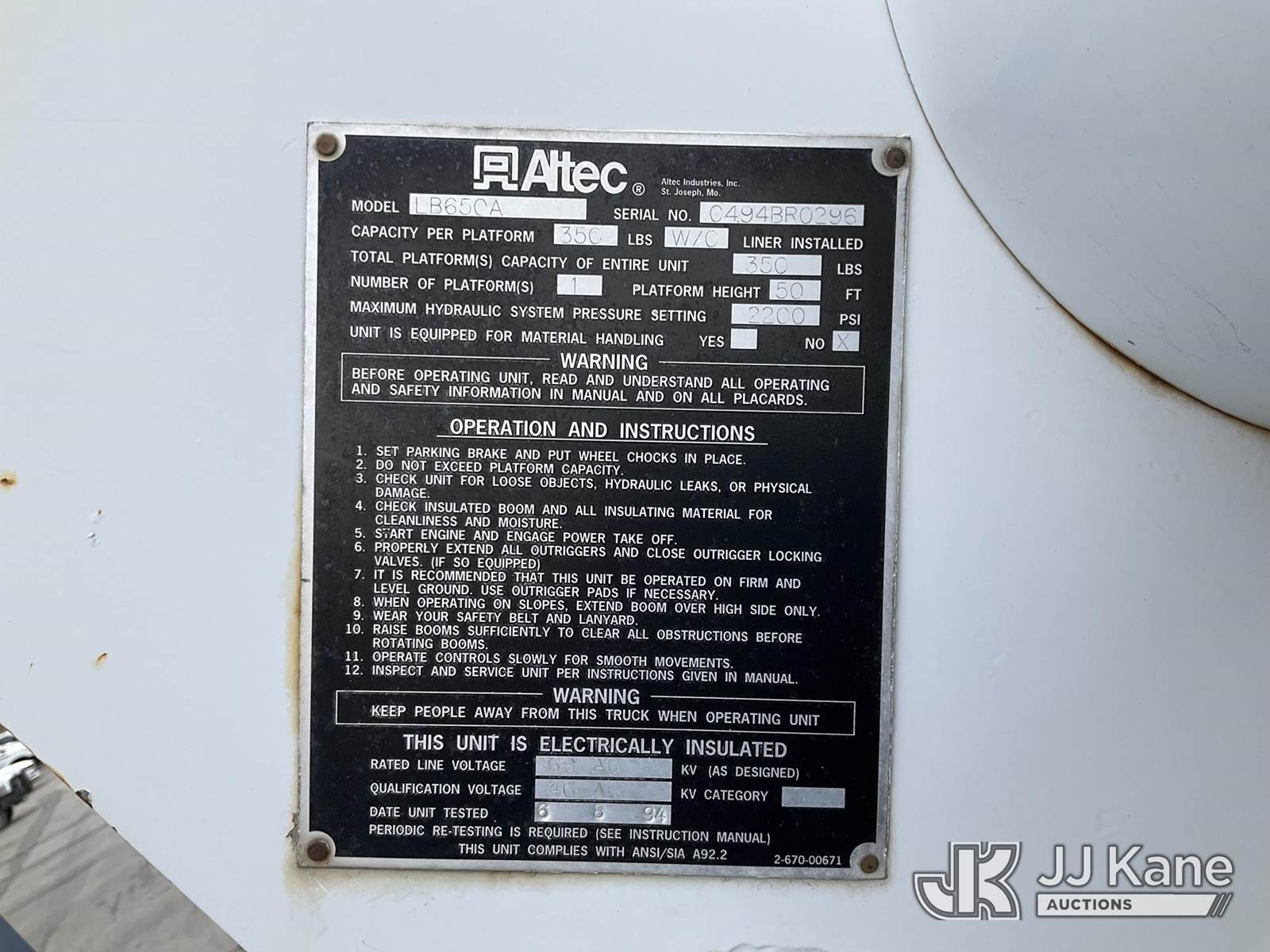 Altec LB650A, 55 ft, Articulating Non-Over Center Bucket Truck s/n C494BR029, corner mounted on 1995 Ford F800 Chipper Dump Truck, 5.9L diesel, Auto, (Exempt from Odometer Disclosure - Reads 40,207 miles) (Runs, Moves & Operates) (Out Riggers Do Not Work All the Time, Electrical Issues) This is a Titled Item NOTE: This unit is being sold AS IS/WHERE IS via Timed Auction and is located in Salt Lake City, UT. Inspection & preview days for this unit are the 2 business days prior to the first day of items closing for this auction, item is located at 2353 N Redwood Rd Salt Lake City, UT 84116 and hours of operations are 8a-4p. Titles executed exactly as bidder registered. Ensure your name and/or business name and address in JJ Kane and/or ProxiBid is correct before bidding. For pre-sale questions, please contact Office Staff @ (801) 519-0123. (Manuals provided in cab) (Buyer is responsible for removal. Assistance by consignor or JJ Kane Auctions is not assured.)