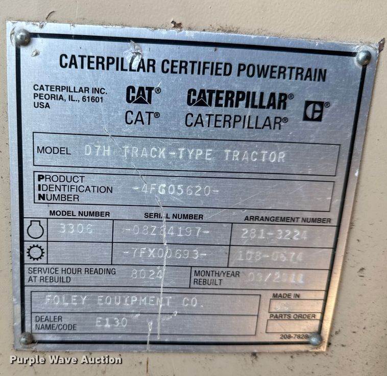 Caterpillar Certified Power Train (CPT) rebuild August 2011 at 8,024 hours