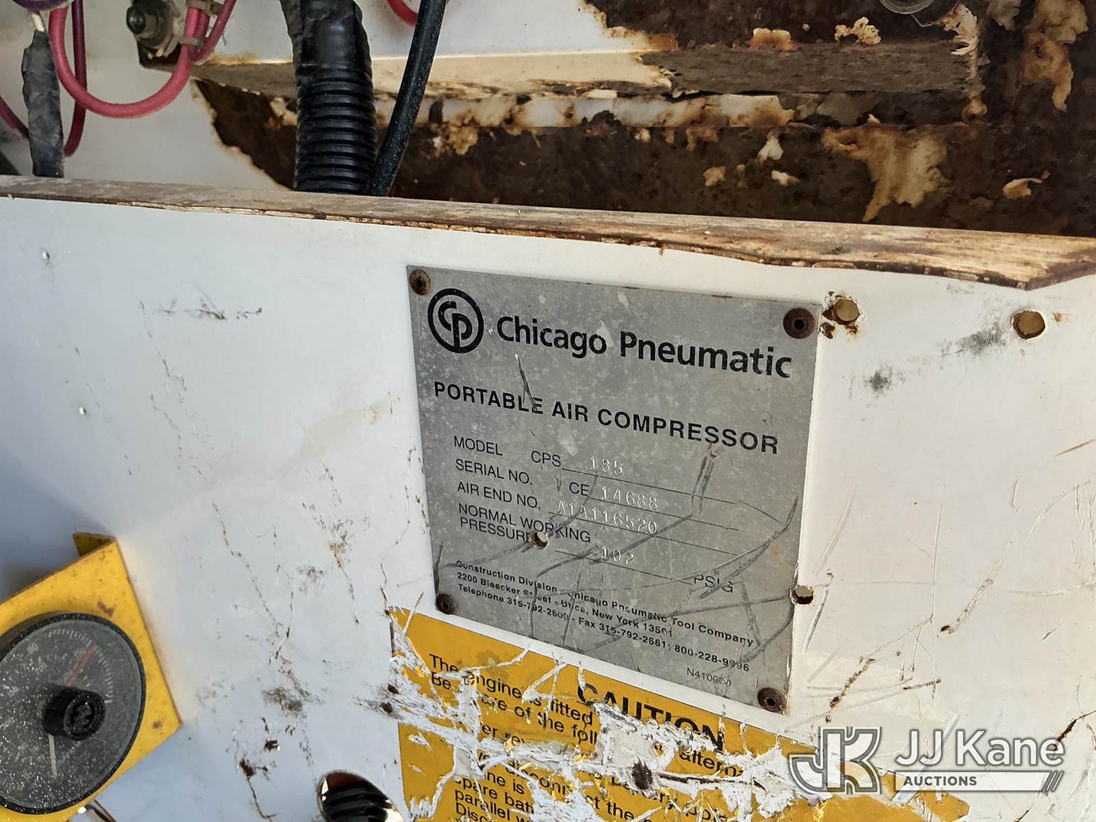1995 Chicago Pneumatic CPS185 Air Compressor, s/n CE14688, John Deere diesel, Trailer Mounted (No Title) NOTE: This unit is being sold AS IS/WHERE IS via Timed Auction and is located in Florence, SC. Inspection & preview days for this unit are by appointment only; please contact us at contact@jjkane.com or 84-Go-JJKane for more details. (Buyer is responsible for removal. Assistance by consignor or JJ Kane Auctions is not assured.)