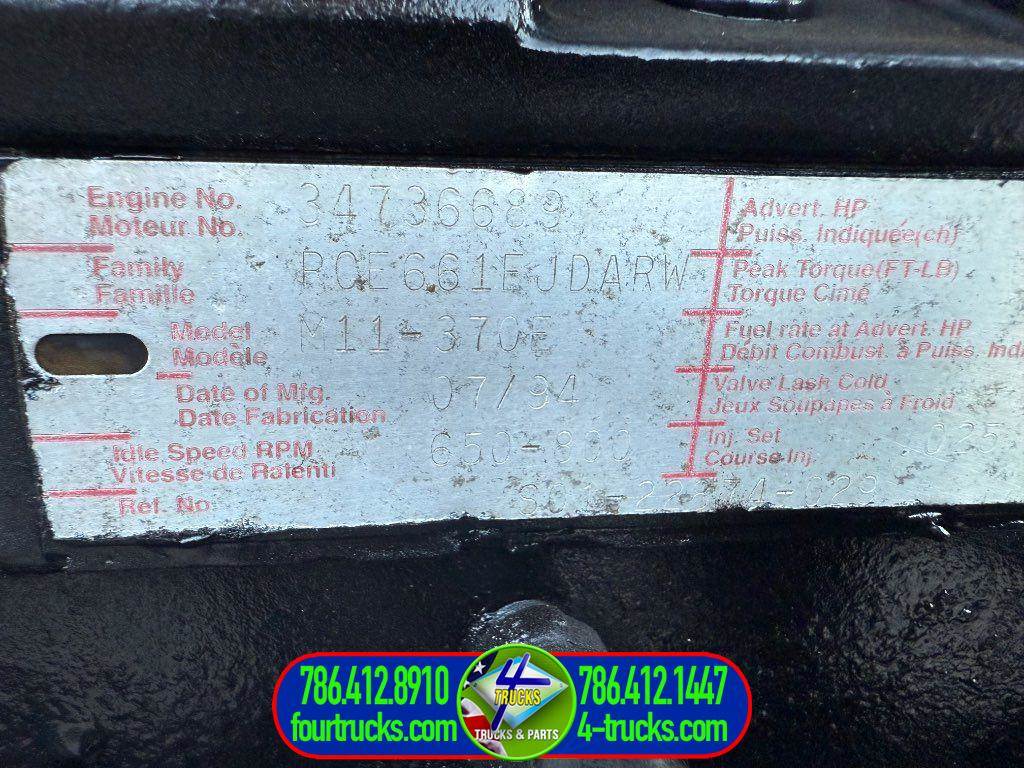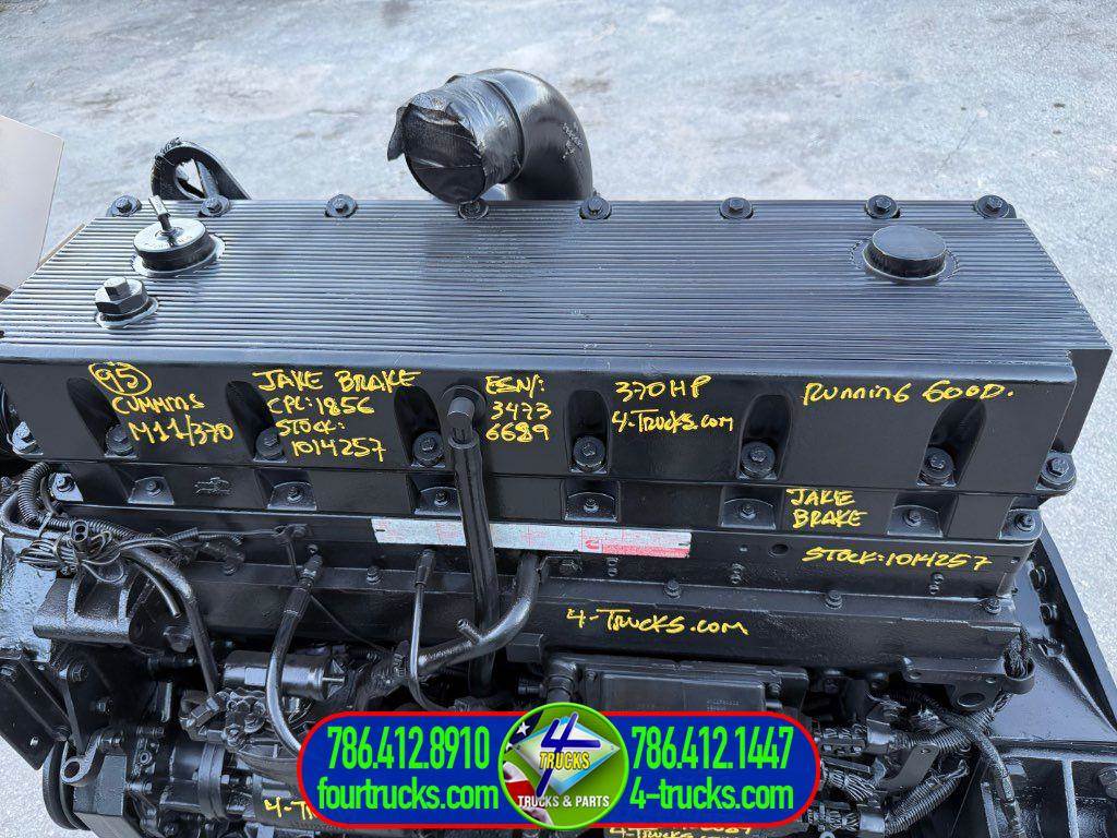USED 1995 CUMMINS M11 CELECT ENGINE, 370HP, JAKE BRAKE, CPL:1856; STOCK:1014257; ESN:34736689; COMPLETE, INSPECTED AND TESTED RUNNING GOOD ENGINE, ALSO MANY ENGINES IN STOCK
