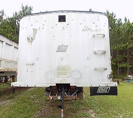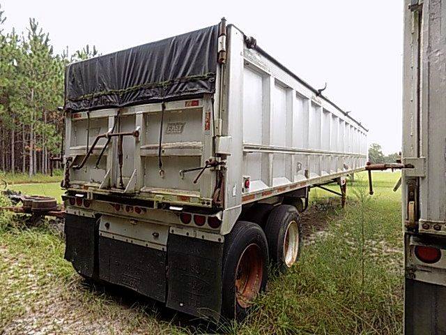 1995 EAST MANUFACTURING CORP. FRAMELESS DUMP TRAILER, 38 ft, tandem axle, aluminum tub, 60" high and 96" wide, good tires, roll over tarp, needs new ratchets for straps,