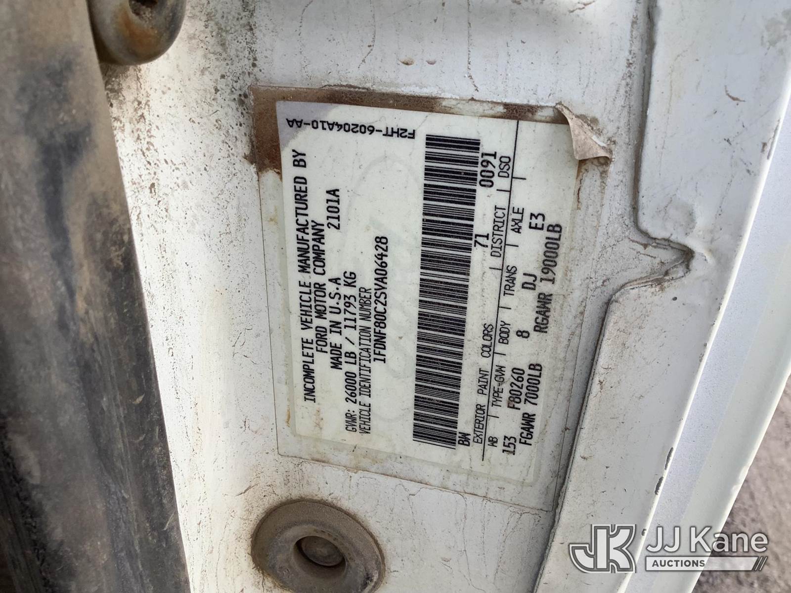 1995 Ford F800 Tank Truck, 5.9L Diesel, Manual, (Exempt from Odometer Disclosure - Reads 30,351 miles) (Not Running, Condition Unknown, Cranks) This is a Titled Item NOTE: This unit is being sold AS IS/WHERE IS via Timed Auction and is located in Phoenix, AZ. Inspection & preview days for this unit are the 2 business days prior to the first day of items closing for this auction, item is located at 2505 W Durango St Phoenix, AZ 85009 and hours of operations are 8a-4p. For pre-sale questions, please contact Andrew Espinoza @ (602) 393-8107. (Buyer is responsible for removal. Assistance by consignor or JJ Kane Auctions is not assured.)