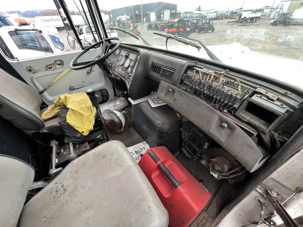 Location: Washougal WA ***End-User Consignment*** VIN: 1FDZY90T6SVA61434 Engine: Caterpillar 3306 10.5L 6cyl Diesel Transmission: Manual *Cannot verify operational status - no key, driveline disconnected. Per seller - runs/works but needs fuel tank.", Guzzler vacuum body mounted on Ford L9000 cab & chassis, 3,076 vacuum hours indicated, air brakes, diff lock, A/C, spring suspension, 425/65R22.5 front tires, 11R22.5 rear tires. Miles: 108,487 indicated