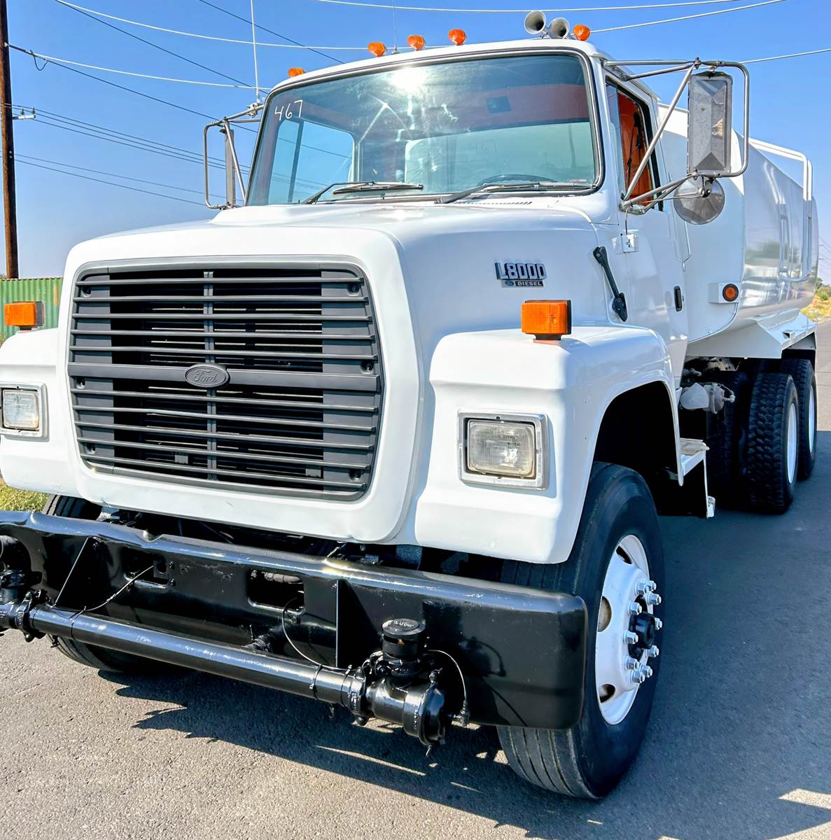 95 Ford L-8000, Cummins 8.3, Manual Trans, Hendrickson Rear spring over walking beam suspension, Solid 4000 Gallon tank with 2 fronts, 2 rear, 1 side spray, New pump, no leaks in cab air controls, new paint , ready to work