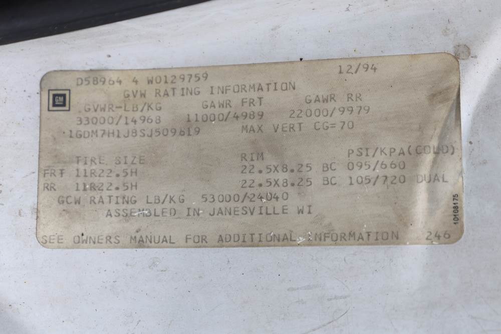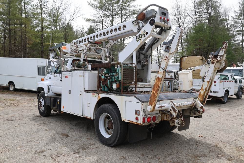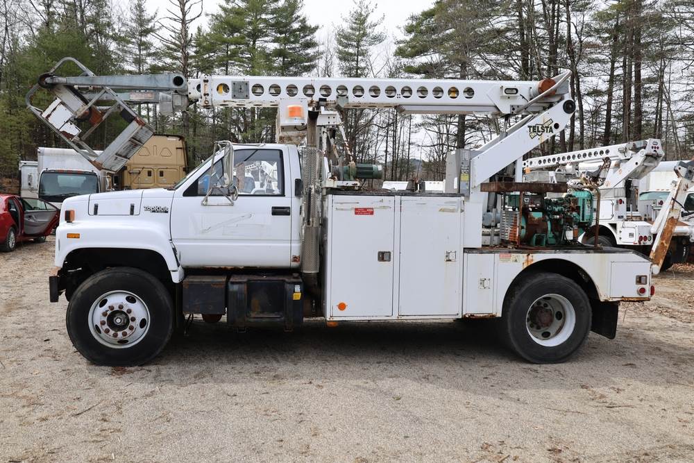 1995 GMC C7H042 with a 6.6L L6 DIESEL engine. VIN: 1GDM7H1J8SJ509619. Odometer reading: 124007. Body: conventional cab. Telsta boom lift, utility body, PTO, Onan generator, hydraulic outriggers, work platform. Boom does not work. Runs and drives. Transfer will be done through NJ dealership paperwork. May not pass NYS Inspection.