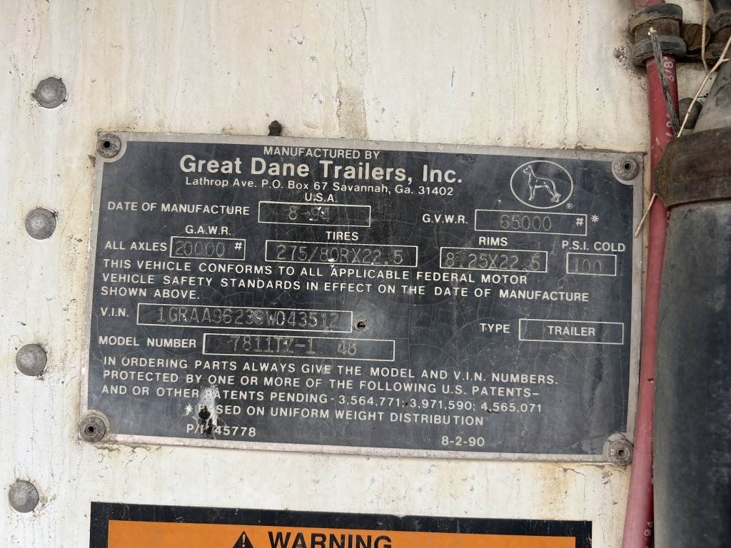 Location Standfield OR VIN: 1GRAA9623SW043512 Carrier reefer unit, king pin, air brakes, 65,000lb GVWR, 295/75R22.5 tires. *This item is located in Stanfield, Oregon and can be viewed by appointment only. To schedule a preview or to ask questions about this item call 888-230-8840*