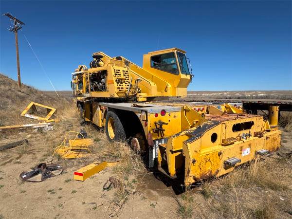 Showing: 38,496 Miles; 462 Hours. NON-RUNNER, FULL OPERATIONS NOT TESTED. Parts Removed: Batteries, Multiple Parts From Crane System/Many Parts Not W/Unit, Left/Rear Outrigger Stands Removed/Parts W/Unit, Front Outrigger Stands/Parts W/Unit; Left/Rear Tire Singled Out; Worn Tires; Surface Rust Throughout. Location: Evansville, WY Serial: 476TM9120SS081960 - For More Information contact: Nick Greiner at 515-720-0809
