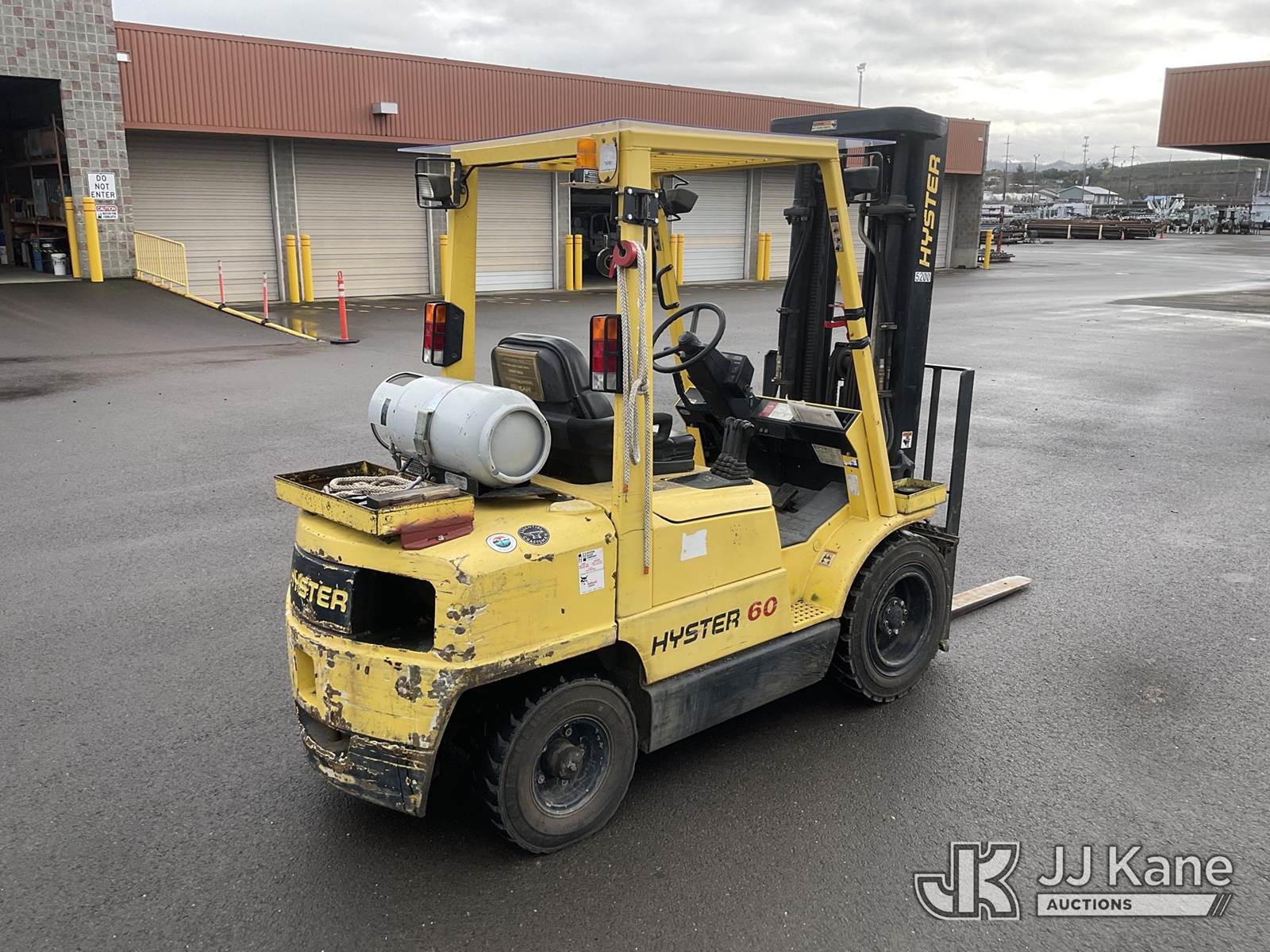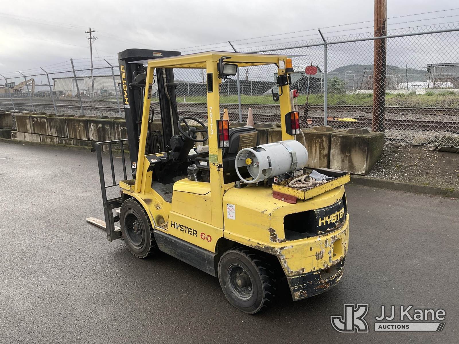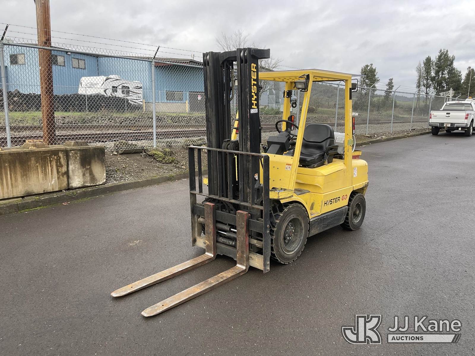 1995 Hyster H60XM Pneumatic Tired Forklift, s/n D177B24462S, 4-cyl, Shuttle, LPG, with 5300lbs lift capacity, 193in fork height, tilt, side shift, fork spreader, (Runs, Moves & Operates) (Reads 7,674 hours) NOTE: This unit is being sold AS IS/WHERE IS via Timed Auction and is located in Roseburg, OR. For more information & removal arrangements please contact Joseph Hull @ (801) 386-2131. (Buyer is responsible for removal. Assistance by consignor or JJ Kane Auctions is not assured.)