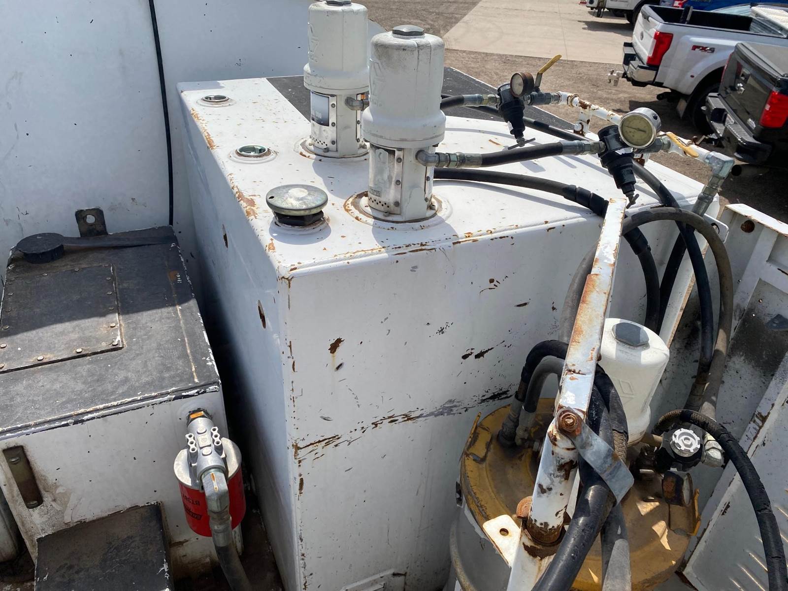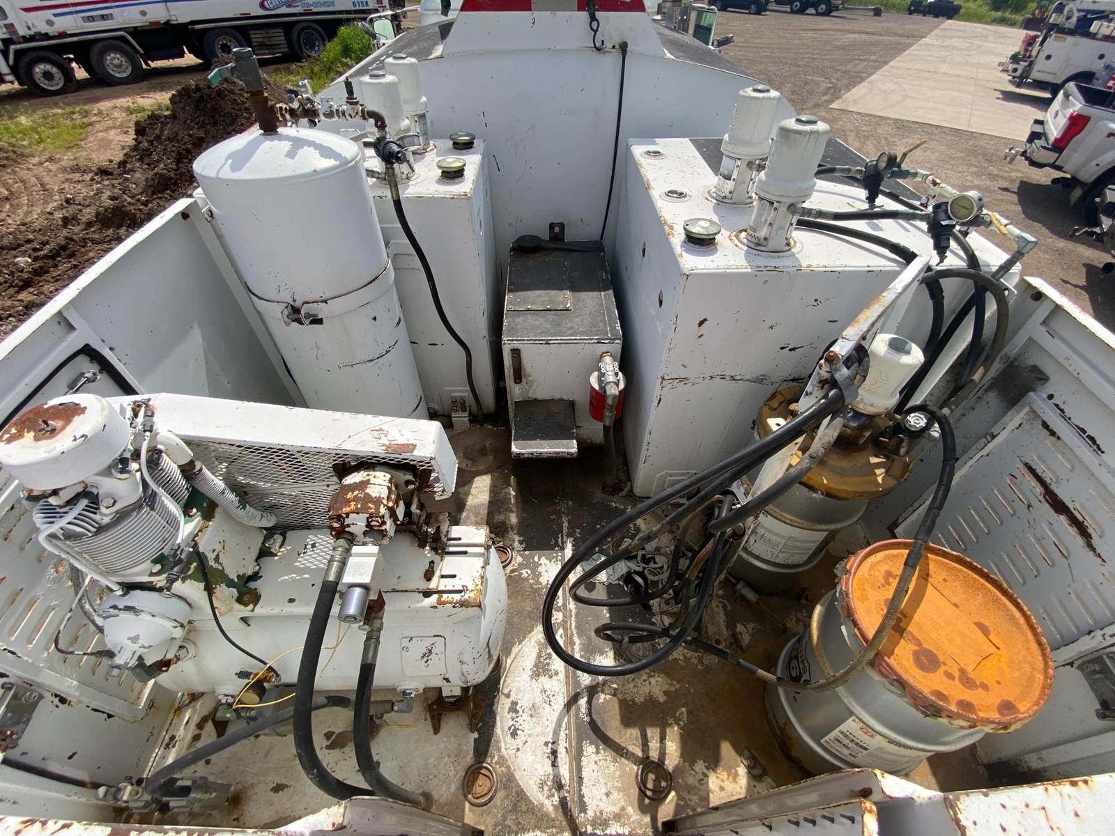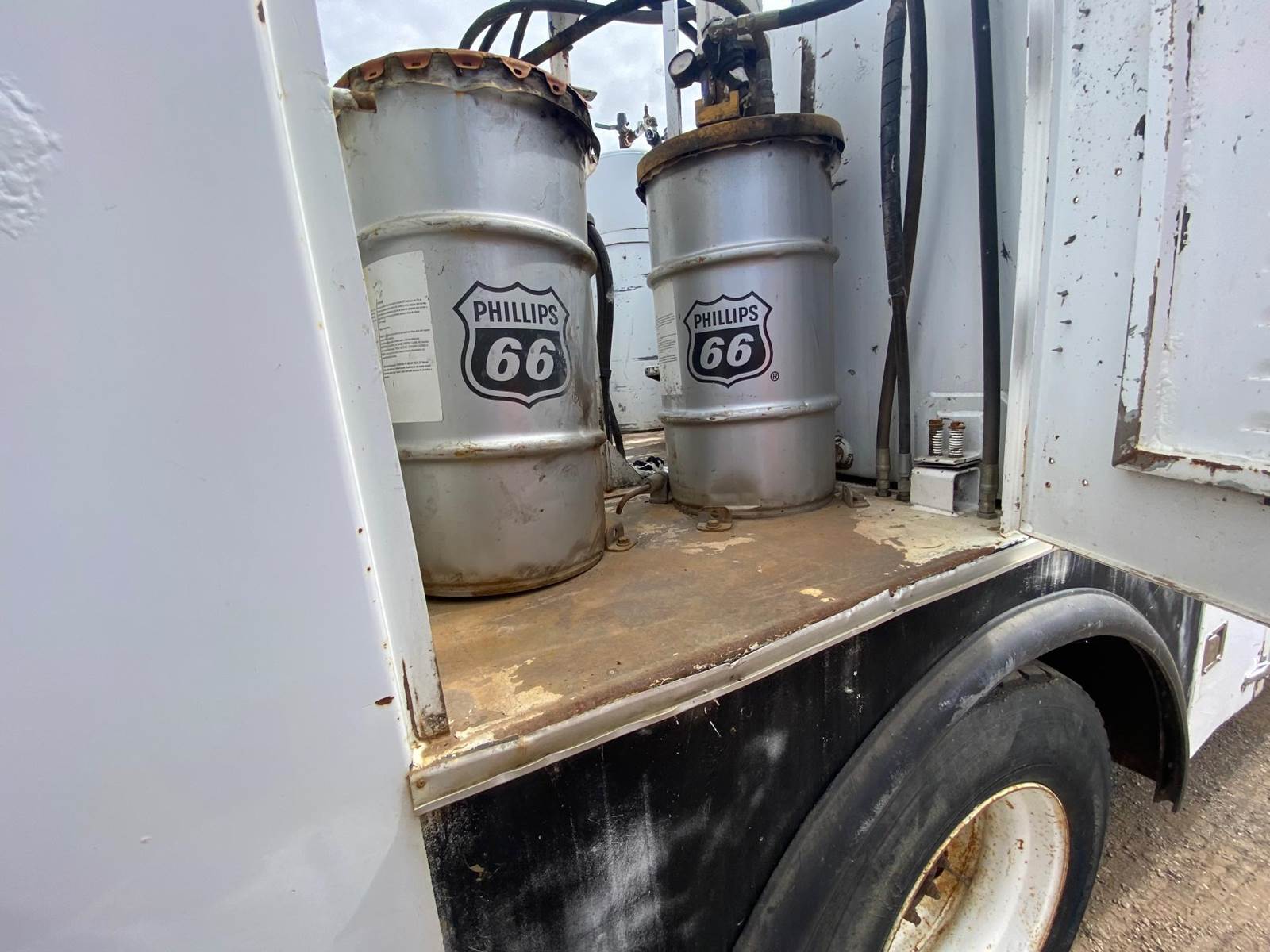 1995 International 8100 Service Truck, GVWR 32,000, 950 gal fuel, 250 gal oil, Evacuation pump & tank, Grease, Air compressor, everything works. Diesel engine has been replaced, runs great, no paperwork.