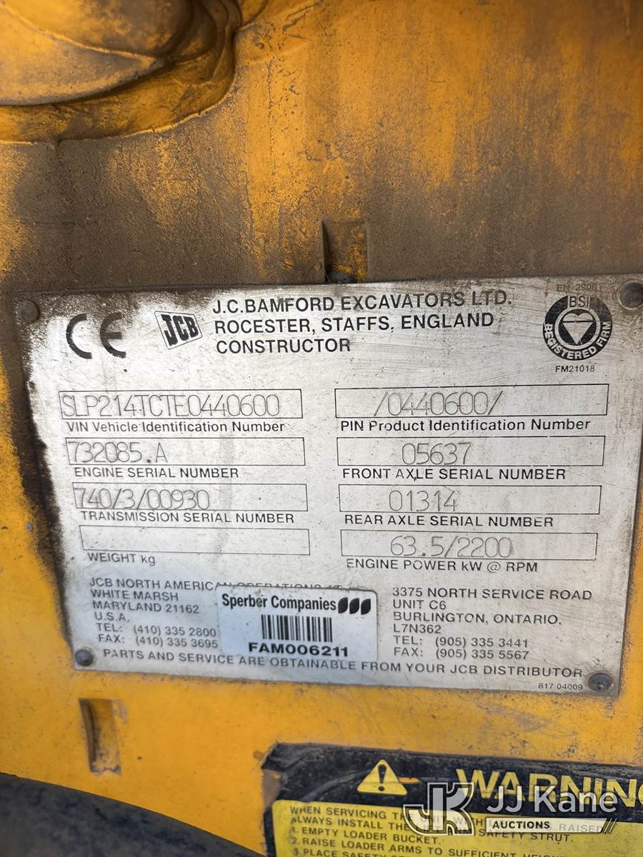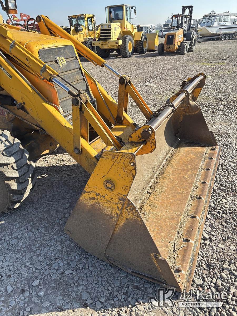 1995 JCB 214 Tractor Loader Backhoe, s/n SLP214TCTE0440600, 4-cyl, Diesel Shuttle, 4wd, with 4-1 GP bucket, 12" digging bucket & EROPS, (Runs, Moves & Operates) (Reads 9,766 hours) NOTE: This unit is being sold AS IS/WHERE IS via Timed Auction and is located in Dixon, CA. Inspection & preview days for this unit are the 2 business days prior to the first day of items closing for this auction, item is located at 8668 Sparling Ln Dixon, CA 95620 and hours of operations are 8a-4p. For pre-sale questions, please contact JJ Kane Staff at (707) 678-8060 (dixon@jjkane.com). Dealer License Number 45696. (Buyer is responsible for removal. Assistance by consignor or JJ Kane Auctions is not assured.)